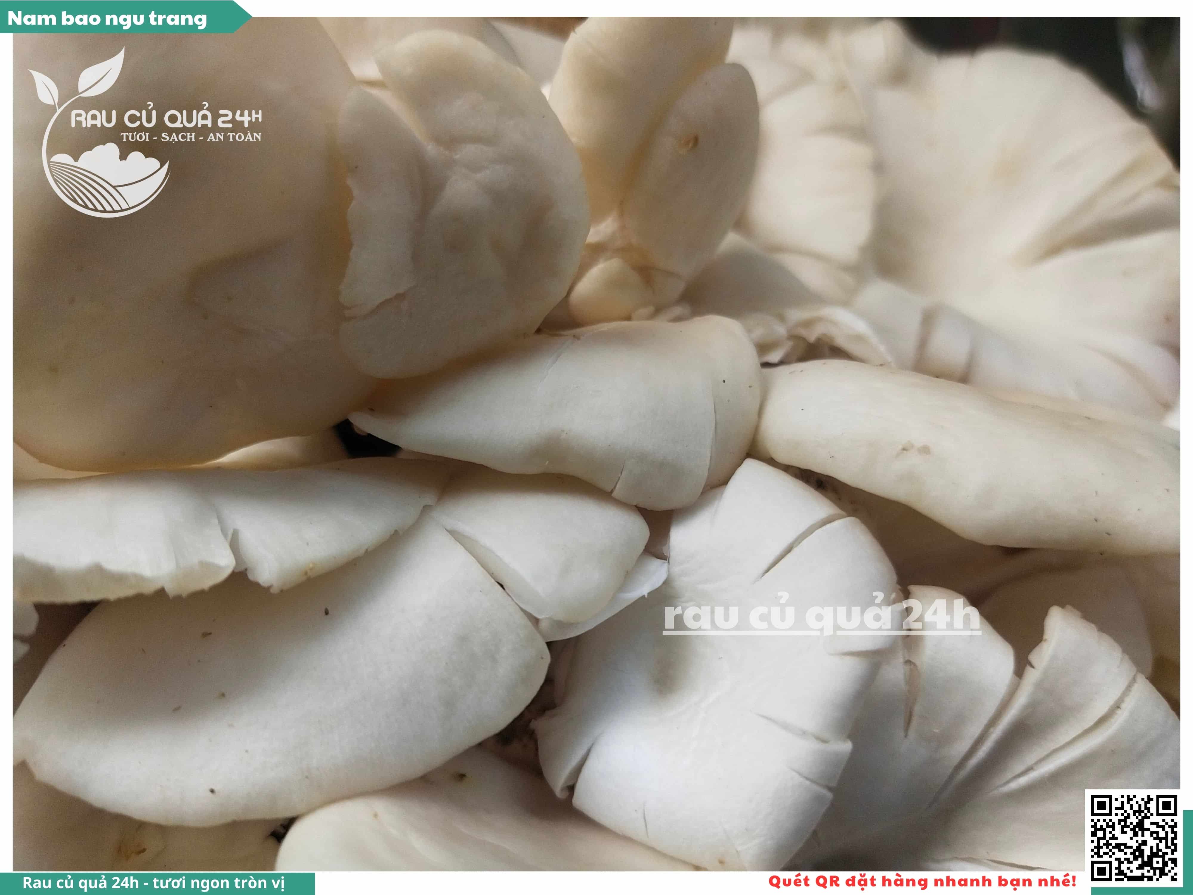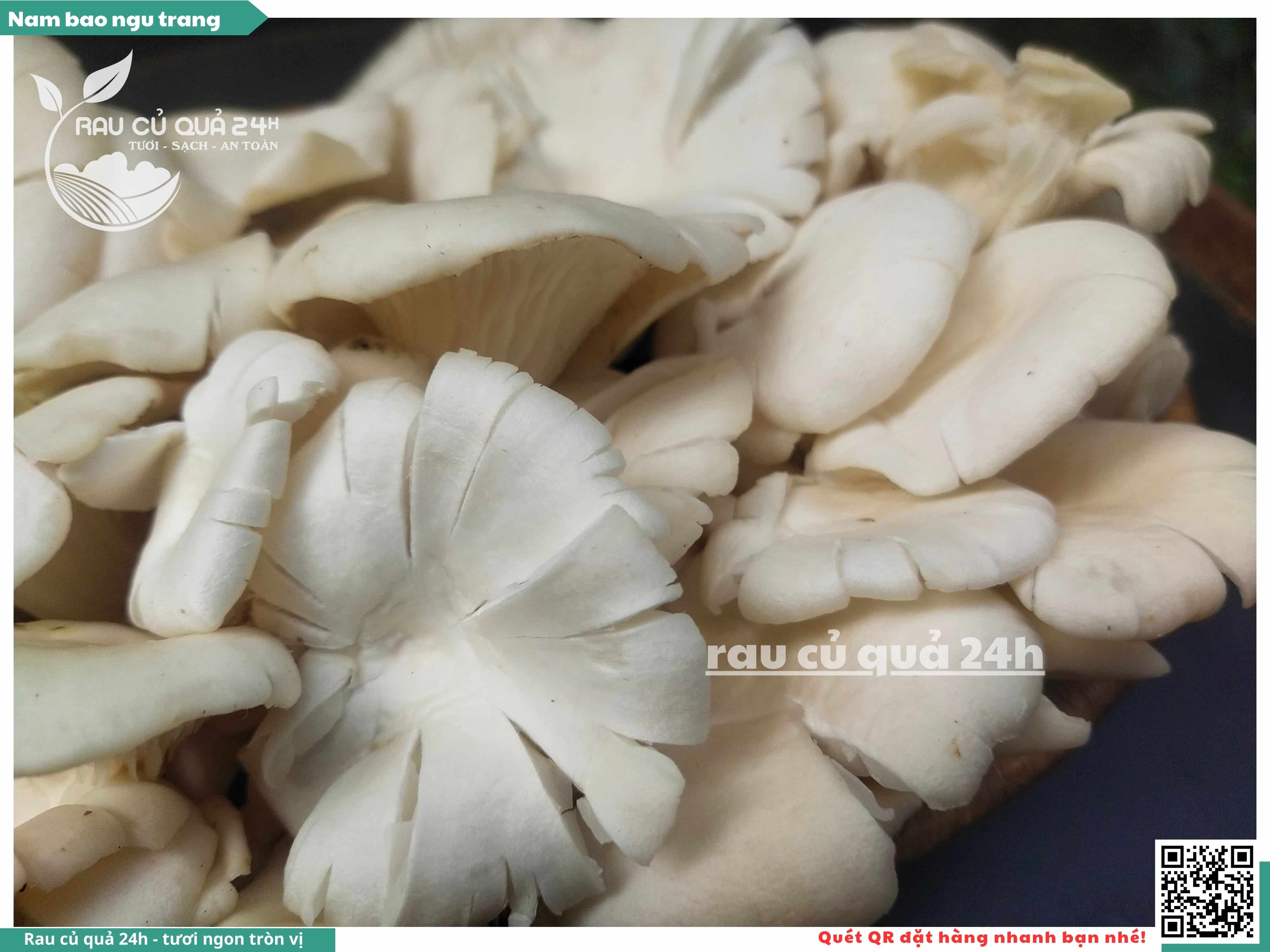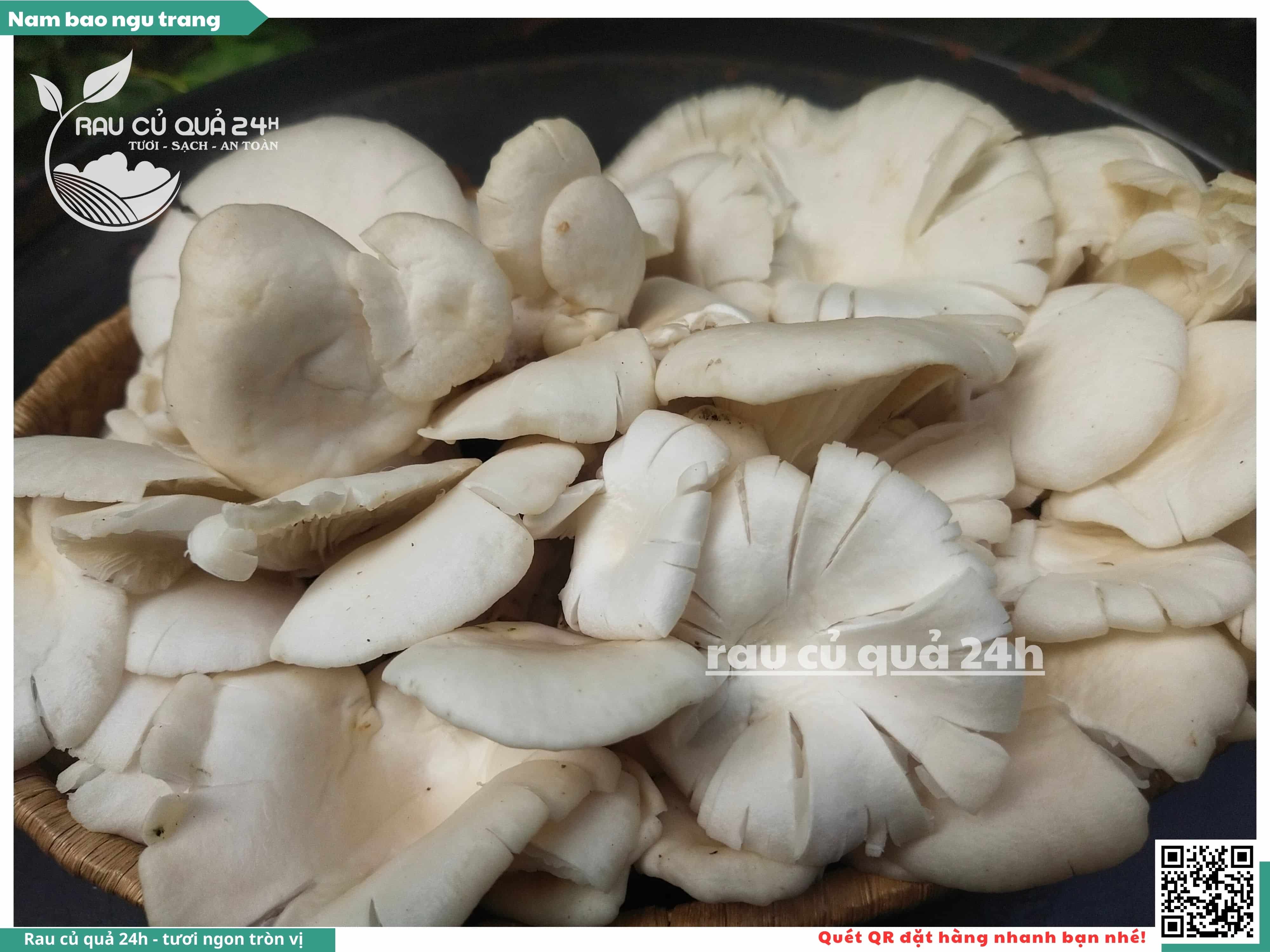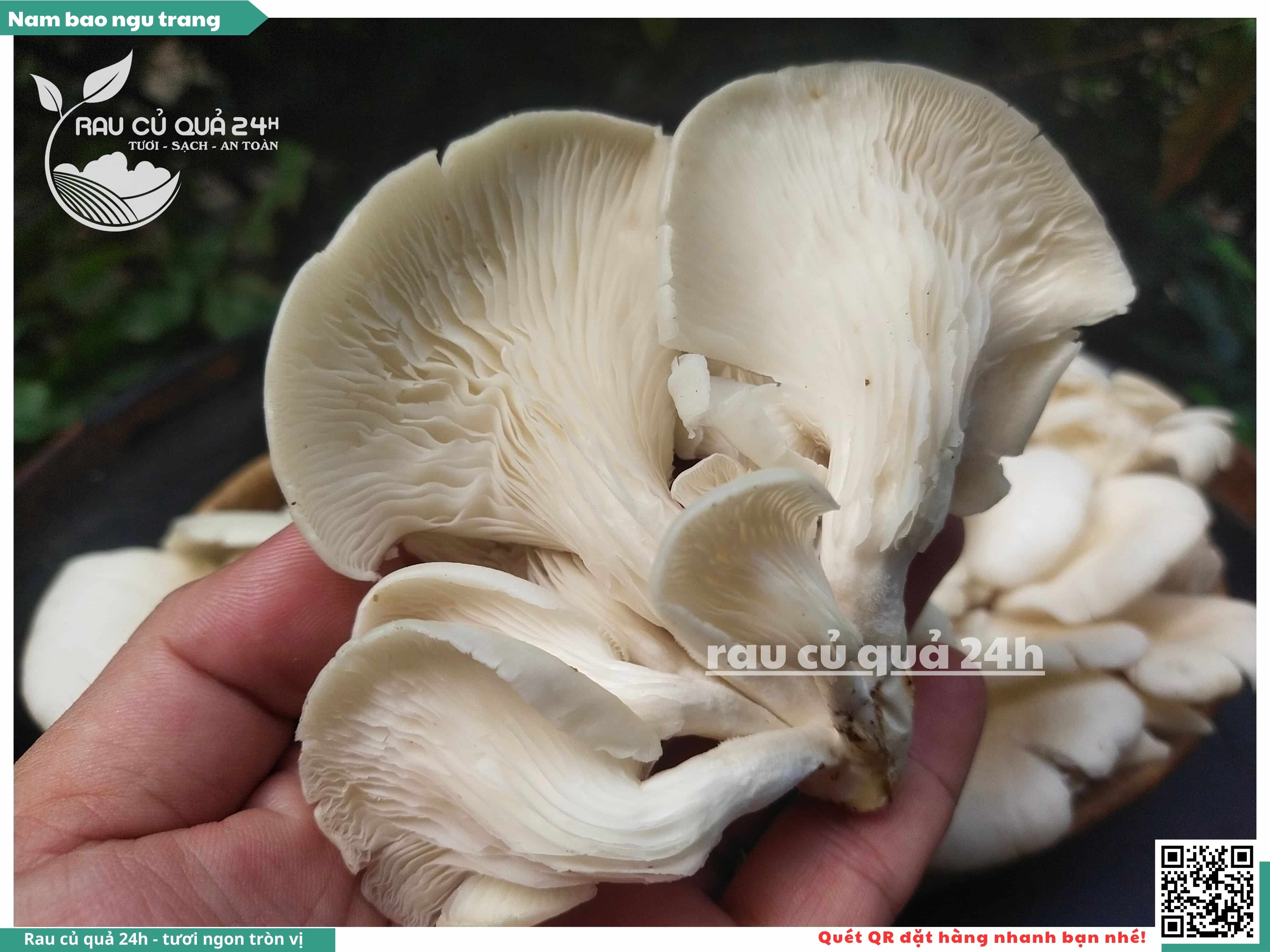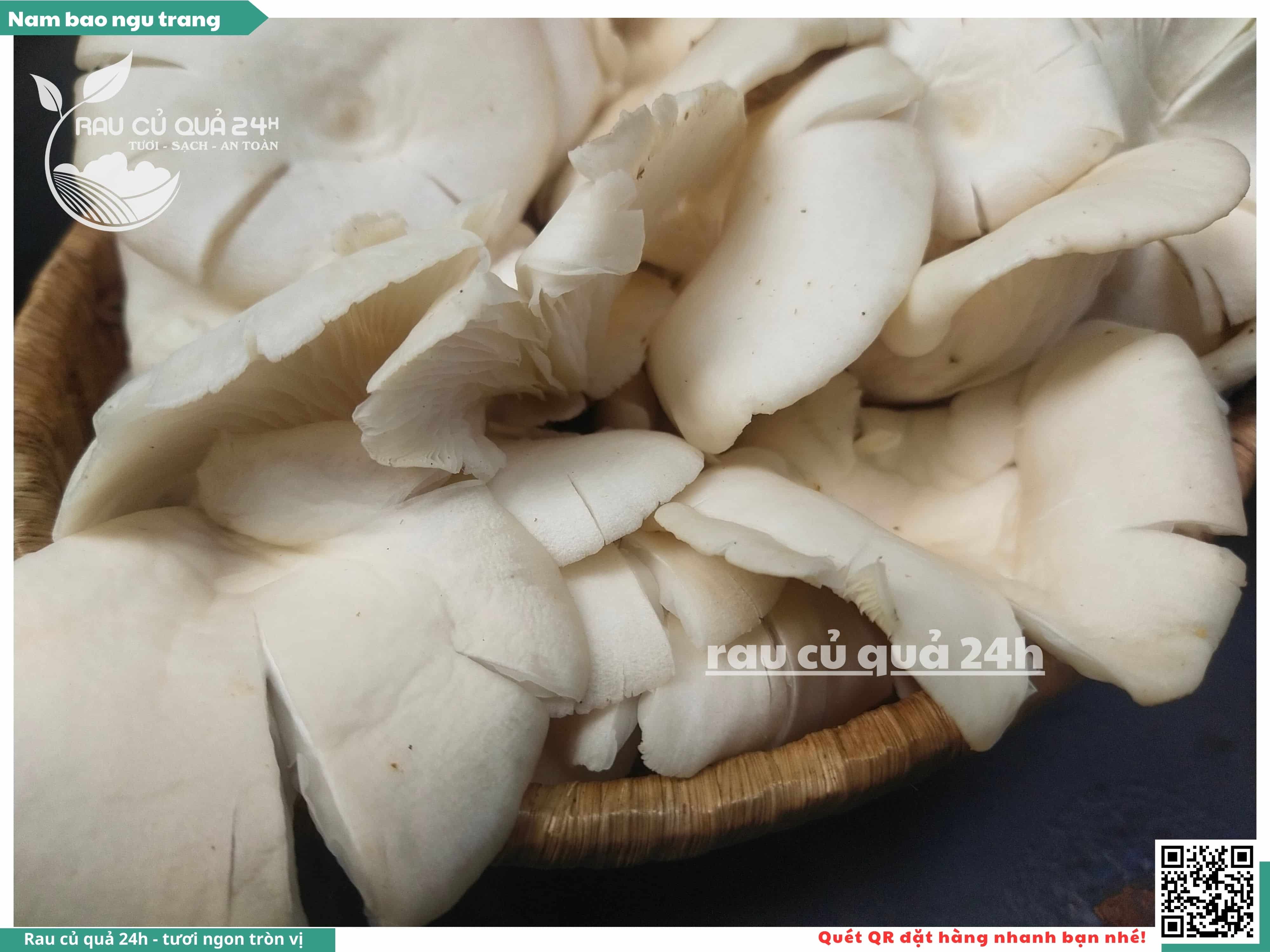 Nấm bào ngư có màu trắng hoặc xám, có hình phễu, có vị ngọt và giòn. Nấm bào ngư có thể được chế biến thành nhiều món ăn ngon và bổ dưỡng, chẳng hạn như canh nấm bào ngư, nấm bào ngư xào thịt, nấm bào ngư xào rau củ,...