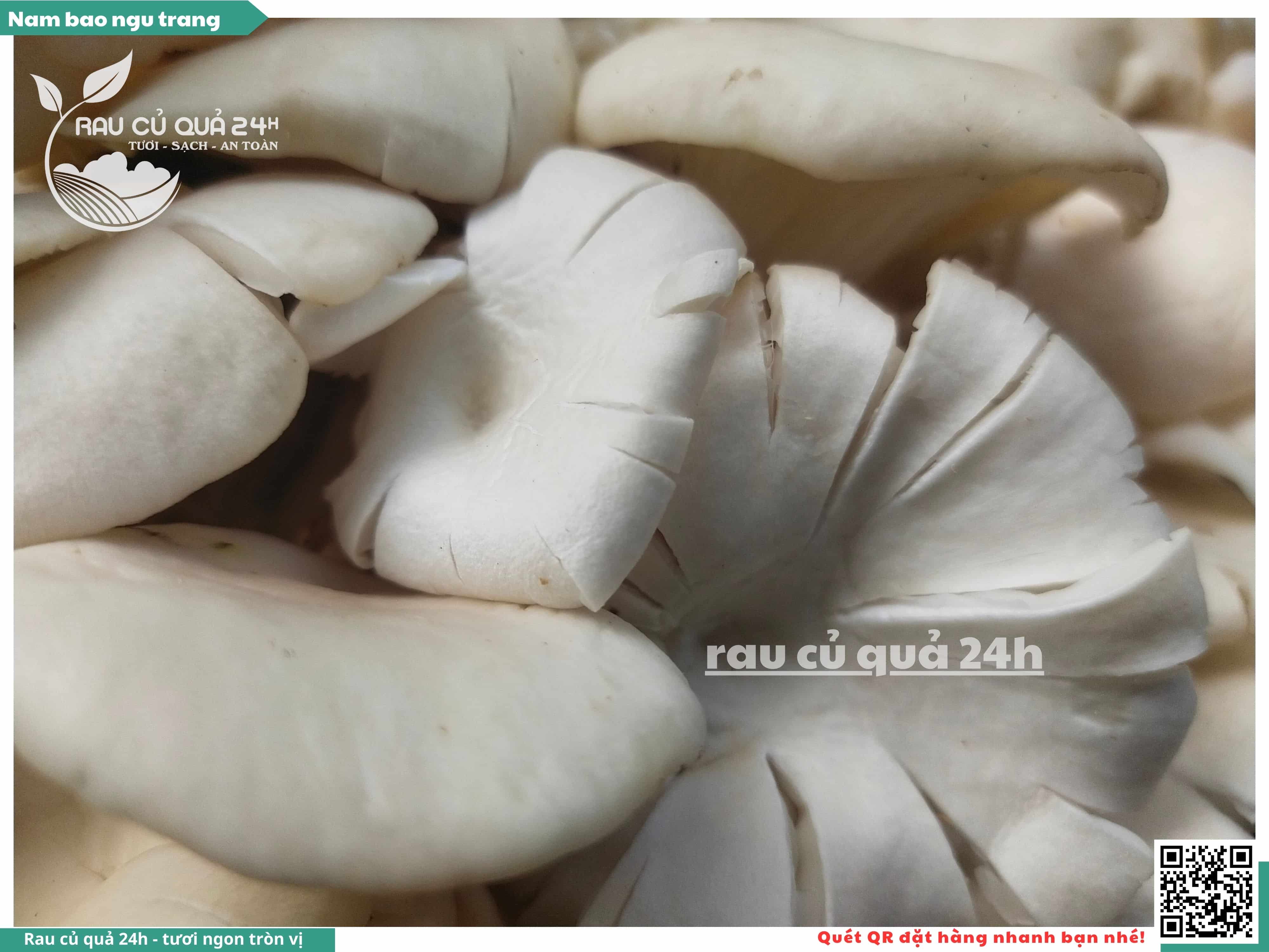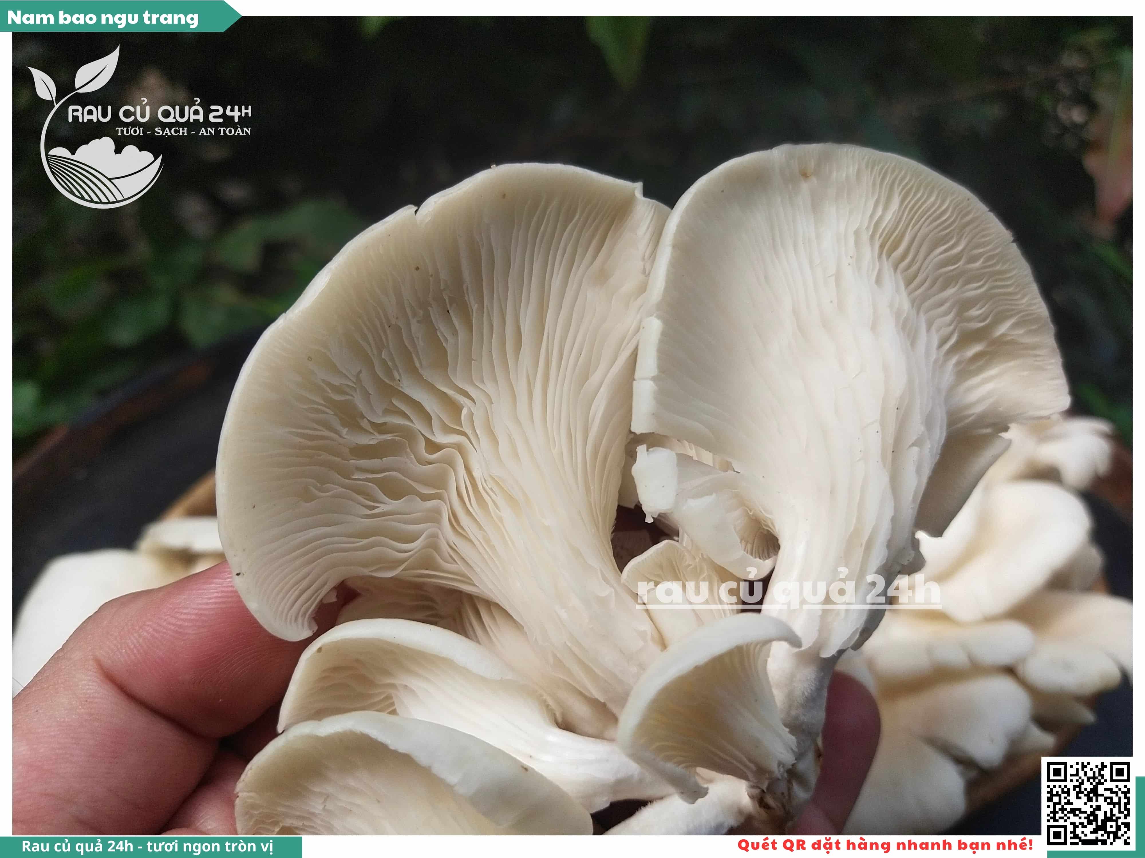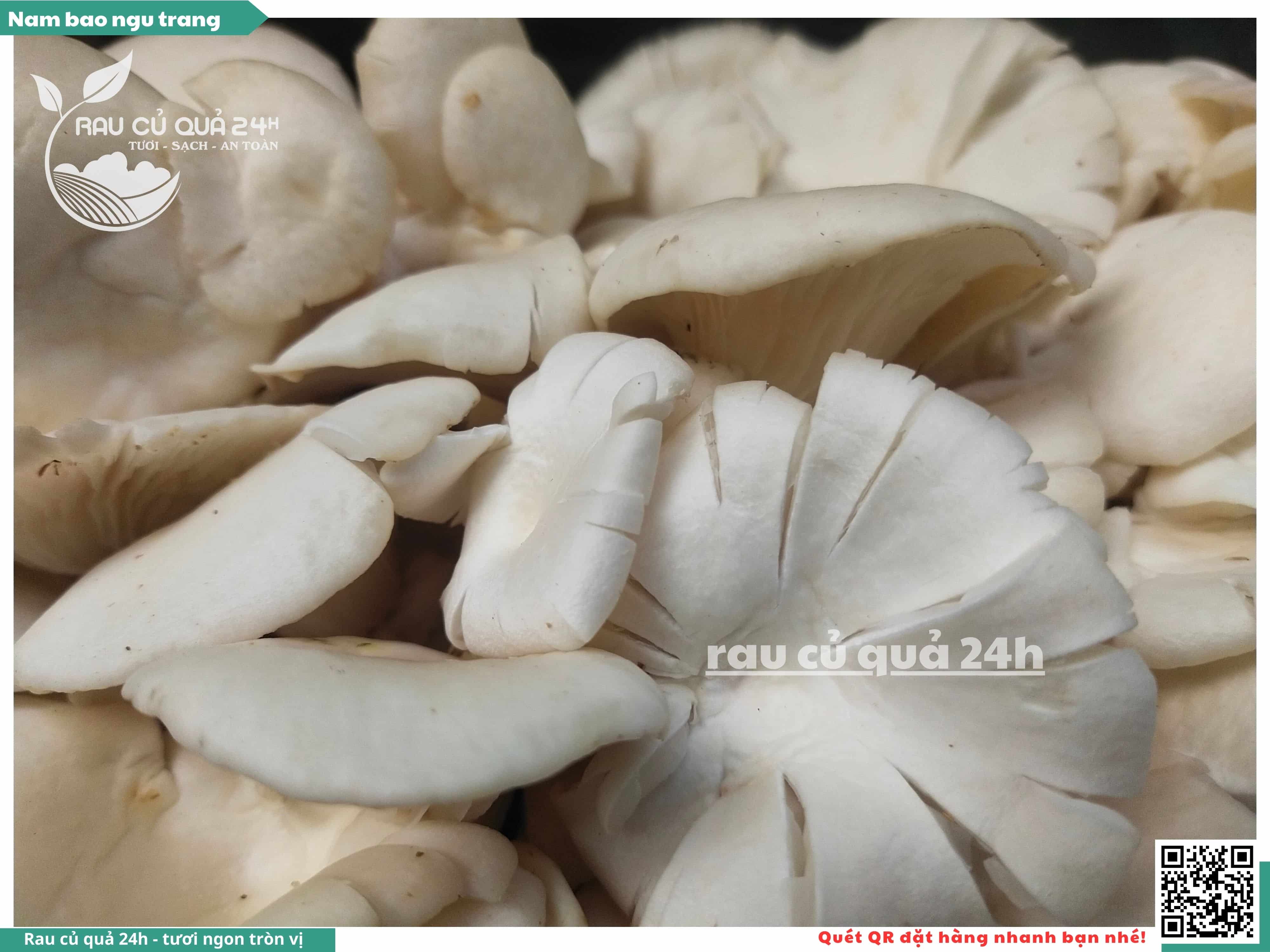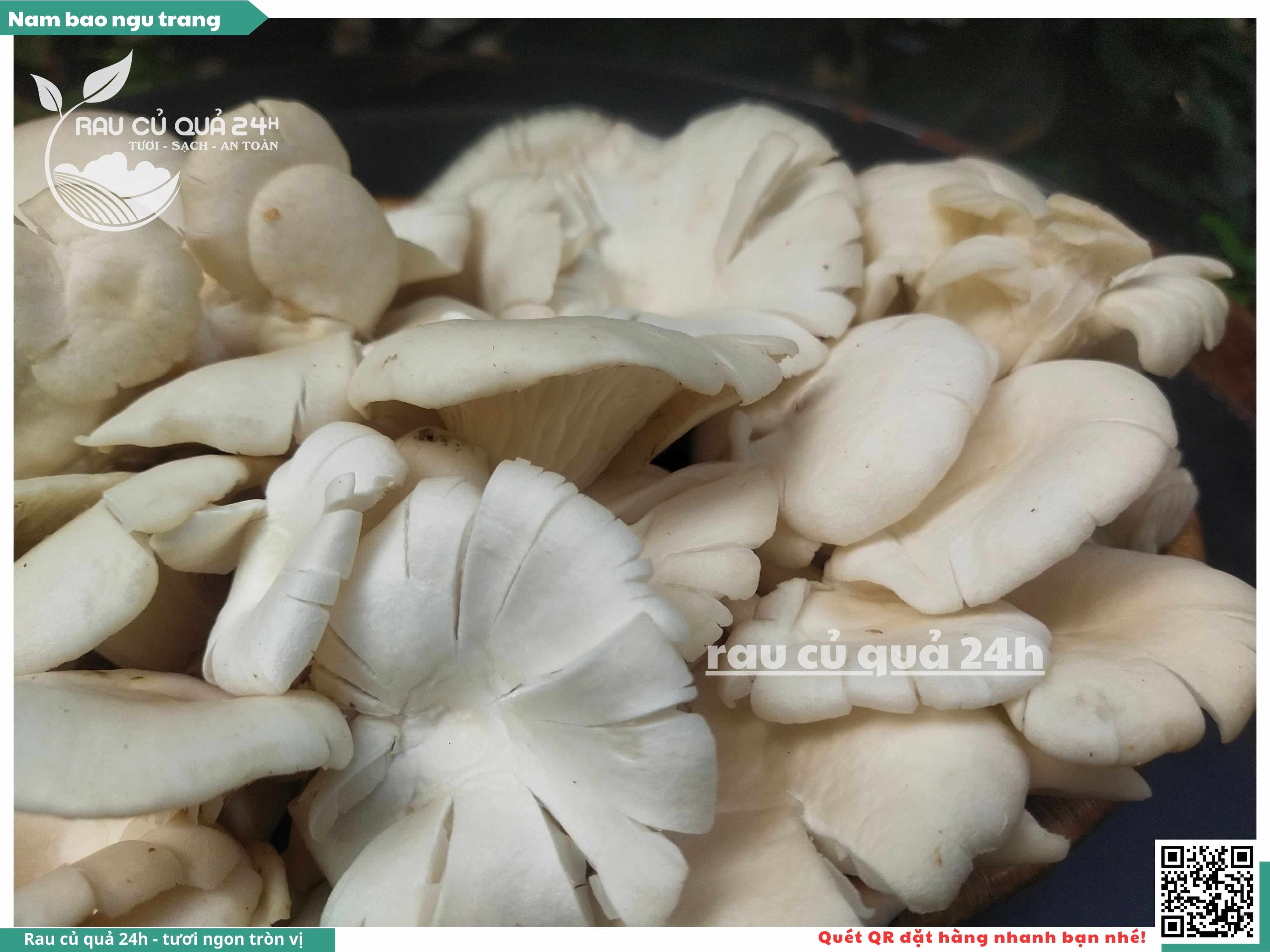 Nấm bào ngư có màu trắng hoặc xám, có hình phễu, có vị ngọt và giòn. Nấm bào ngư có thể được chế biến thành nhiều món ăn ngon và bổ dưỡng, chẳng hạn như canh nấm bào ngư, nấm bào ngư xào thịt, nấm bào ngư xào rau củ,...