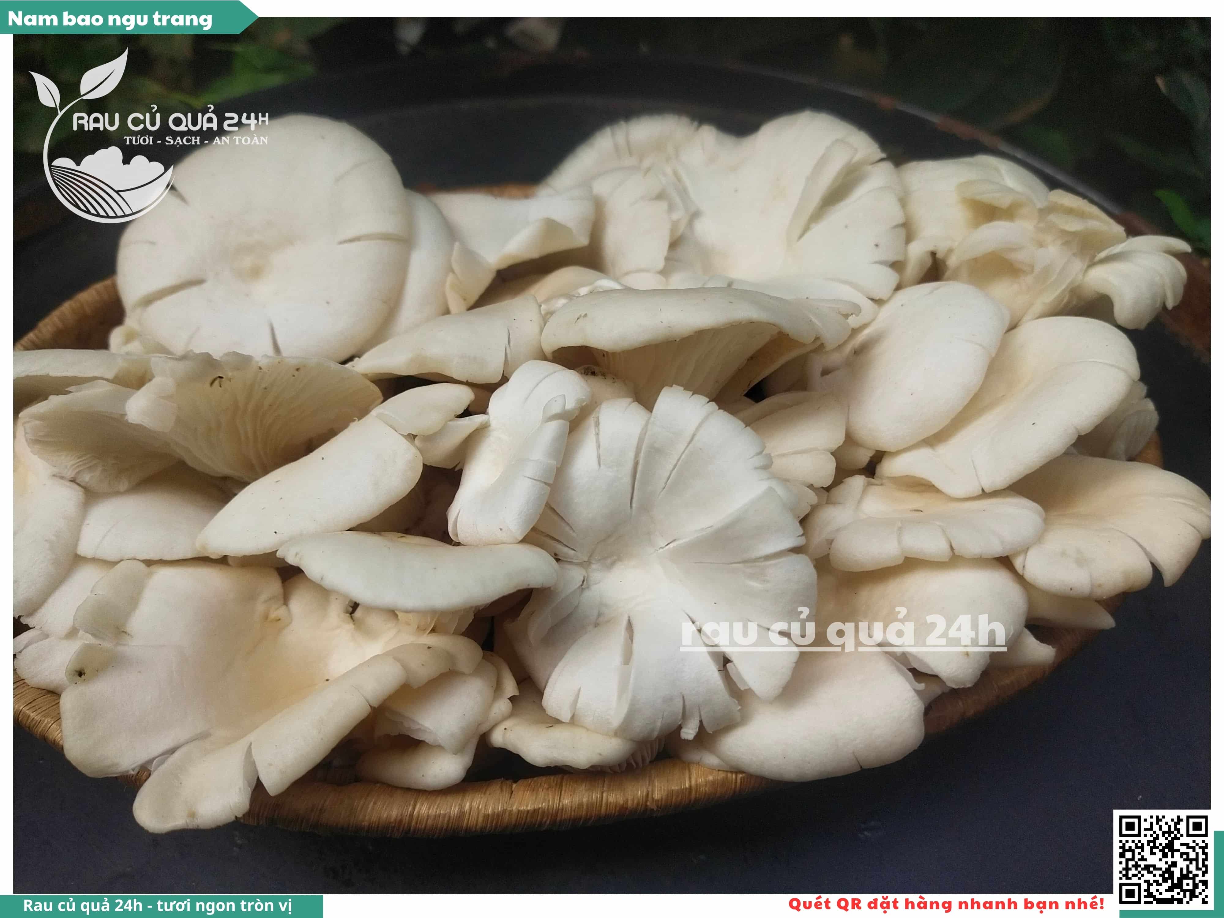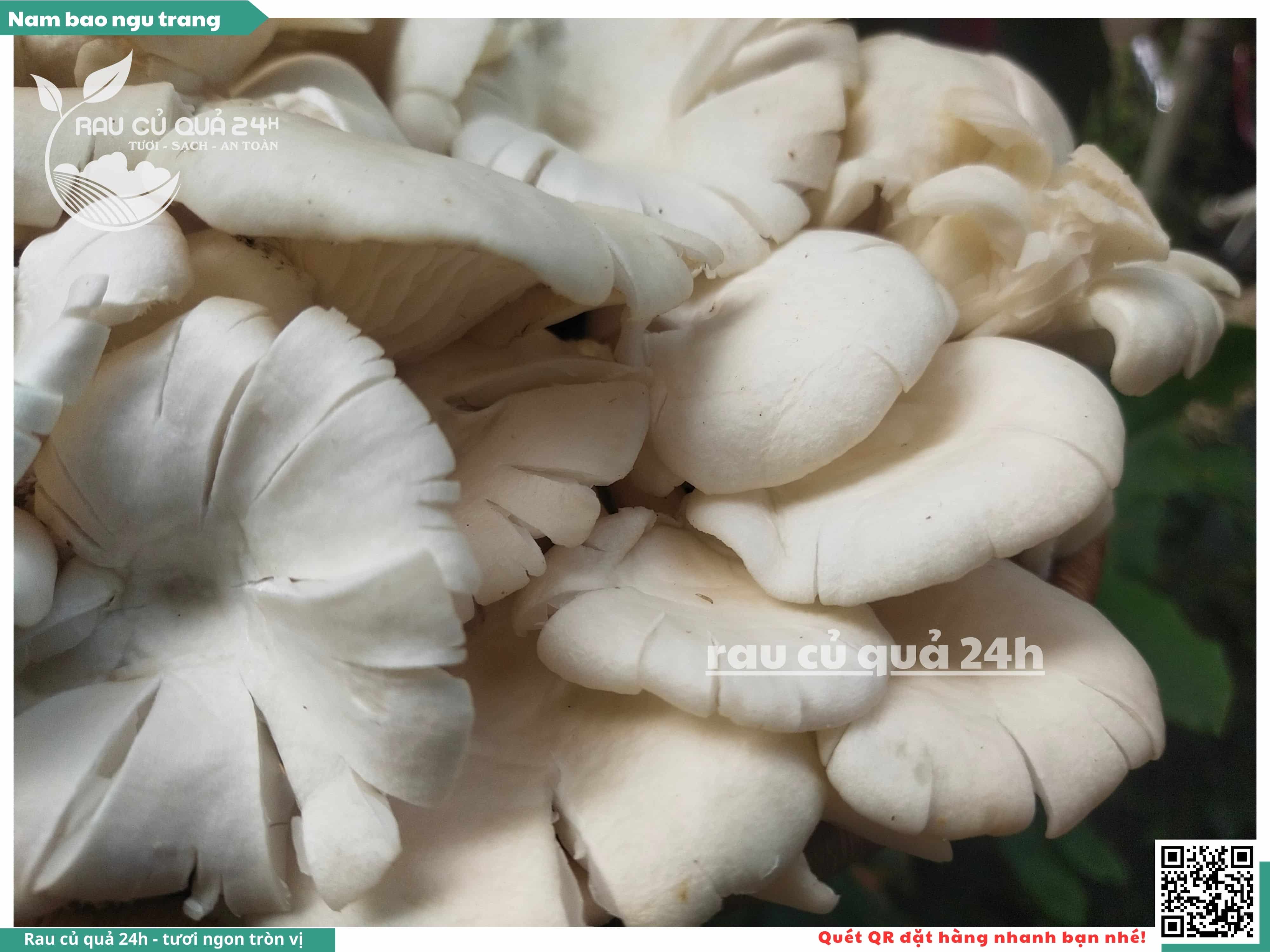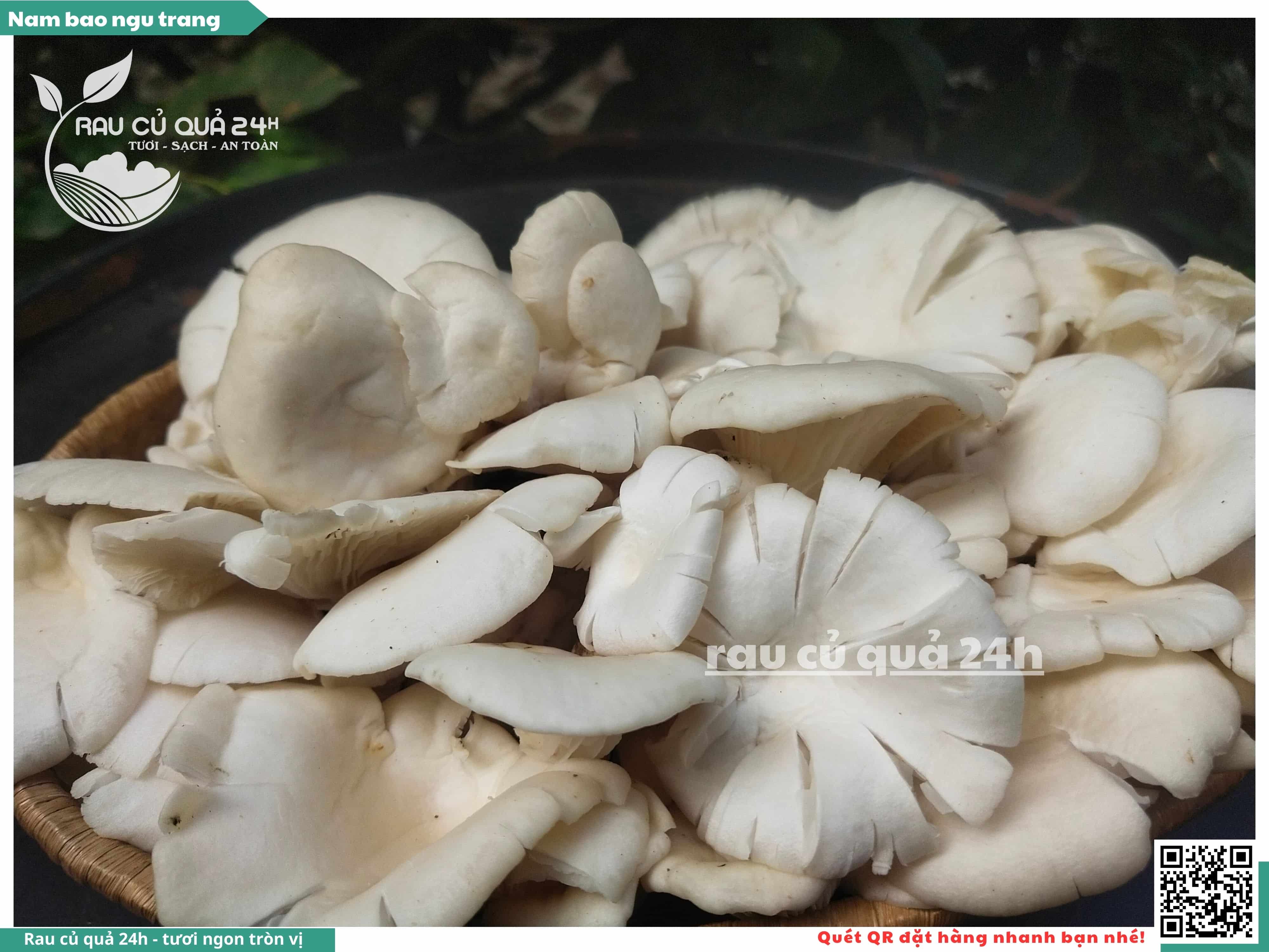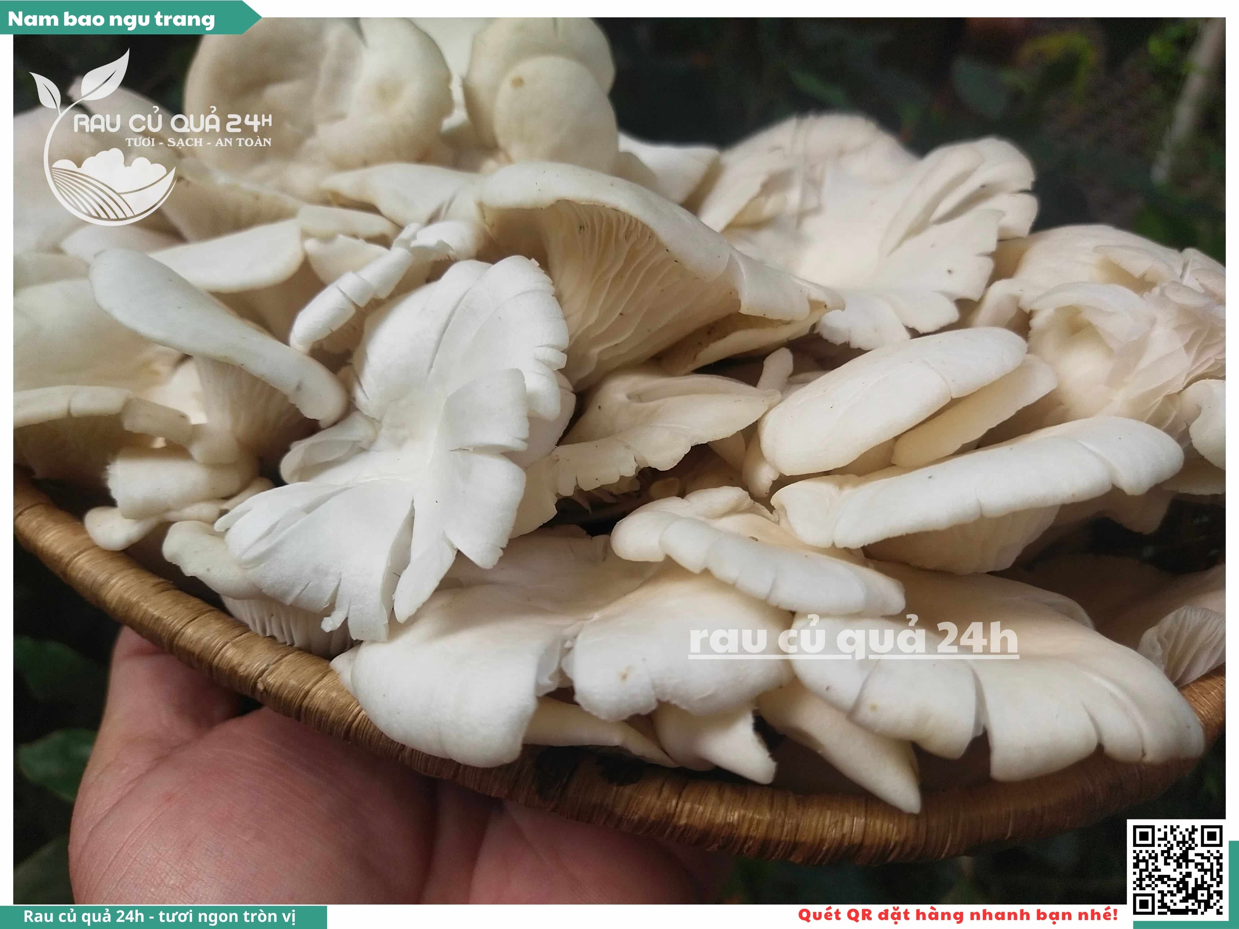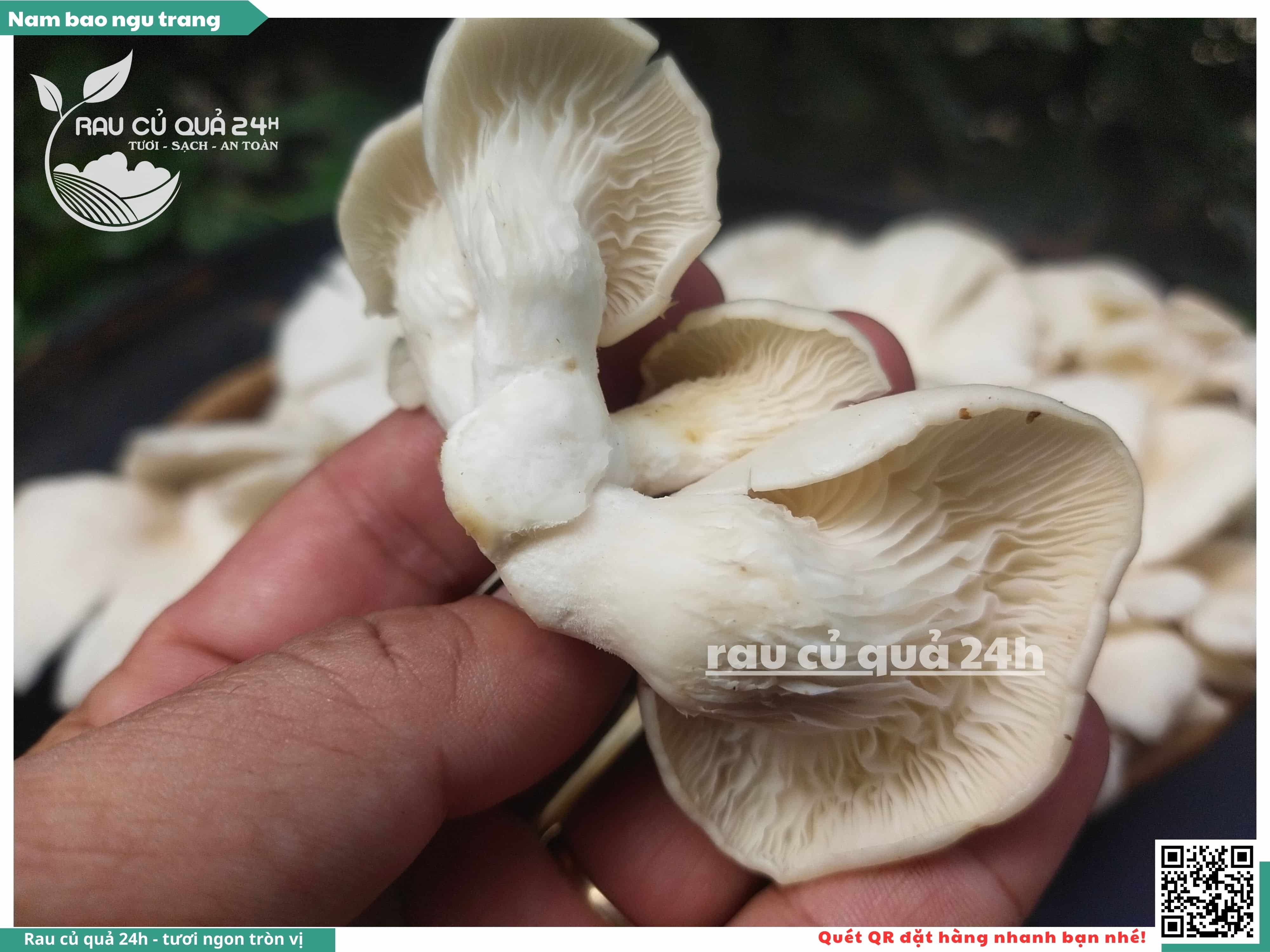 Nấm bào ngư có màu trắng hoặc xám, có hình phễu, có vị ngọt và giòn. Nấm bào ngư có thể được chế biến thành nhiều món ăn ngon và bổ dưỡng, chẳng hạn như canh nấm bào ngư, nấm bào ngư xào thịt, nấm bào ngư xào rau củ,...