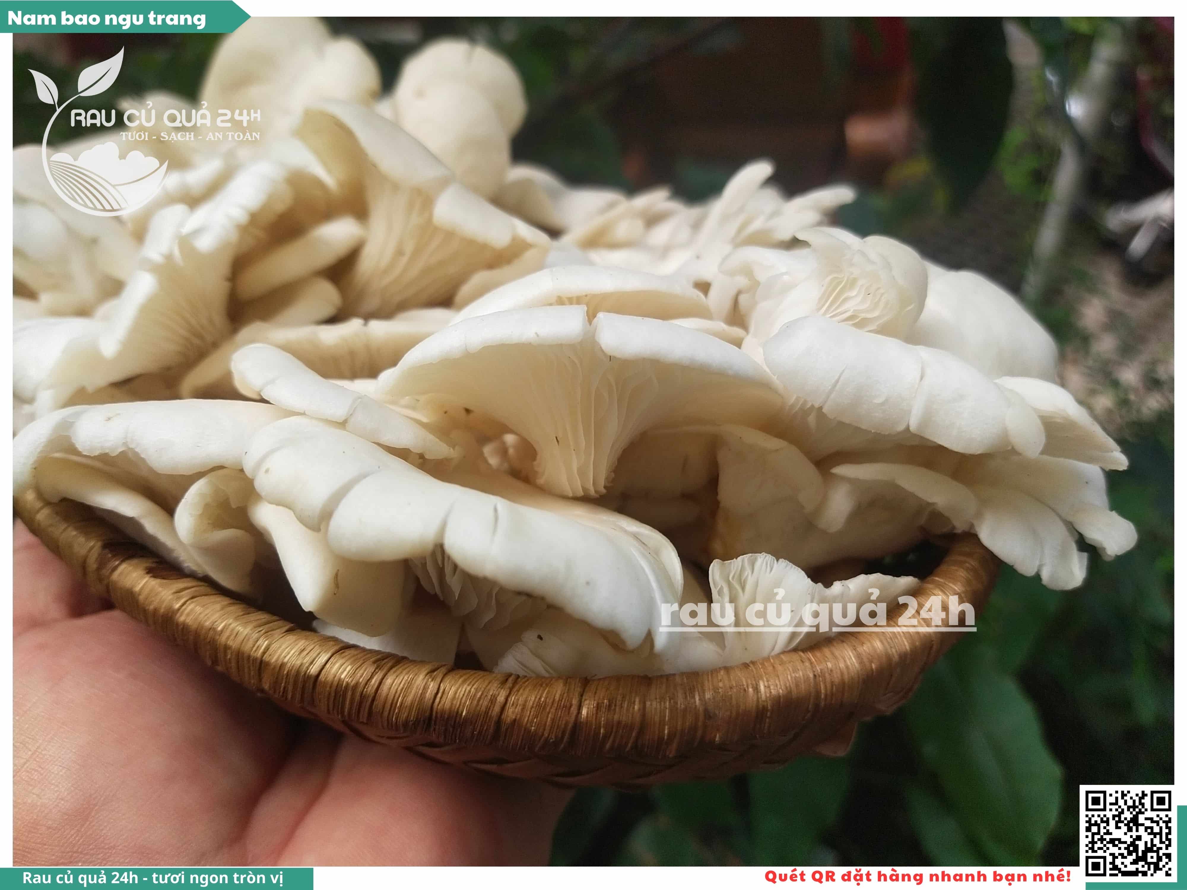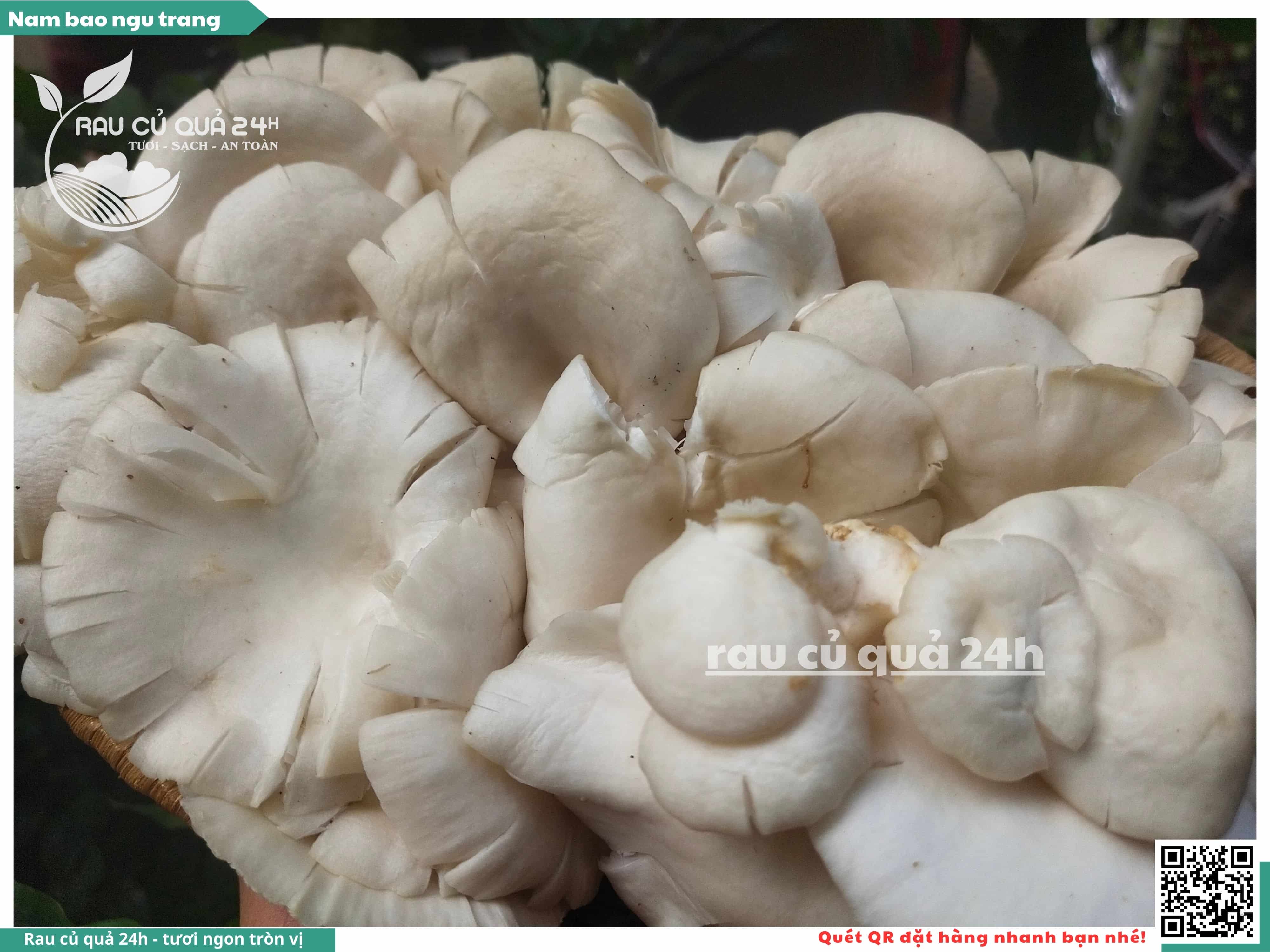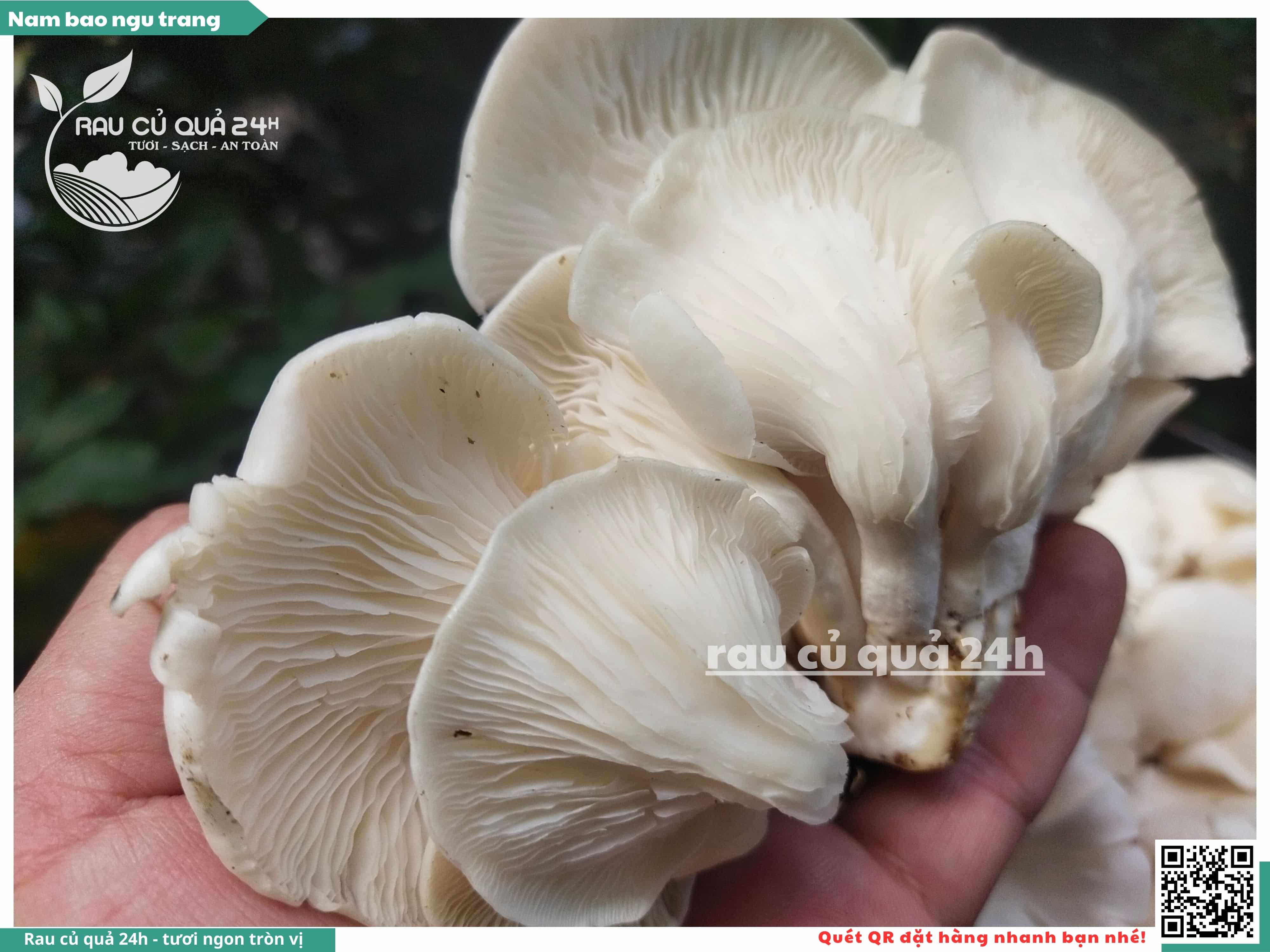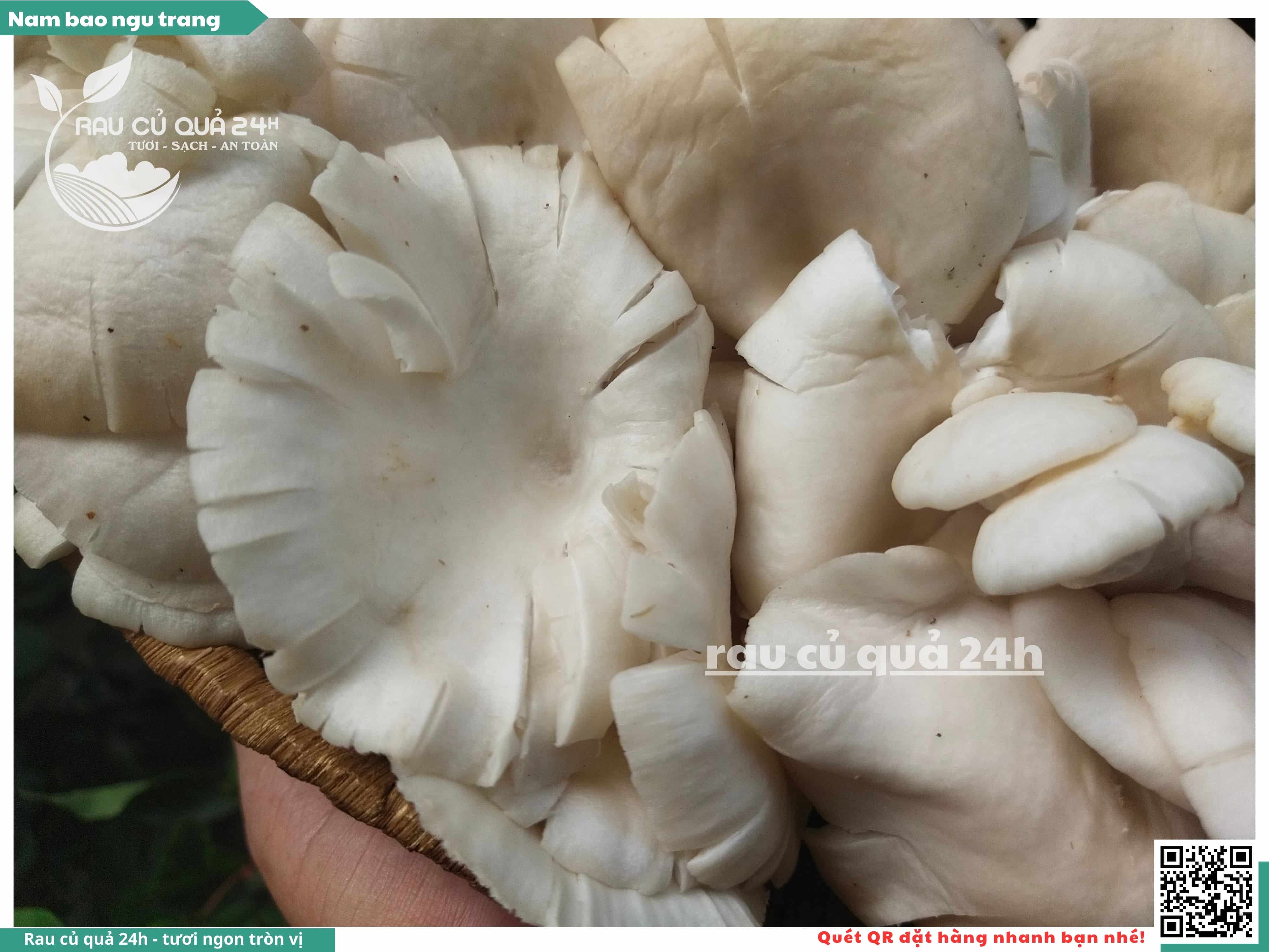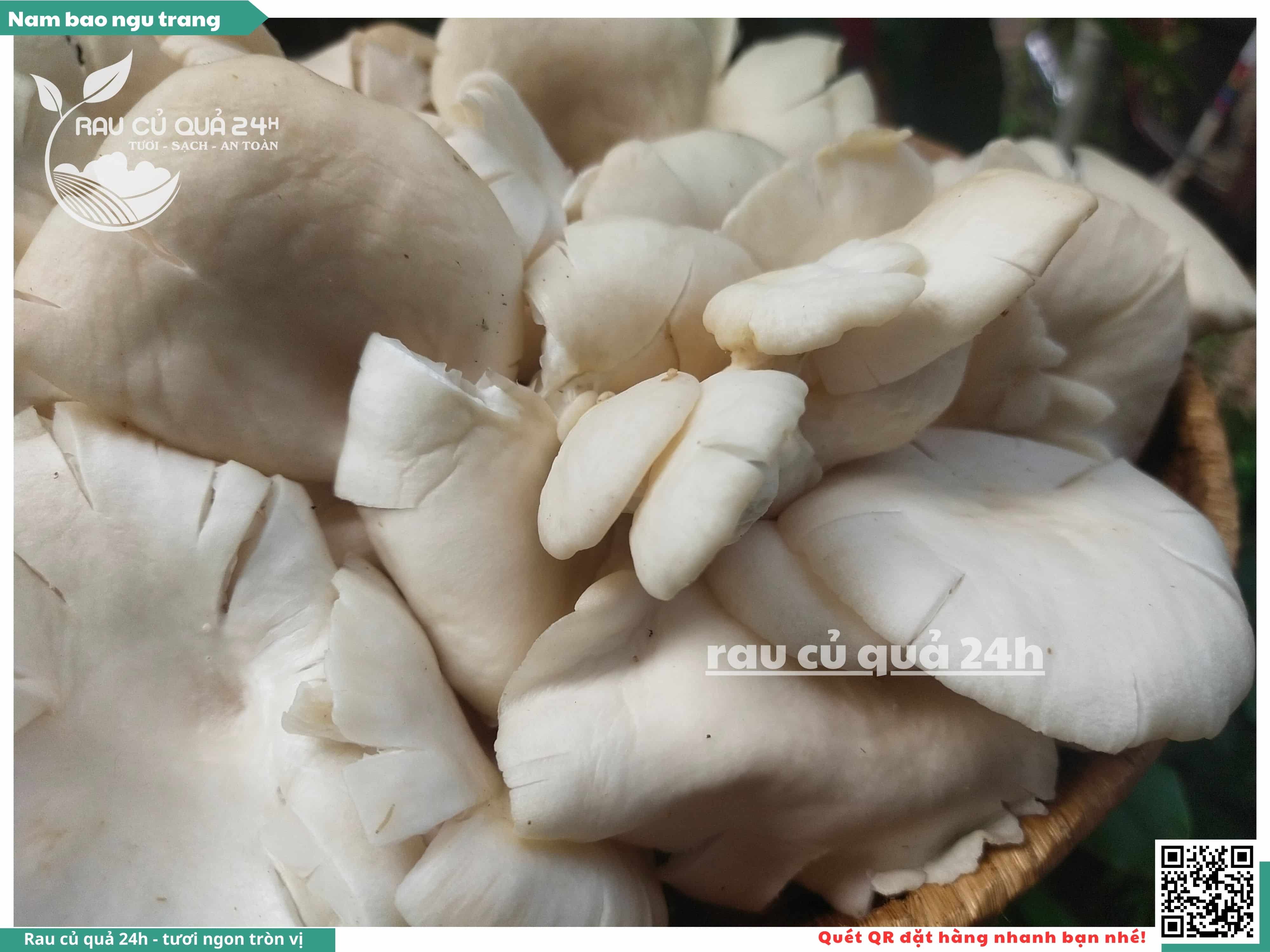 Nấm bào ngư có màu trắng hoặc xám, có hình phễu, có vị ngọt và giòn. Nấm bào ngư có thể được chế biến thành nhiều món ăn ngon và bổ dưỡng, chẳng hạn như canh nấm bào ngư, nấm bào ngư xào thịt, nấm bào ngư xào rau củ,...
