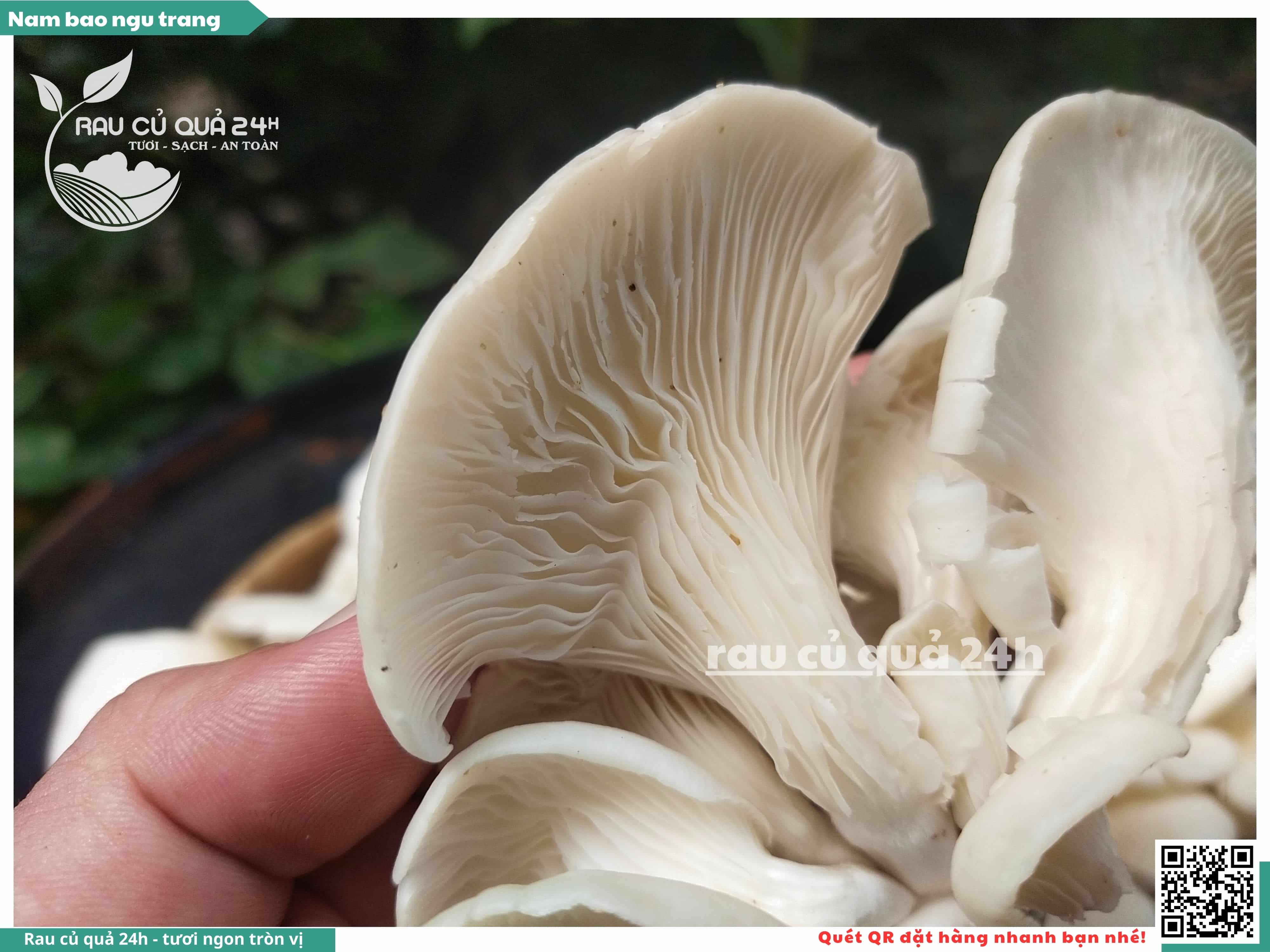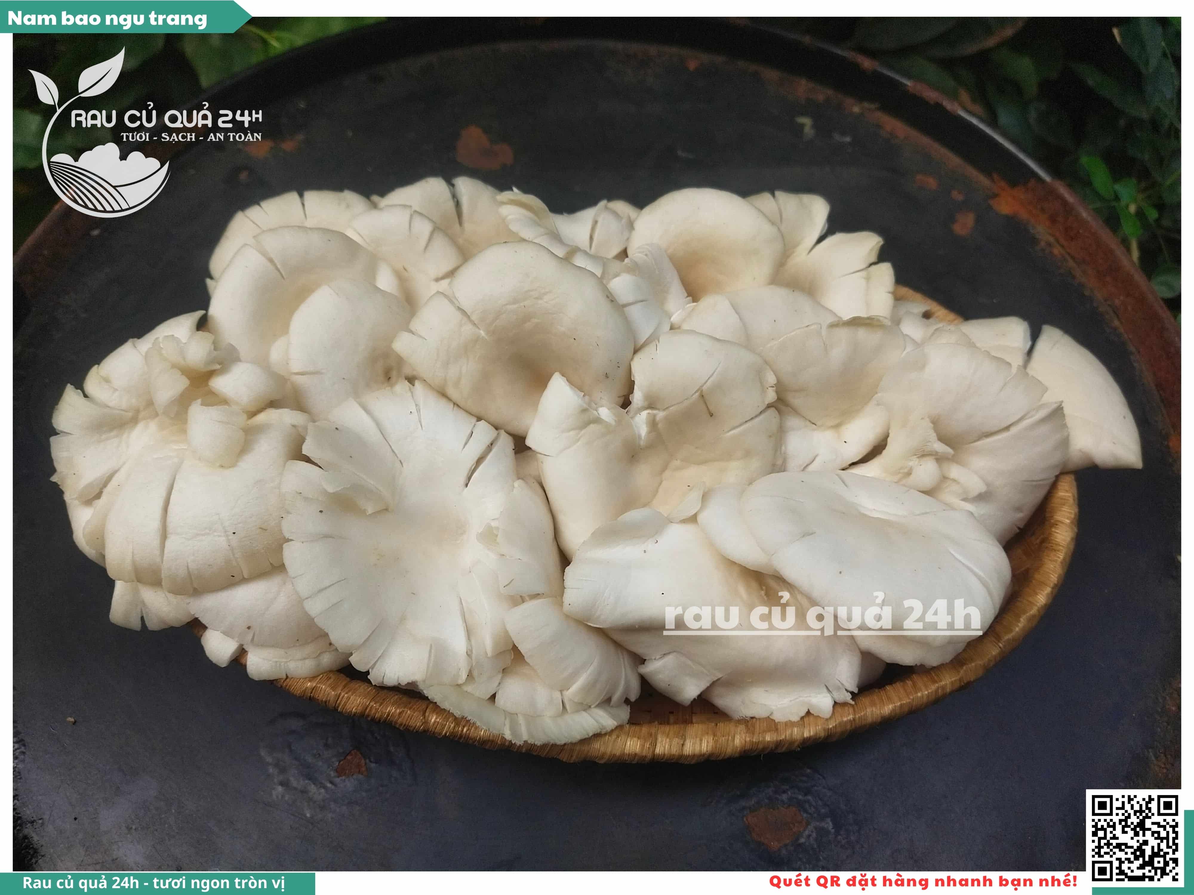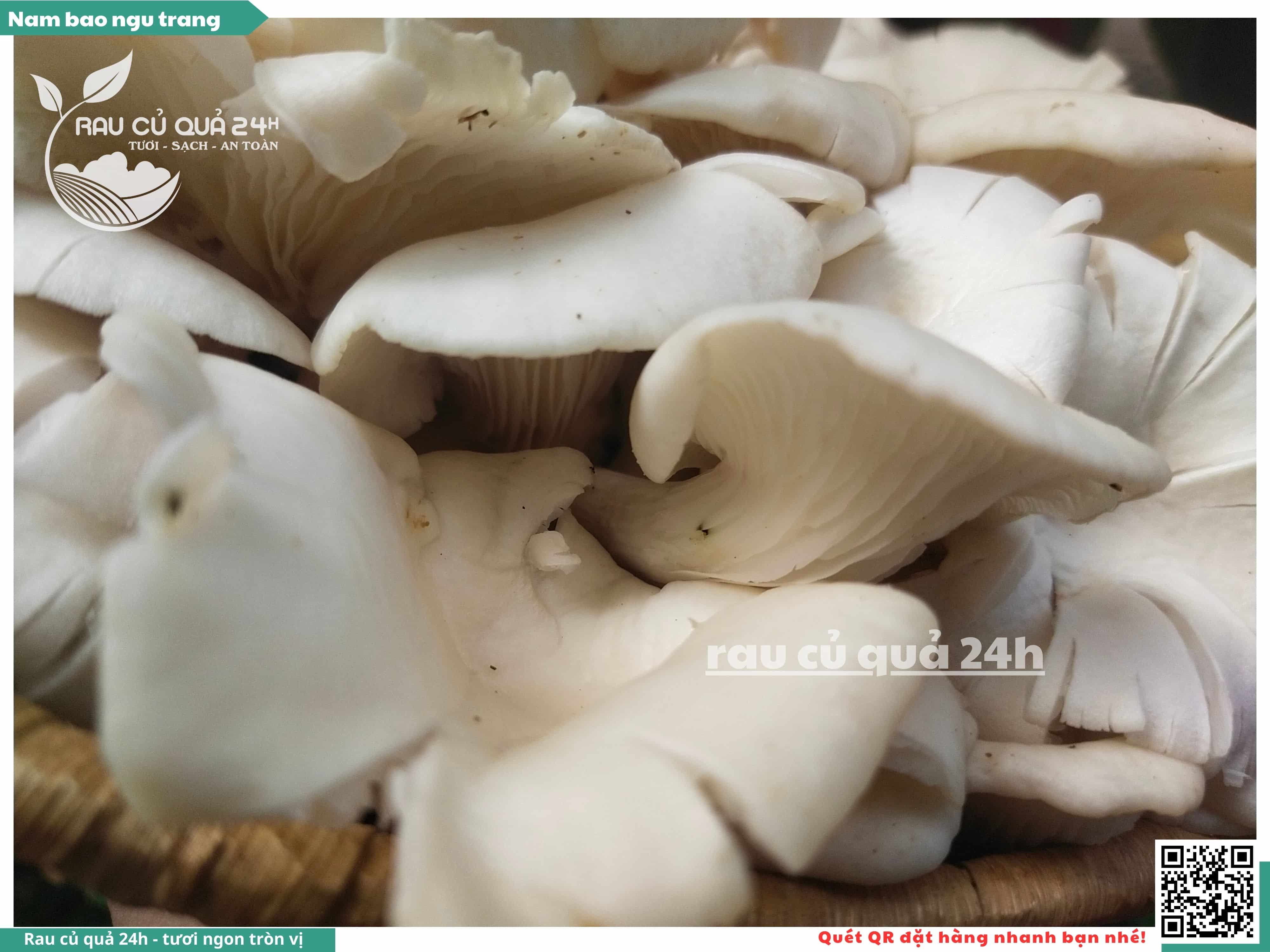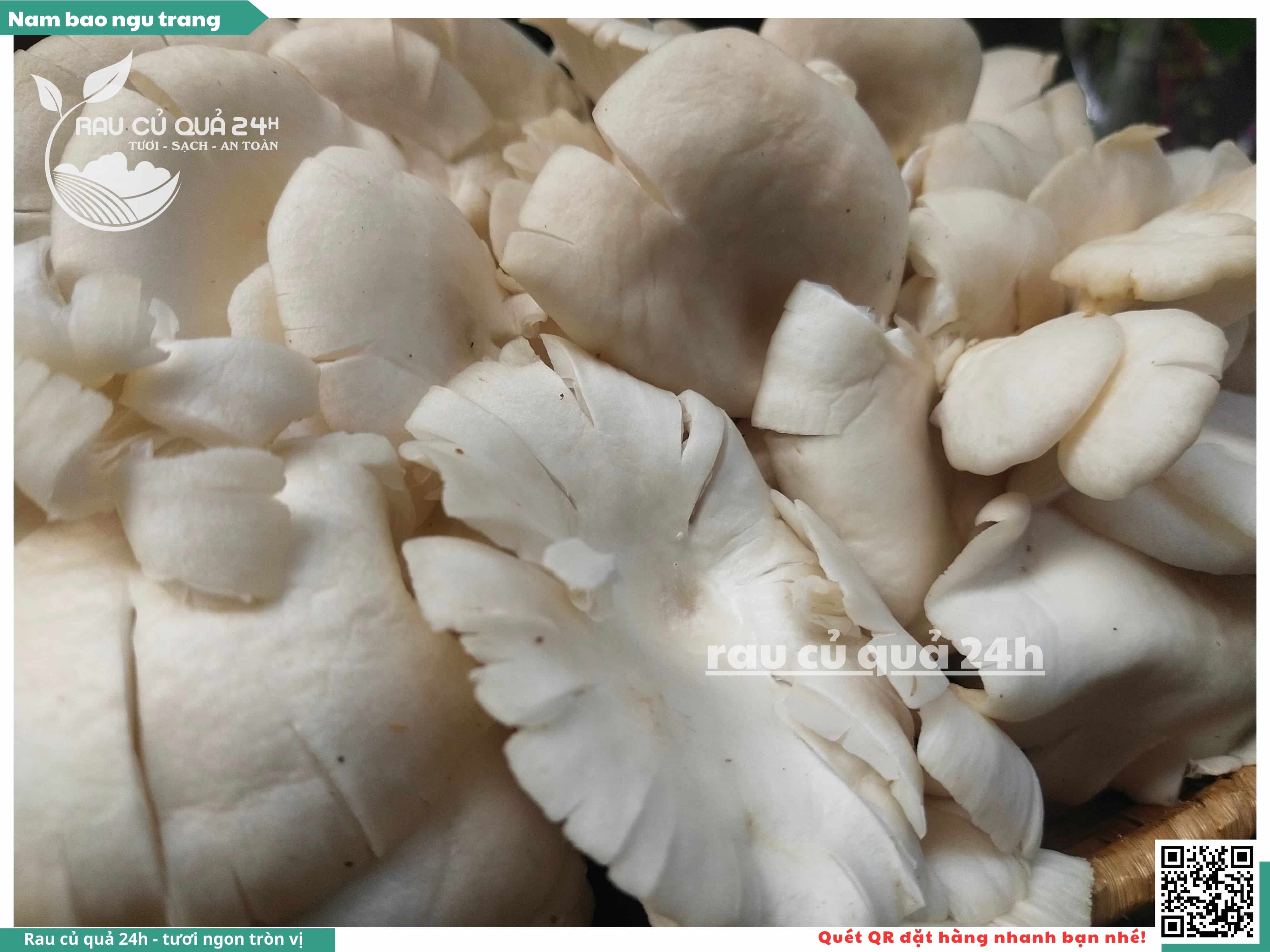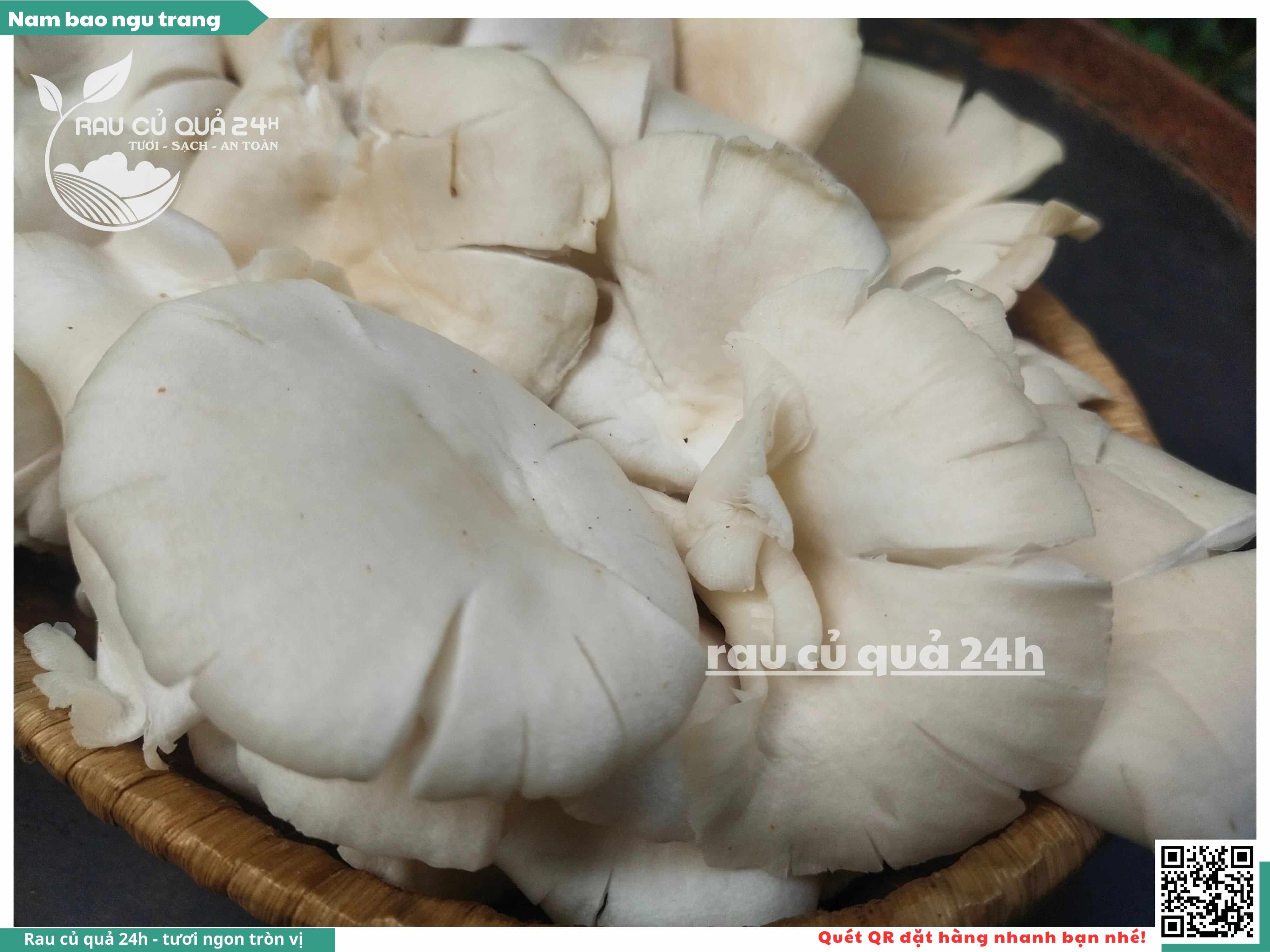 Nấm bào ngư có màu trắng hoặc xám, có hình phễu, có vị ngọt và giòn. Nấm bào ngư có thể được chế biến thành nhiều món ăn ngon và bổ dưỡng, chẳng hạn như canh nấm bào ngư, nấm bào ngư xào thịt, nấm bào ngư xào rau củ,...