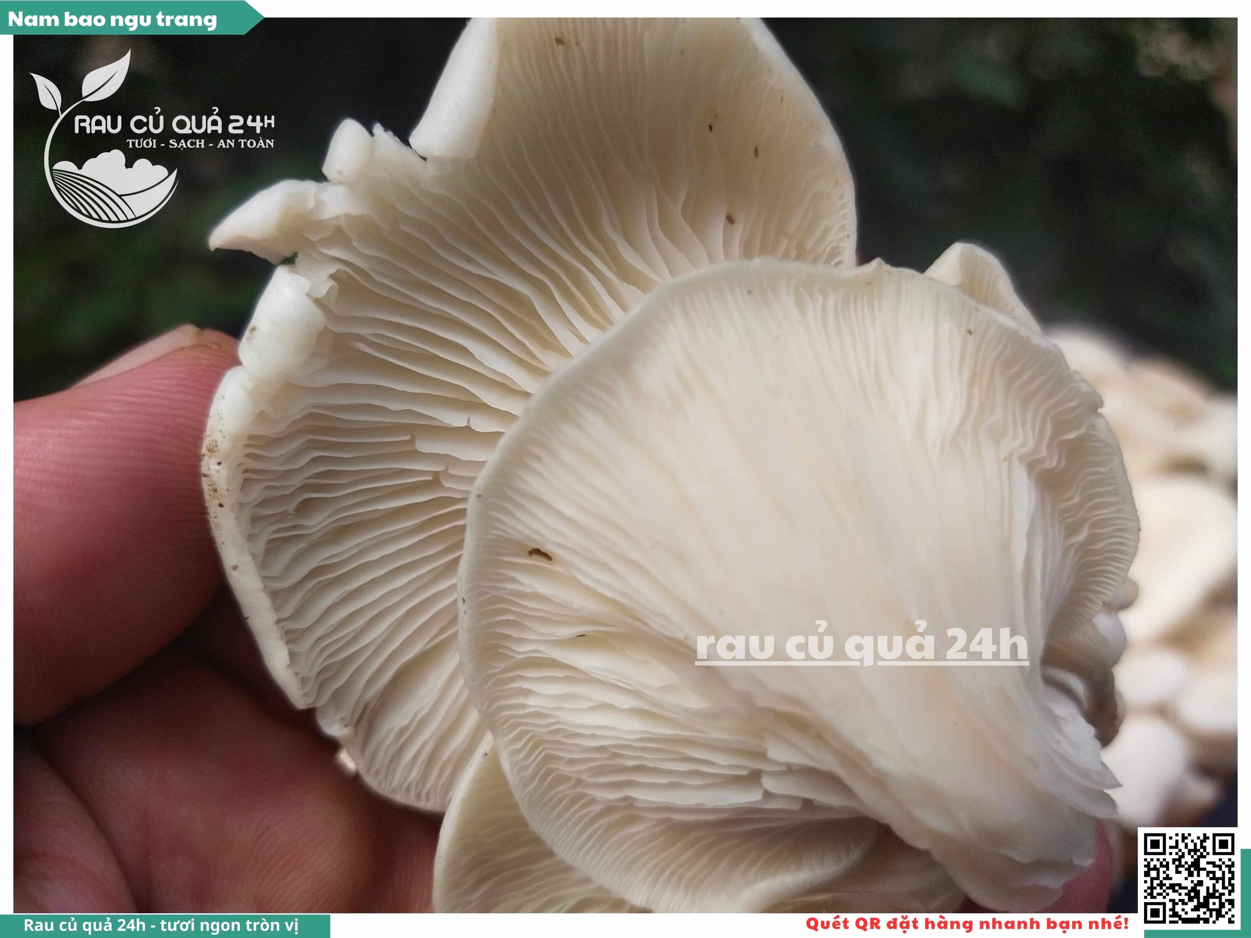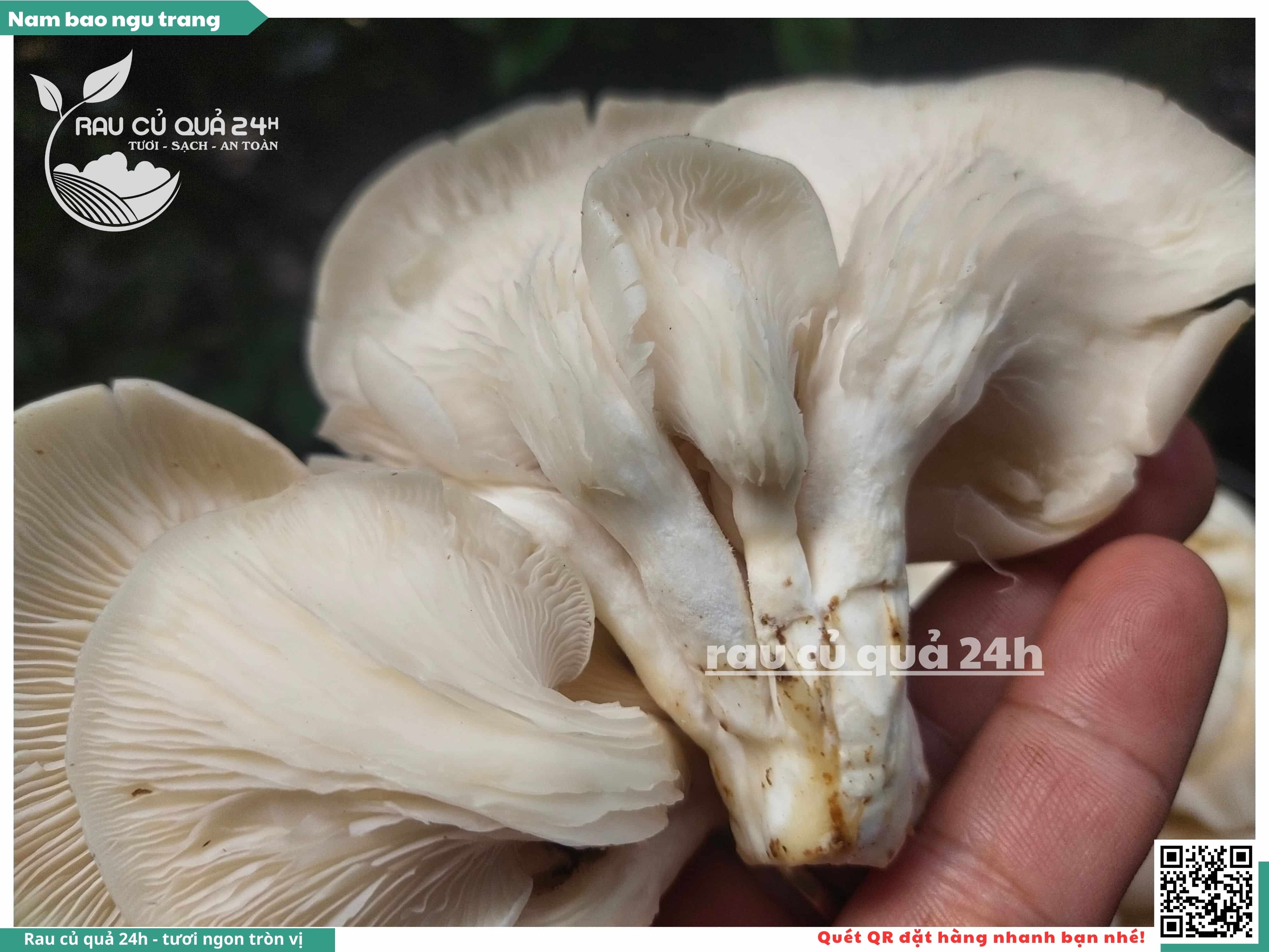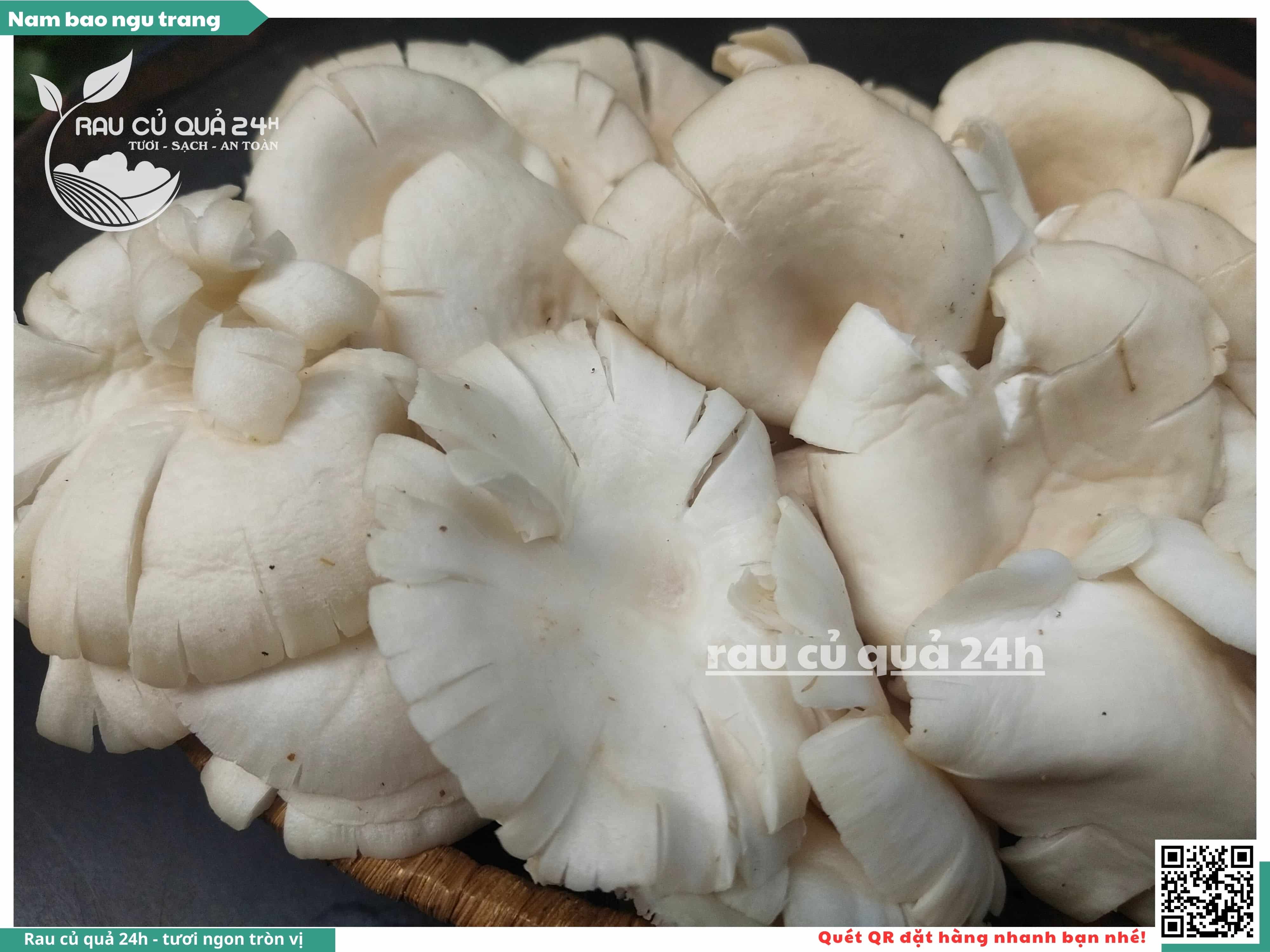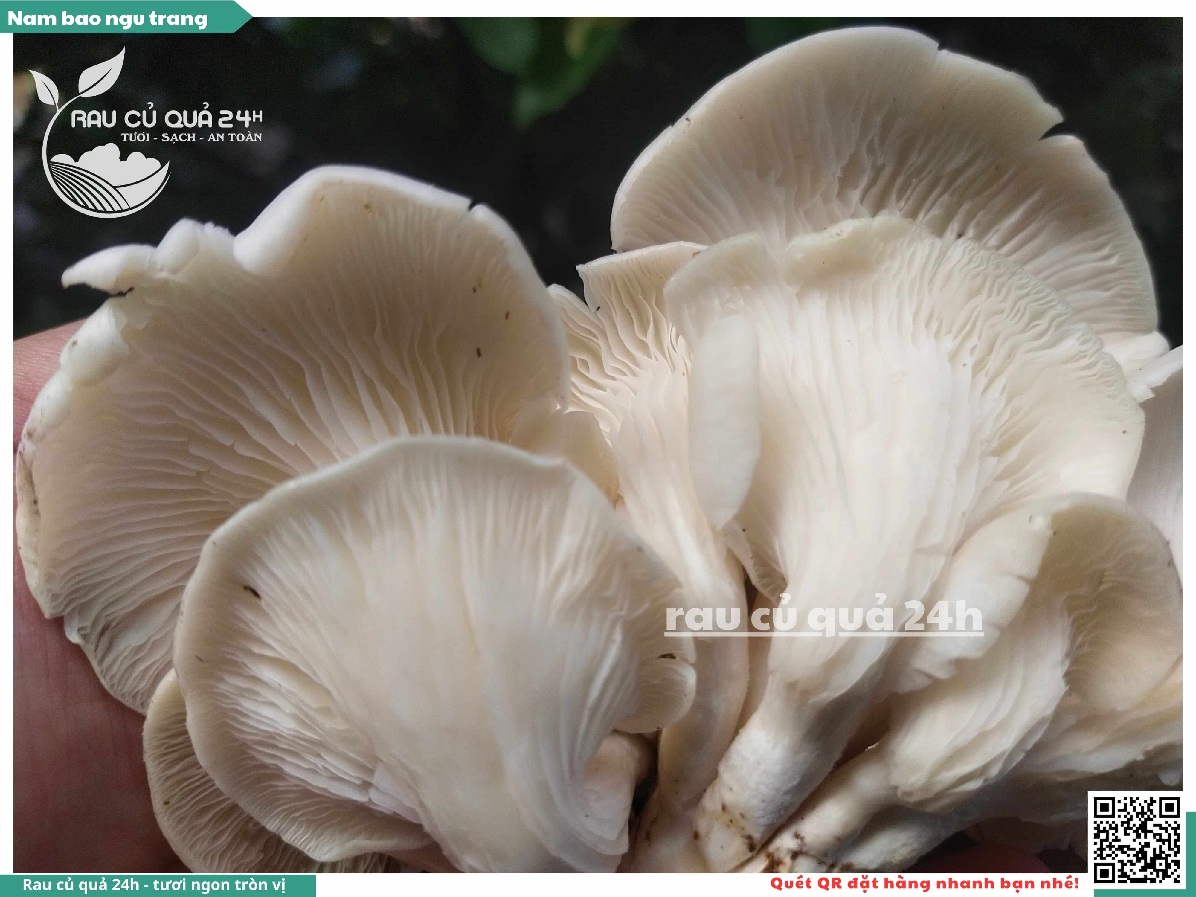 Nấm bào ngư có màu trắng hoặc xám, có hình phễu, có vị ngọt và giòn. Nấm bào ngư có thể được chế biến thành nhiều món ăn ngon và bổ dưỡng, chẳng hạn như canh nấm bào ngư, nấm bào ngư xào thịt, nấm bào ngư xào rau củ,...