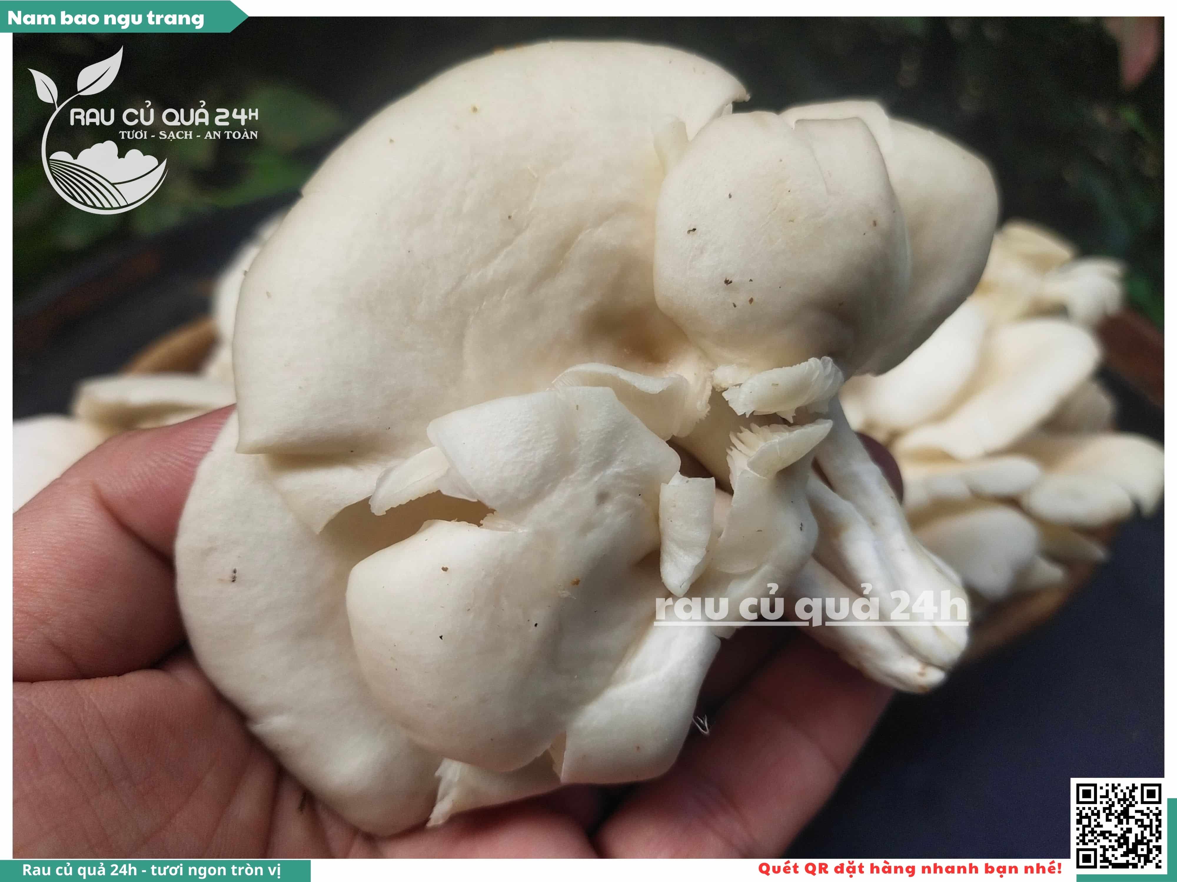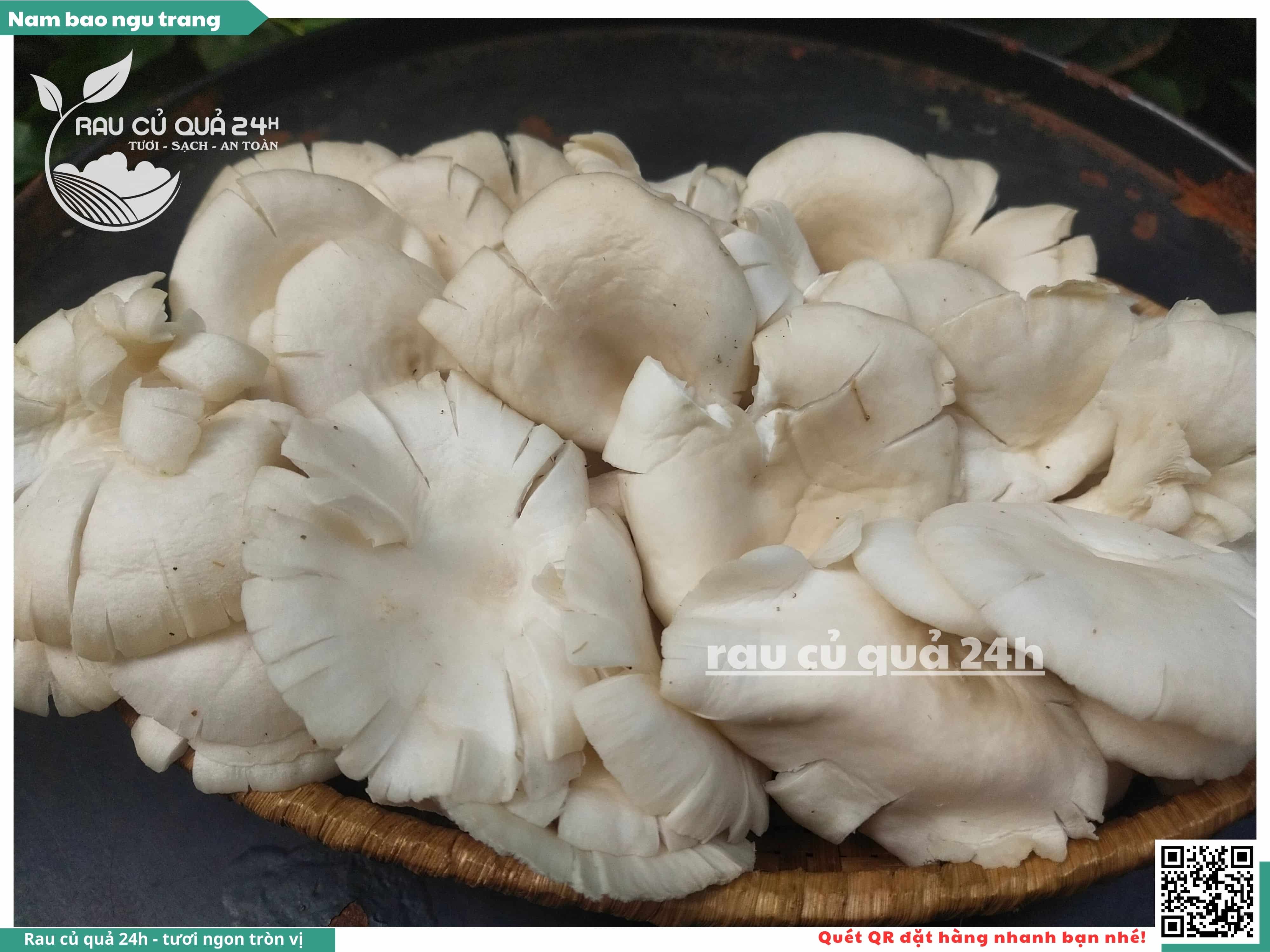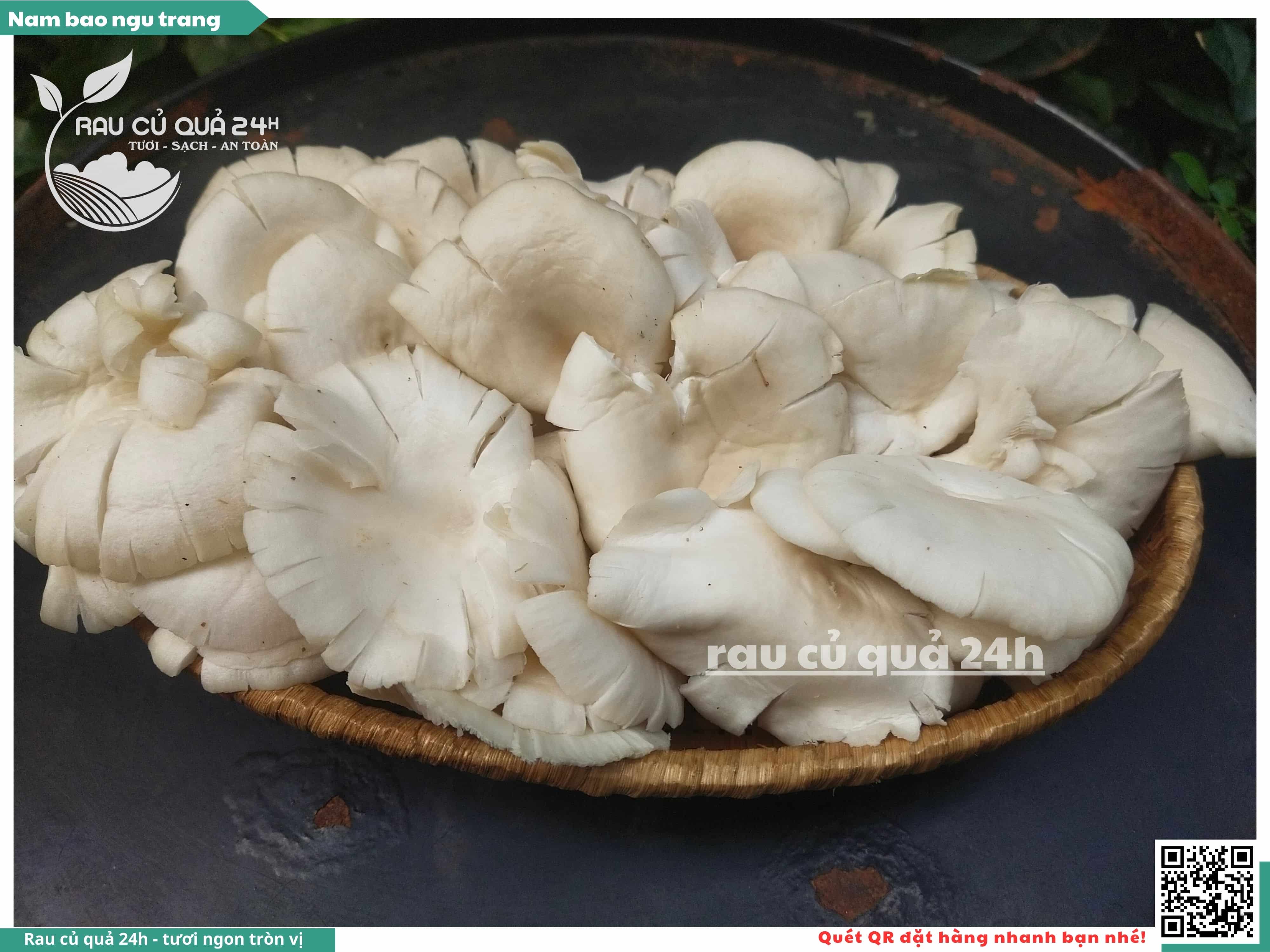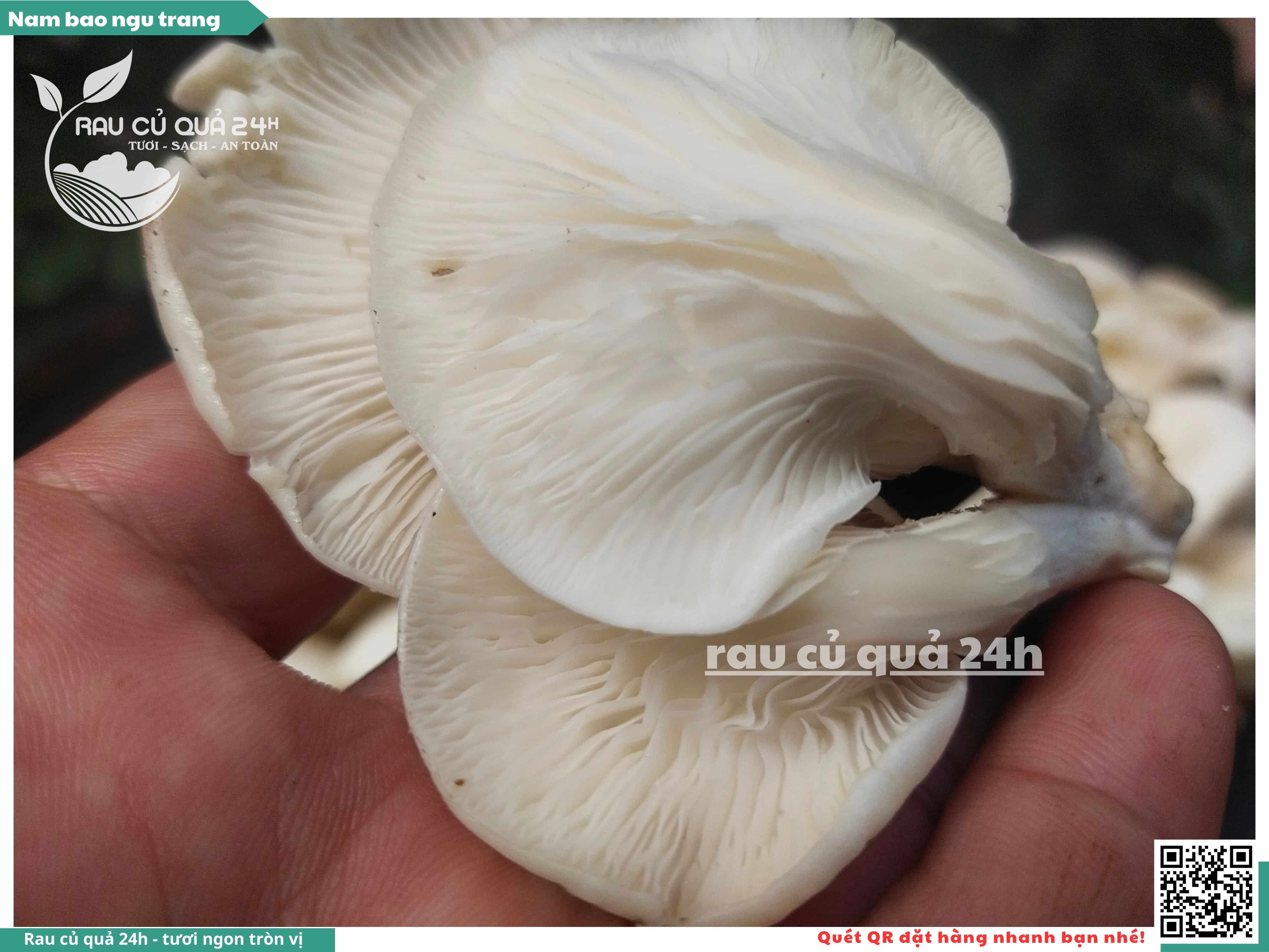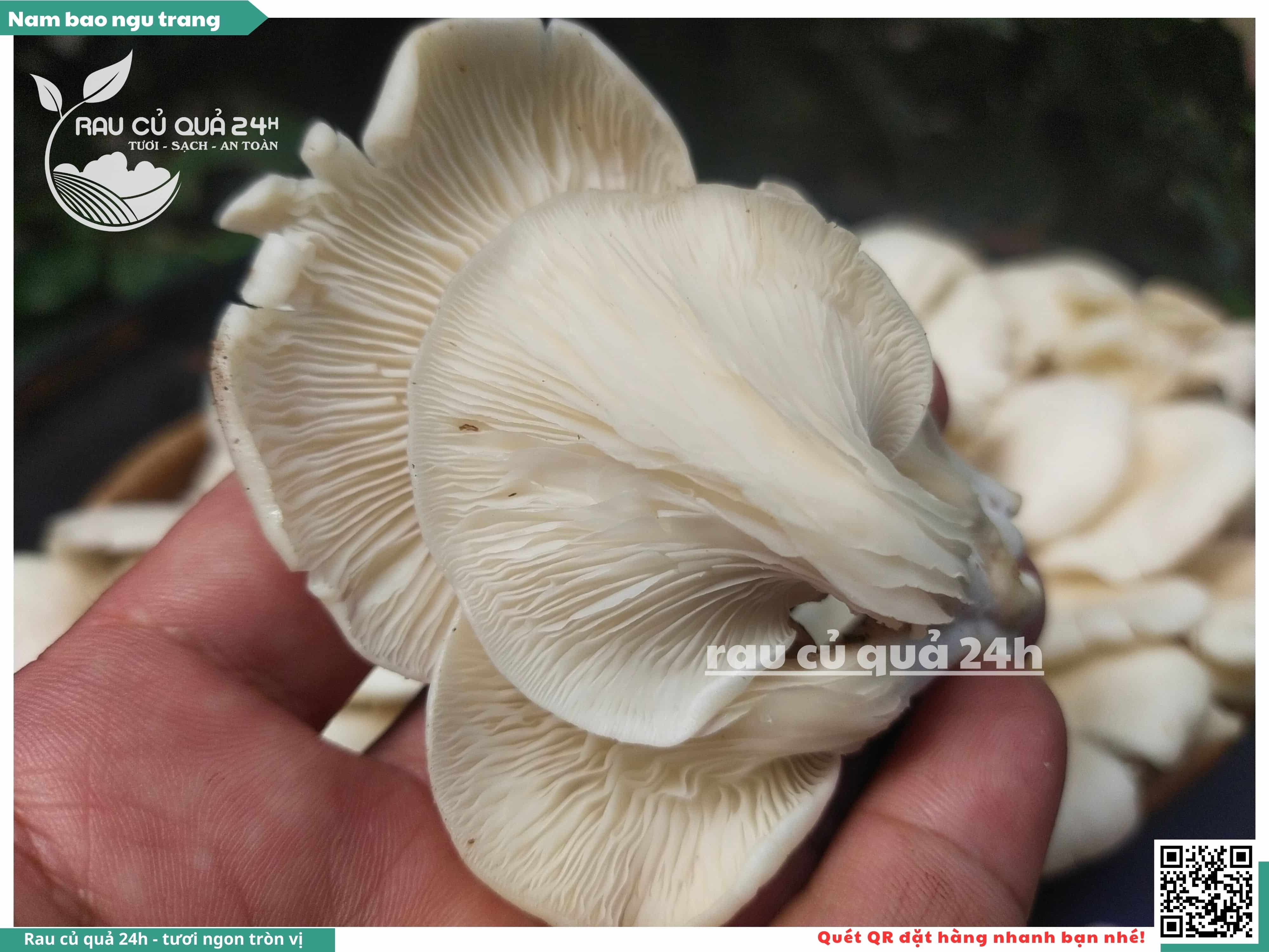 Nấm bào ngư có màu trắng hoặc xám, có hình phễu, có vị ngọt và giòn. Nấm bào ngư có thể được chế biến thành nhiều món ăn ngon và bổ dưỡng, chẳng hạn như canh nấm bào ngư, nấm bào ngư xào thịt, nấm bào ngư xào rau củ,...