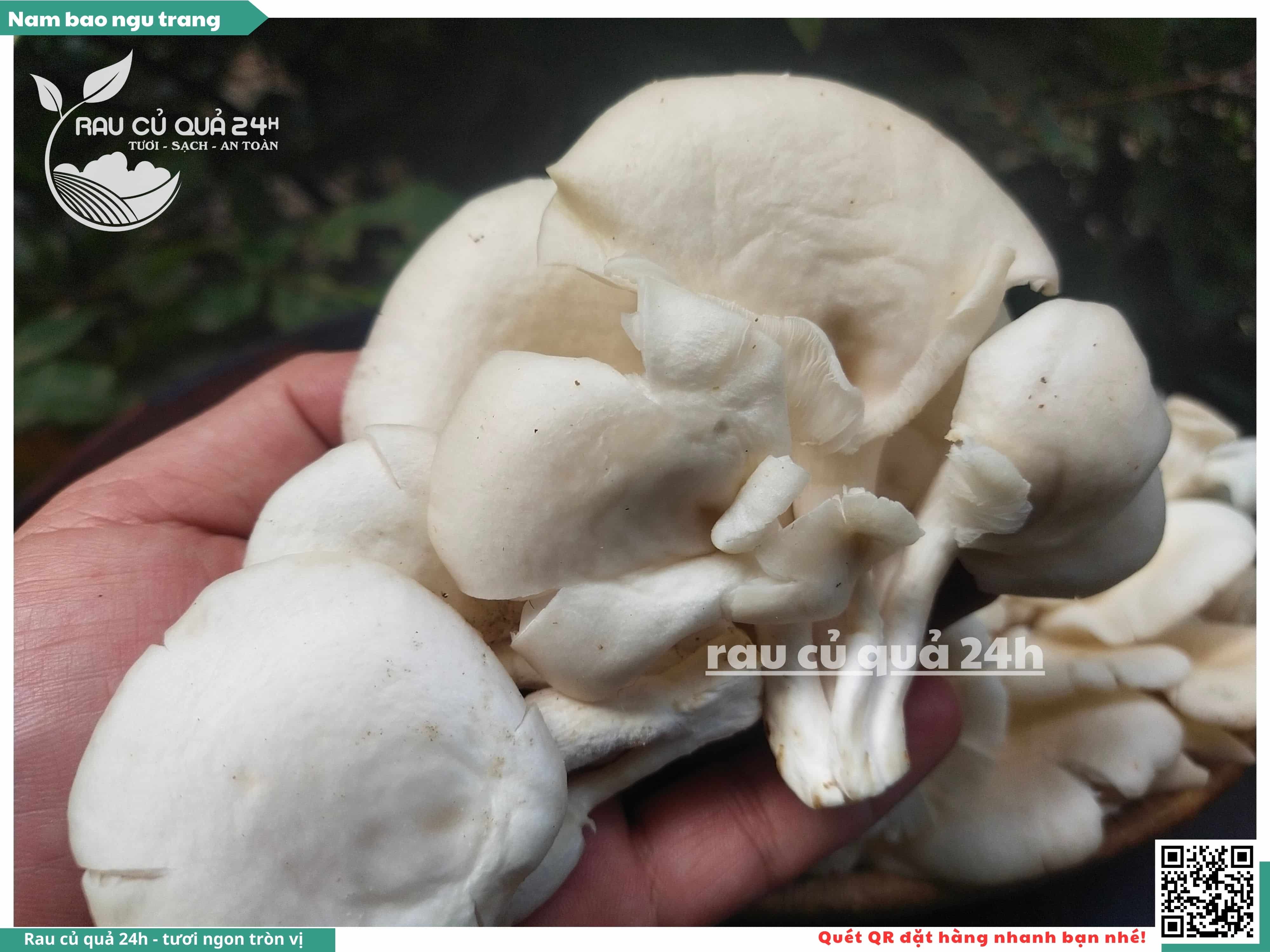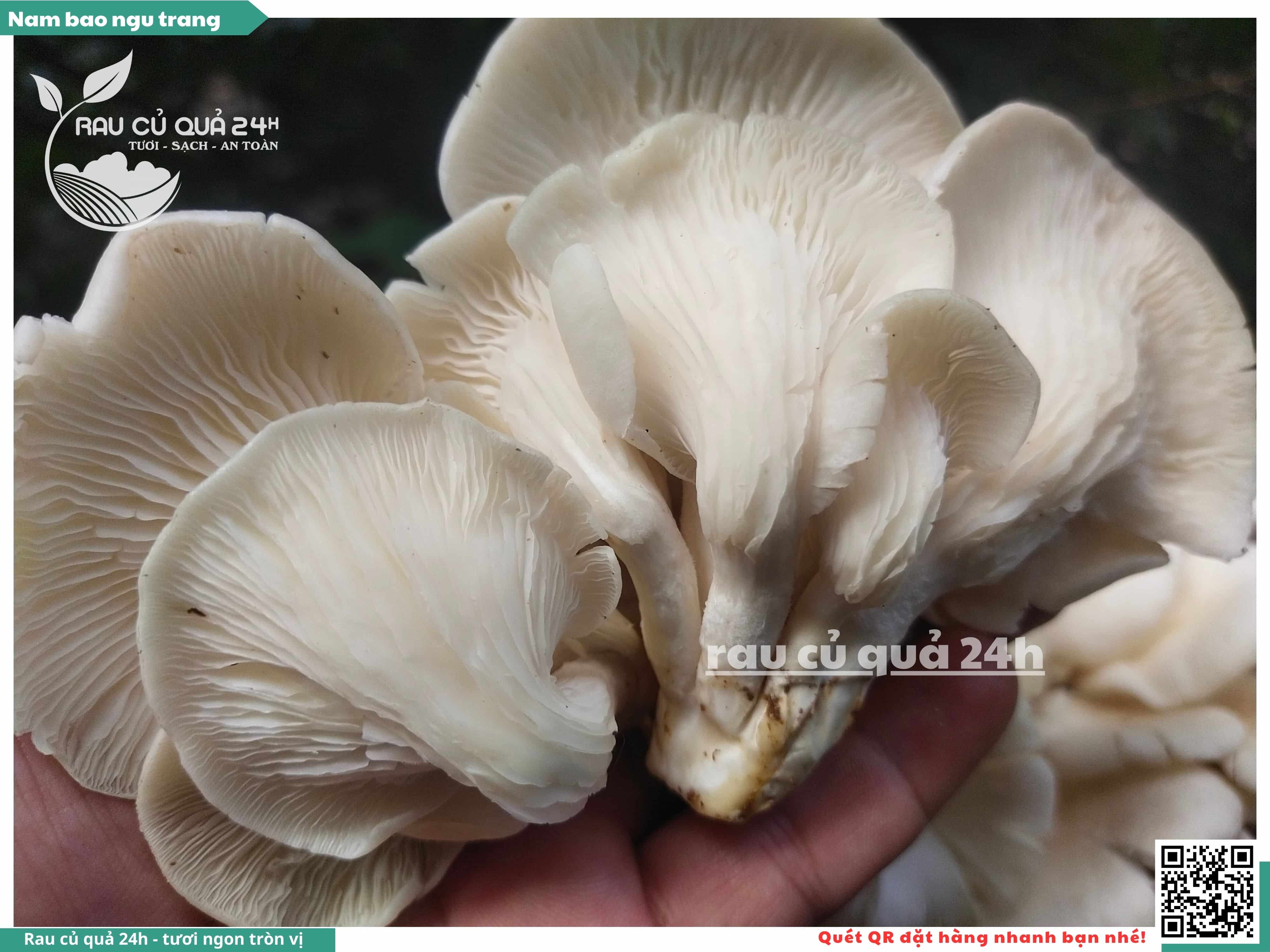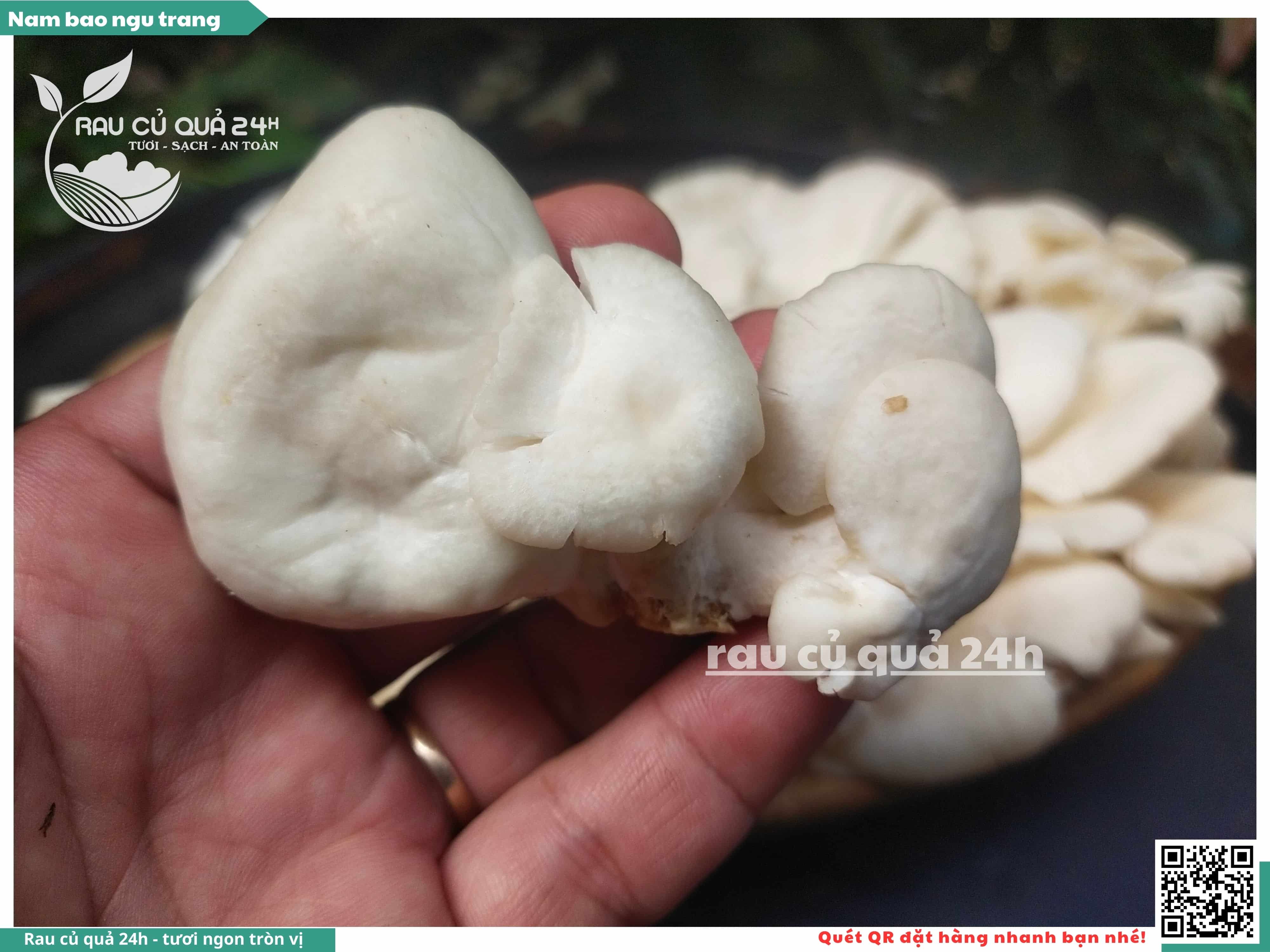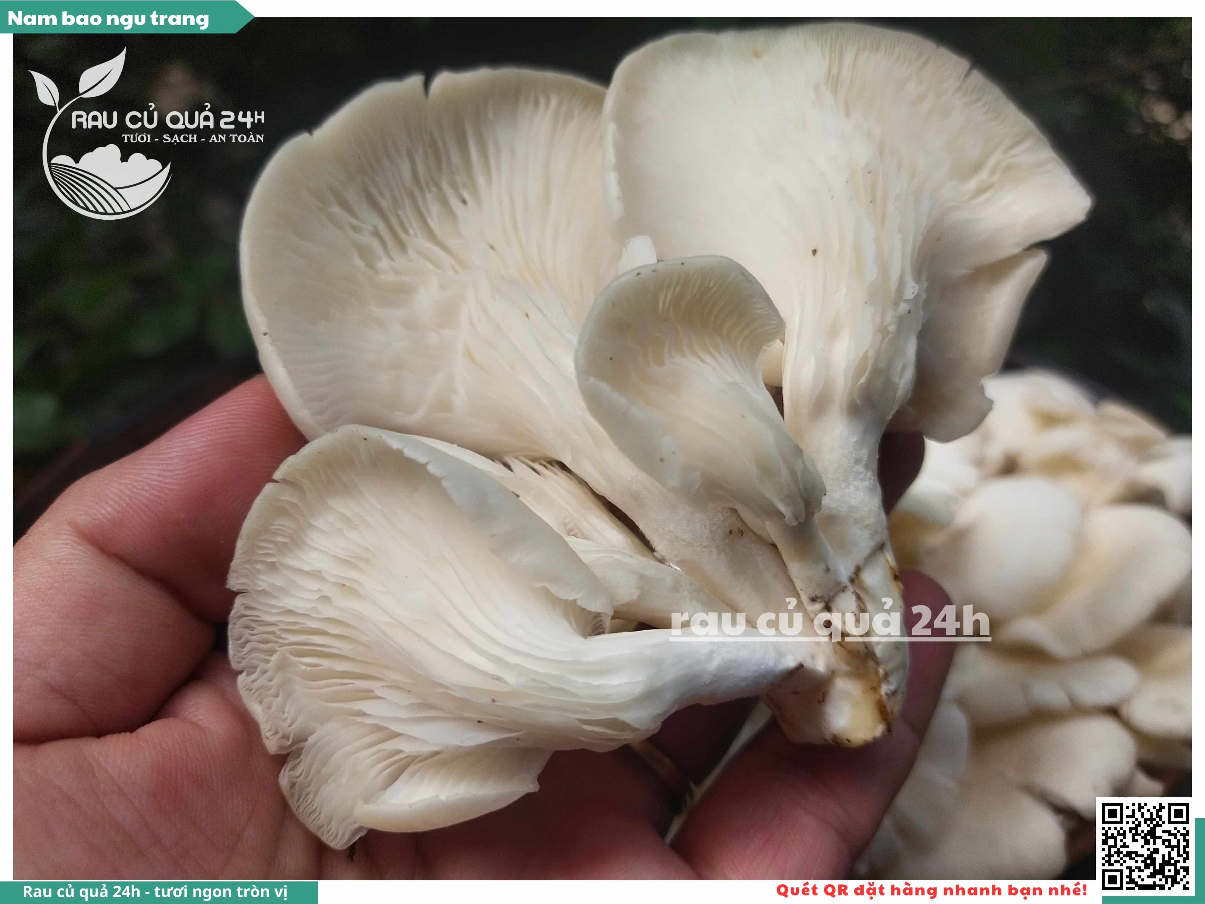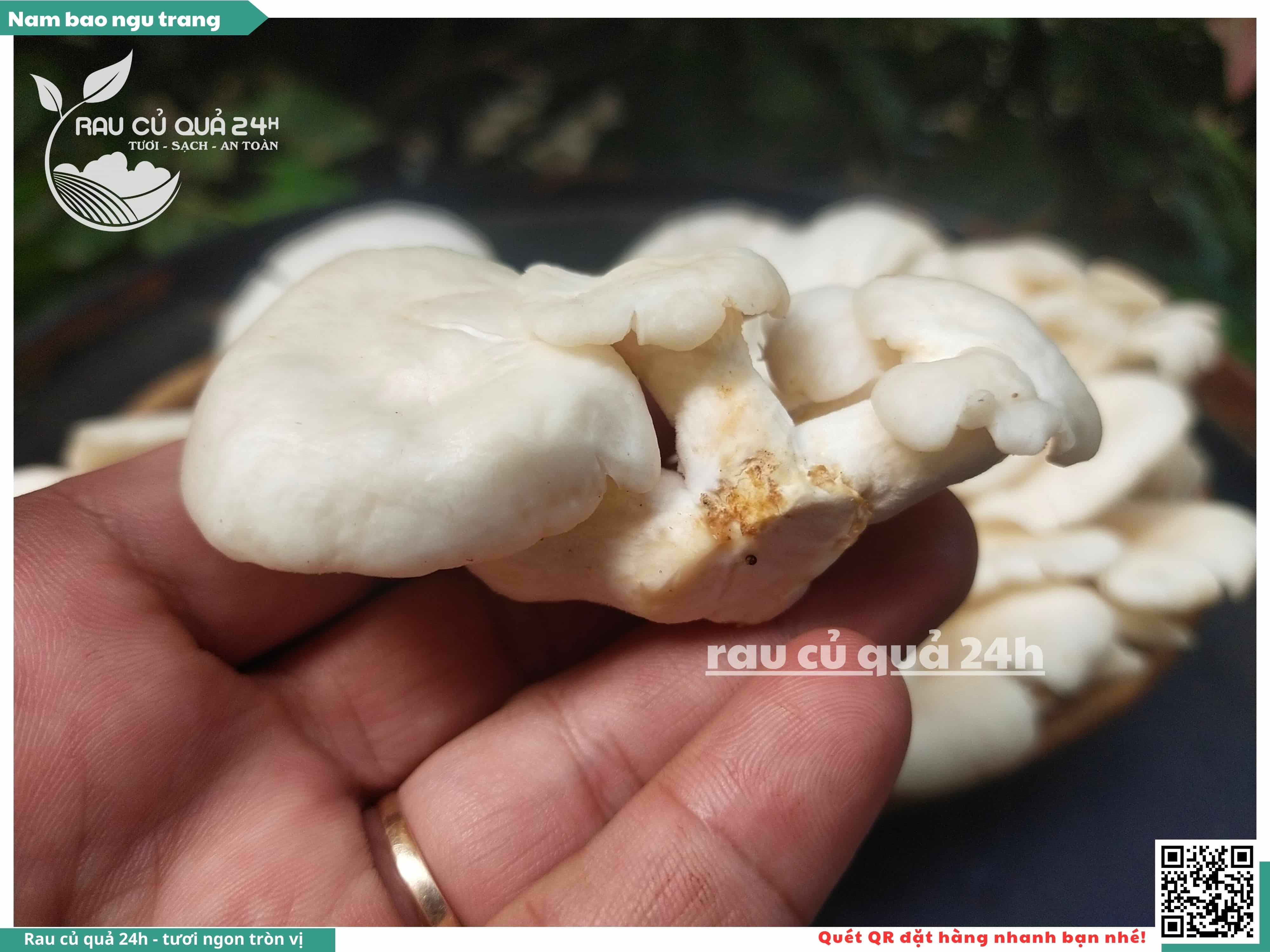 Nấm bào ngư có màu trắng hoặc xám, có hình phễu, có vị ngọt và giòn. Nấm bào ngư có thể được chế biến thành nhiều món ăn ngon và bổ dưỡng, chẳng hạn như canh nấm bào ngư, nấm bào ngư xào thịt, nấm bào ngư xào rau củ,...