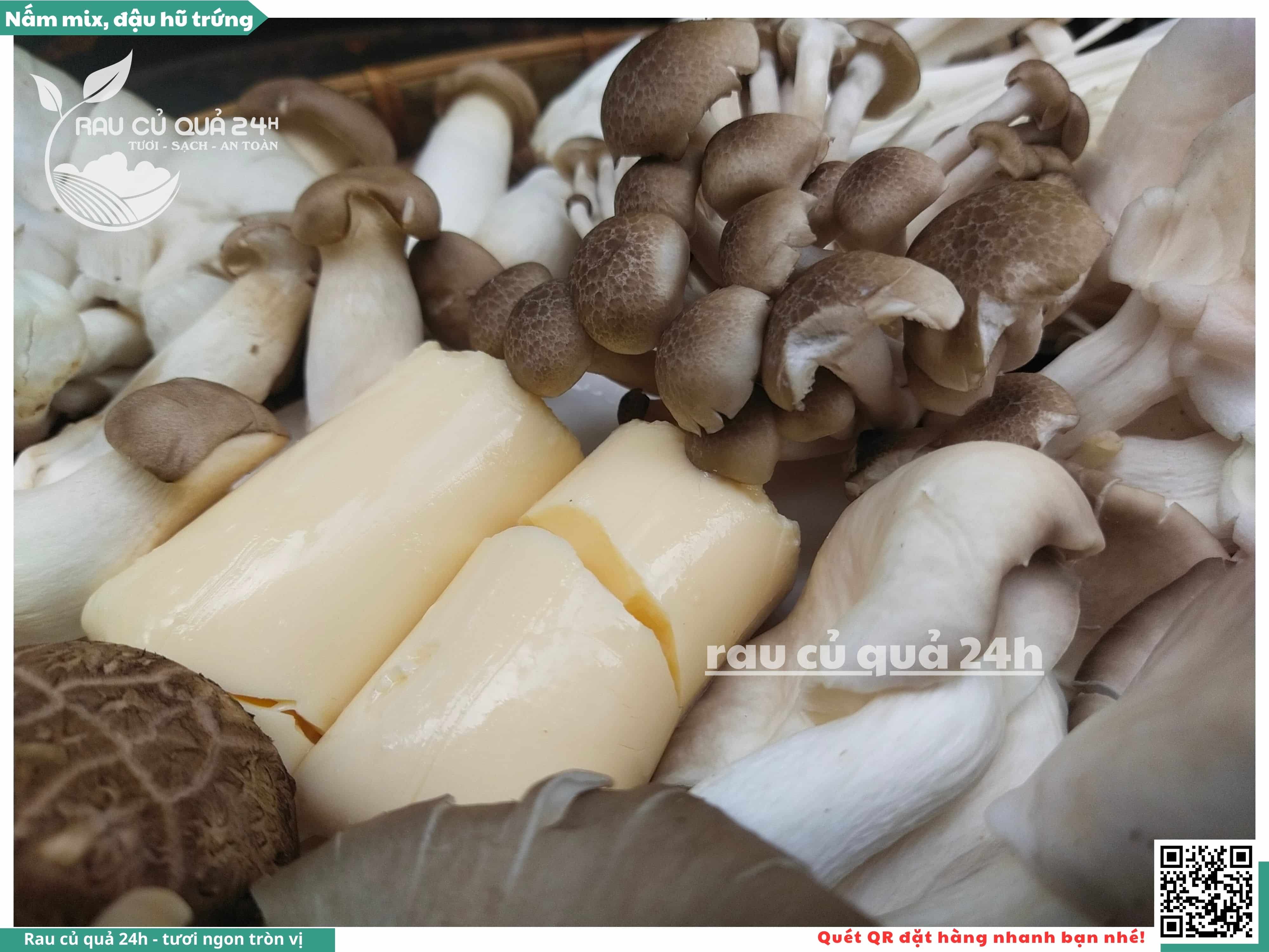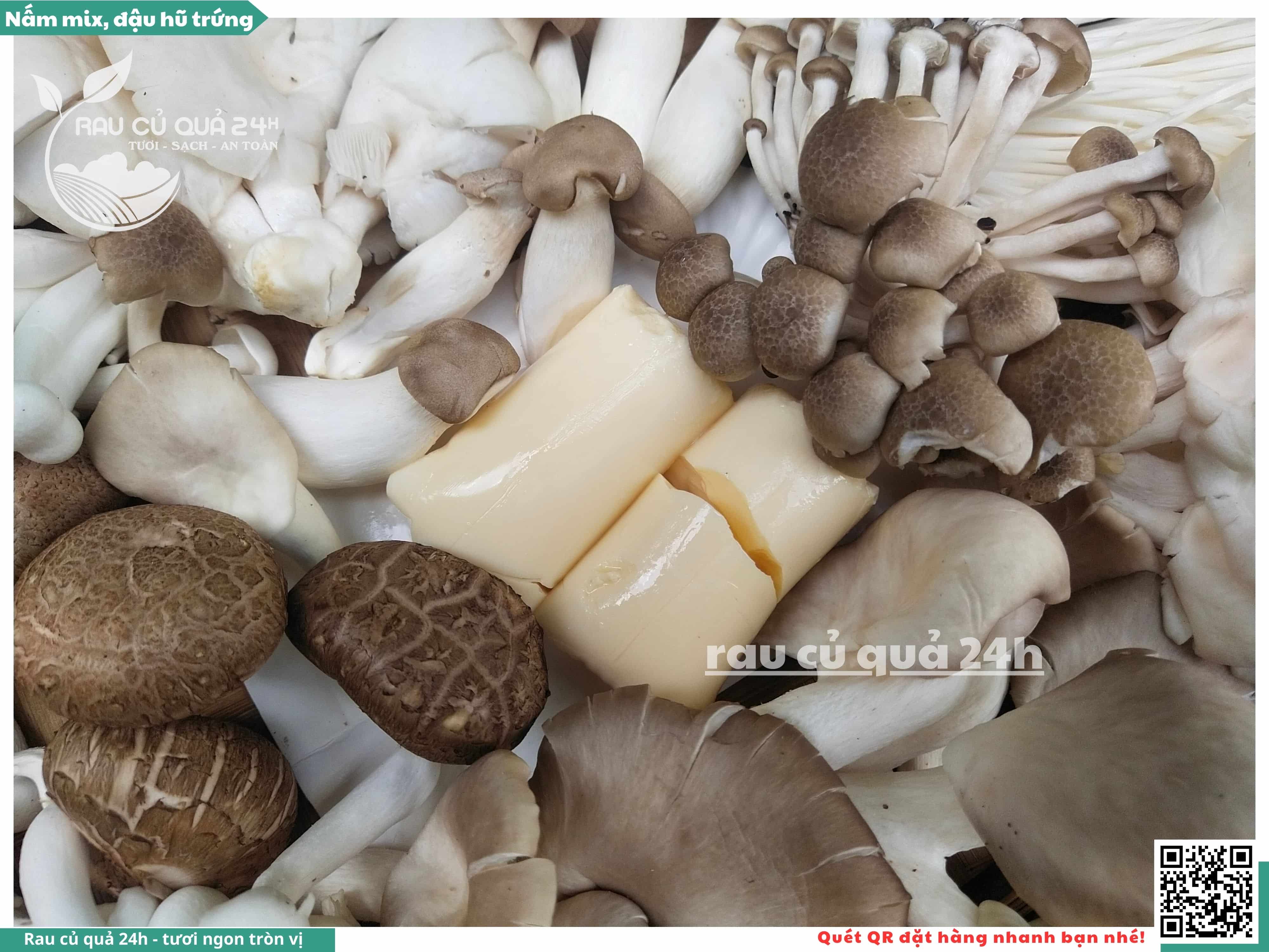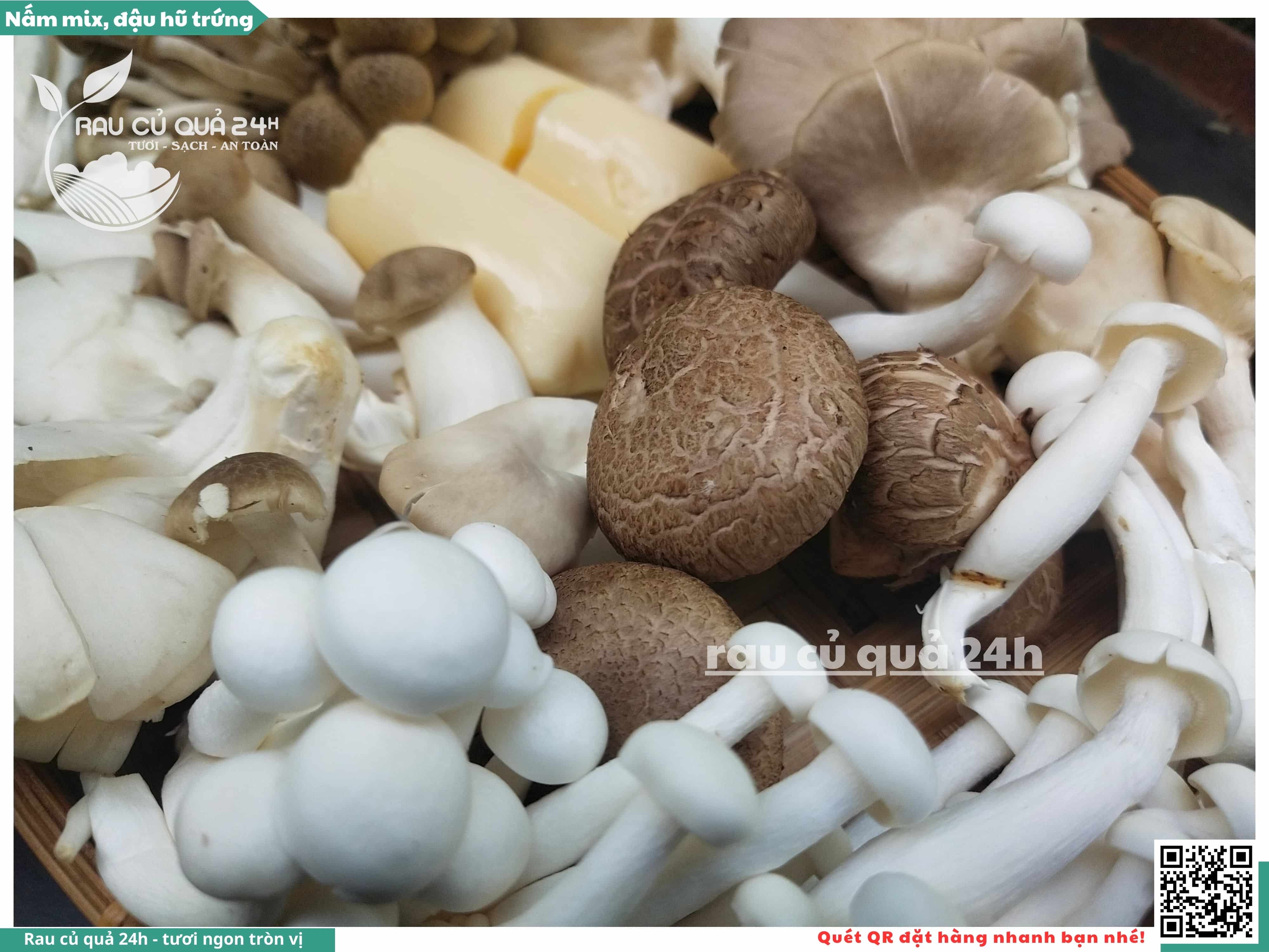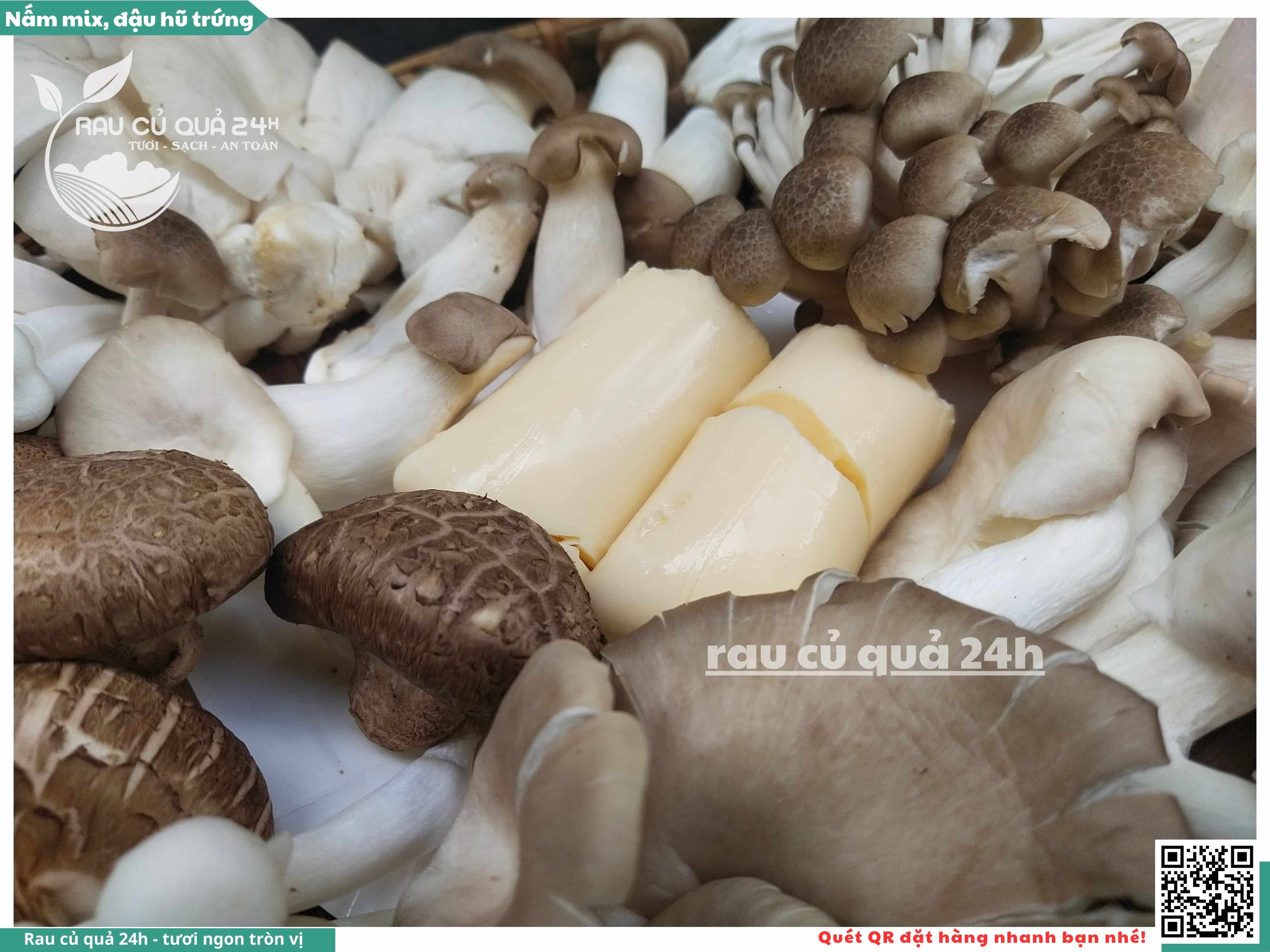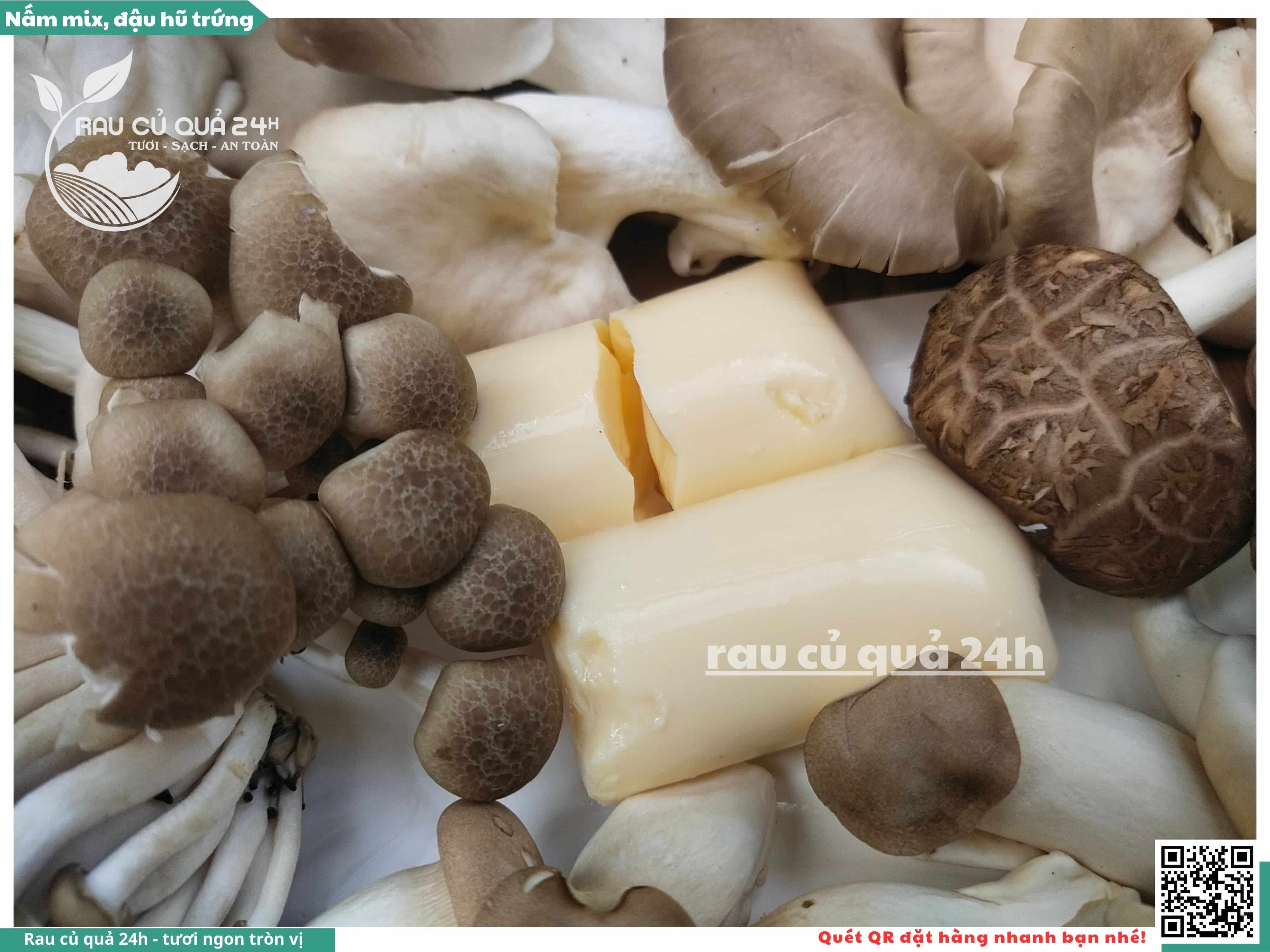 Ngoài ra, nấm mix có thể được bổ sung thêm đậu hũ trứng, đậu hũ non, ...