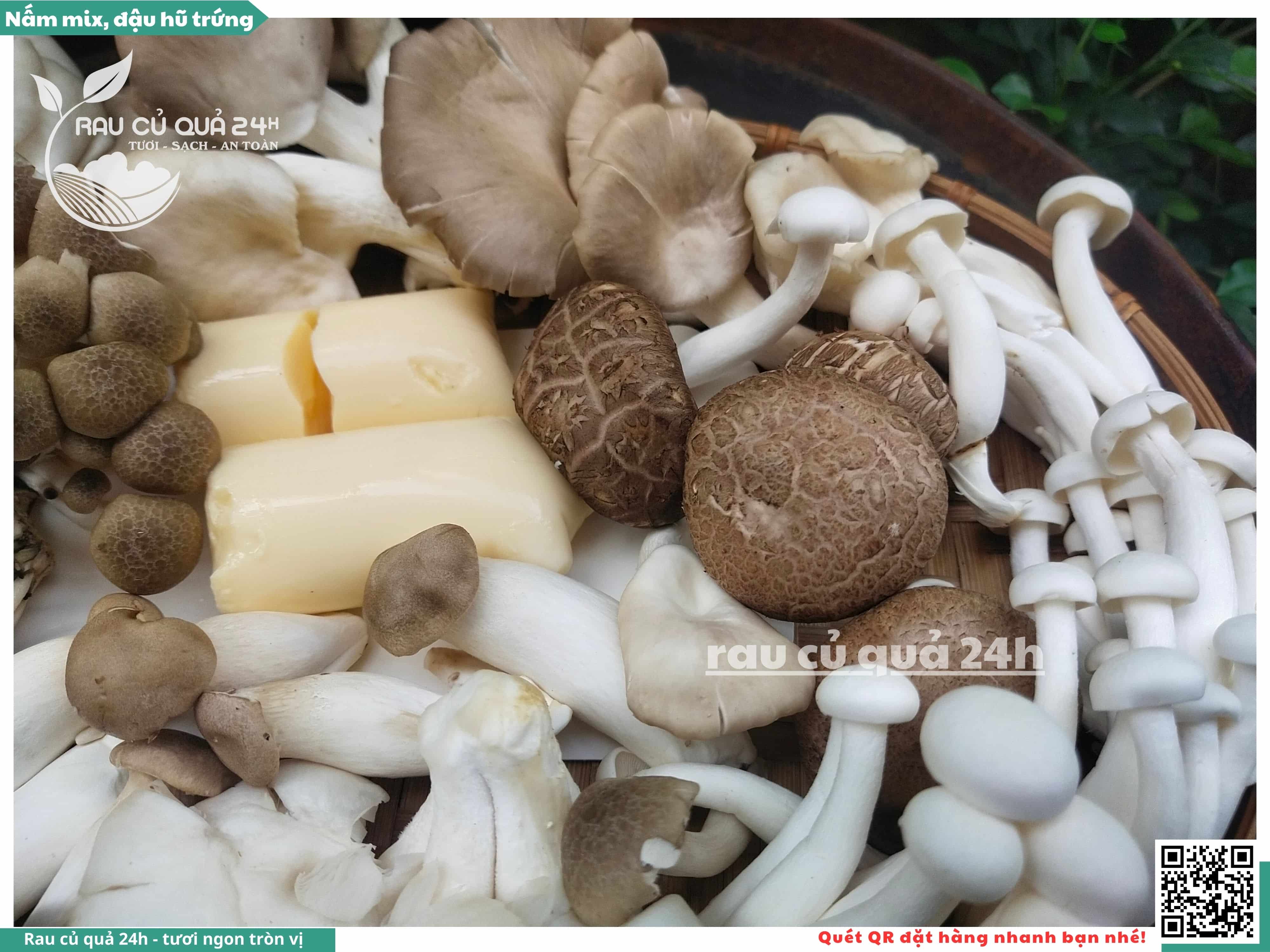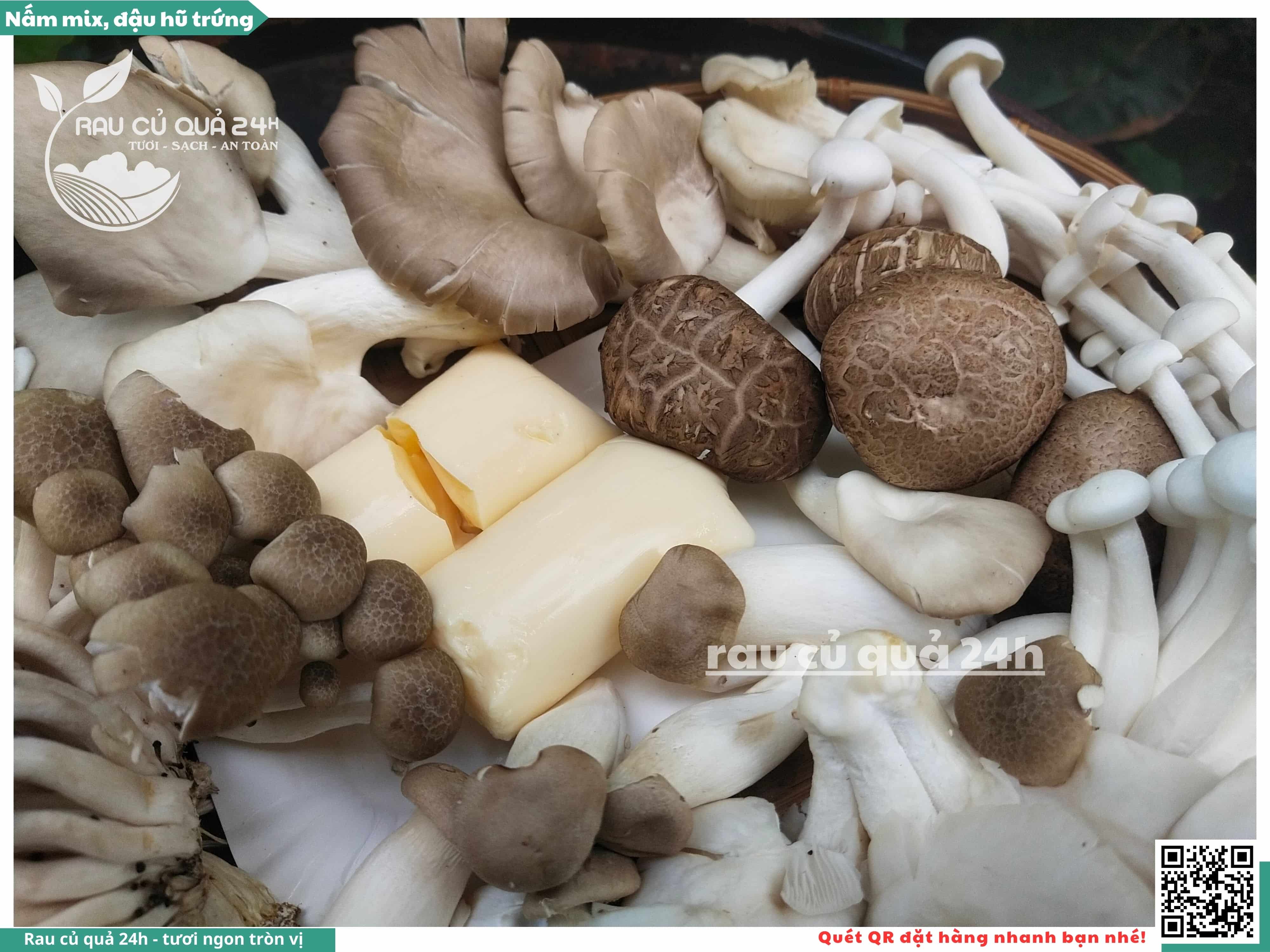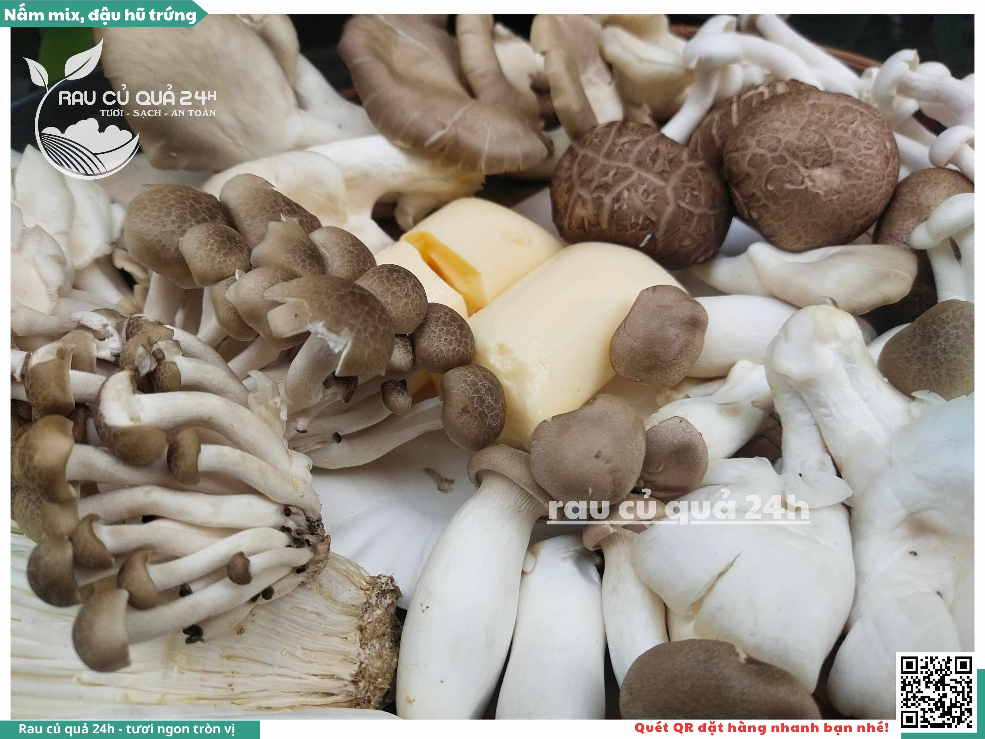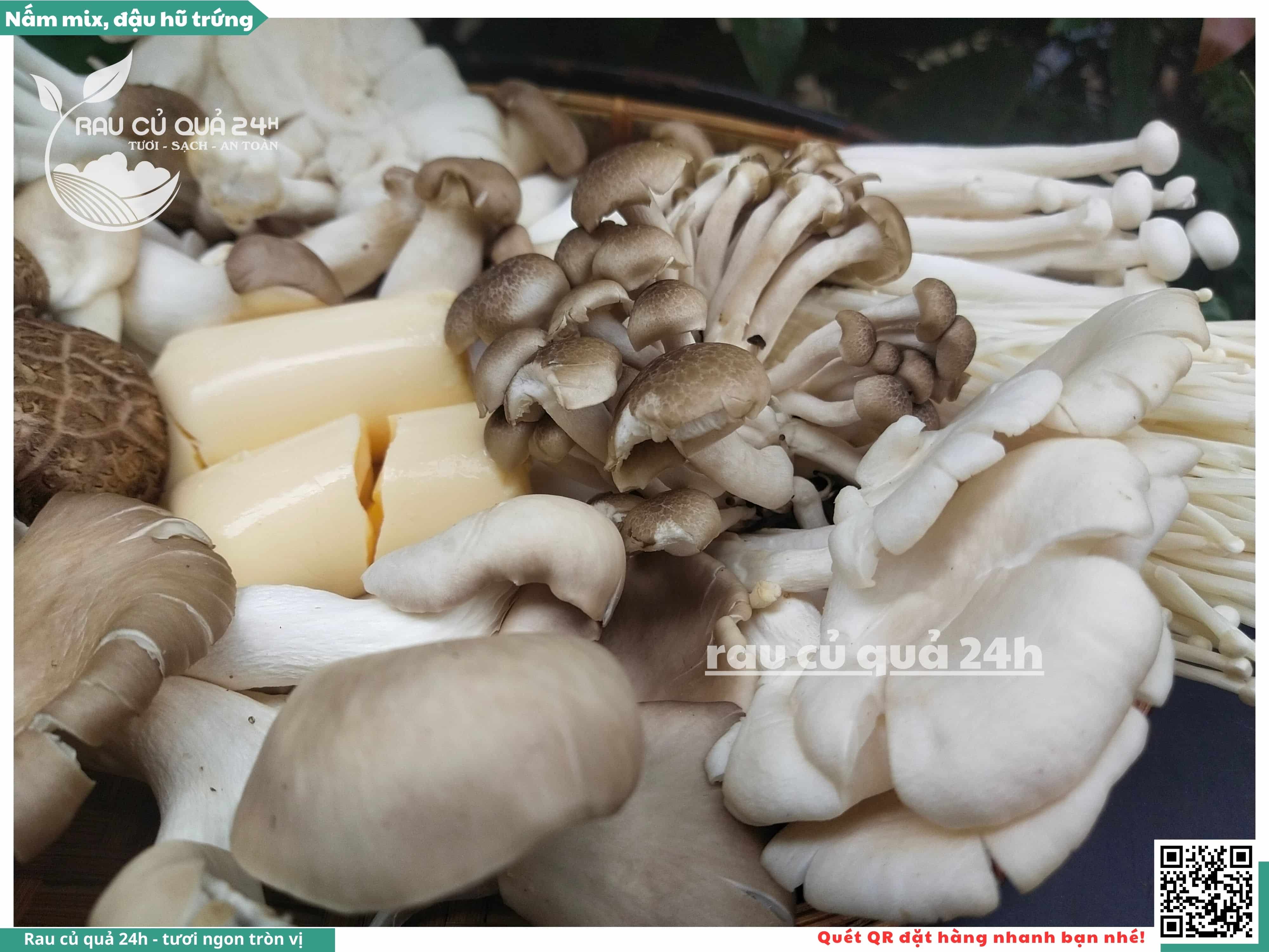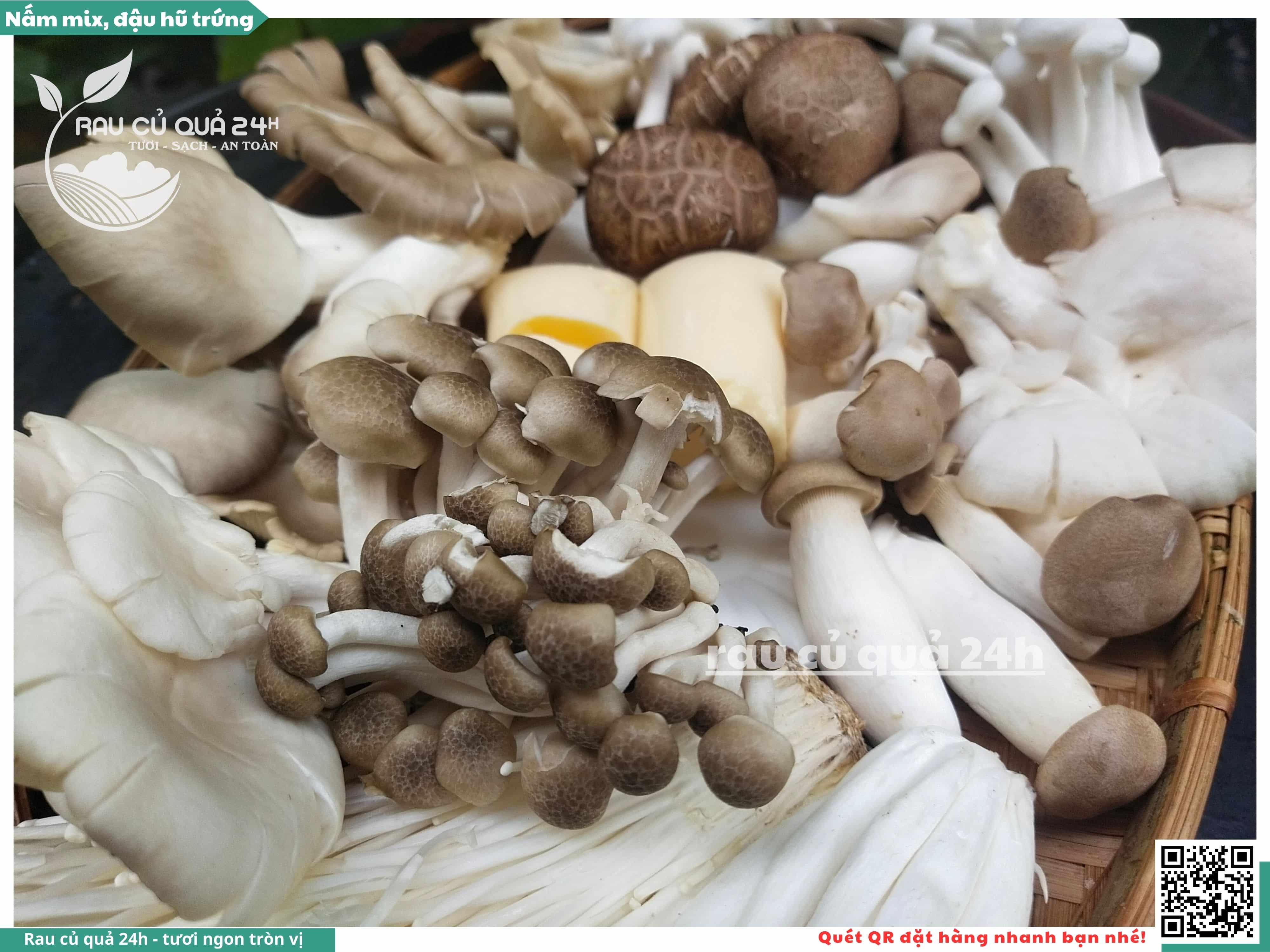 Ngoài ra, nấm mix có thể được bổ sung thêm đậu hũ trứng, đậu hũ non, ...