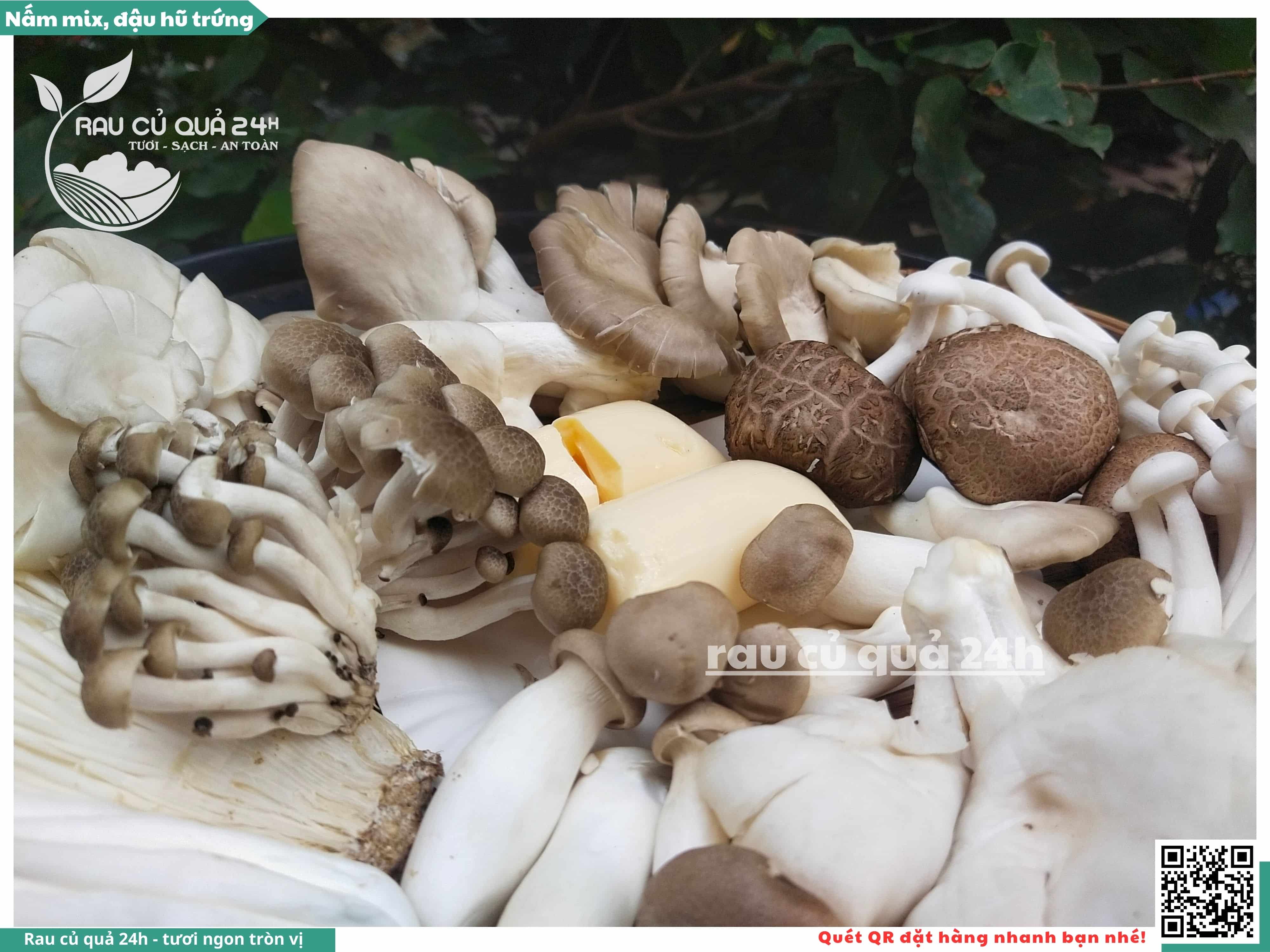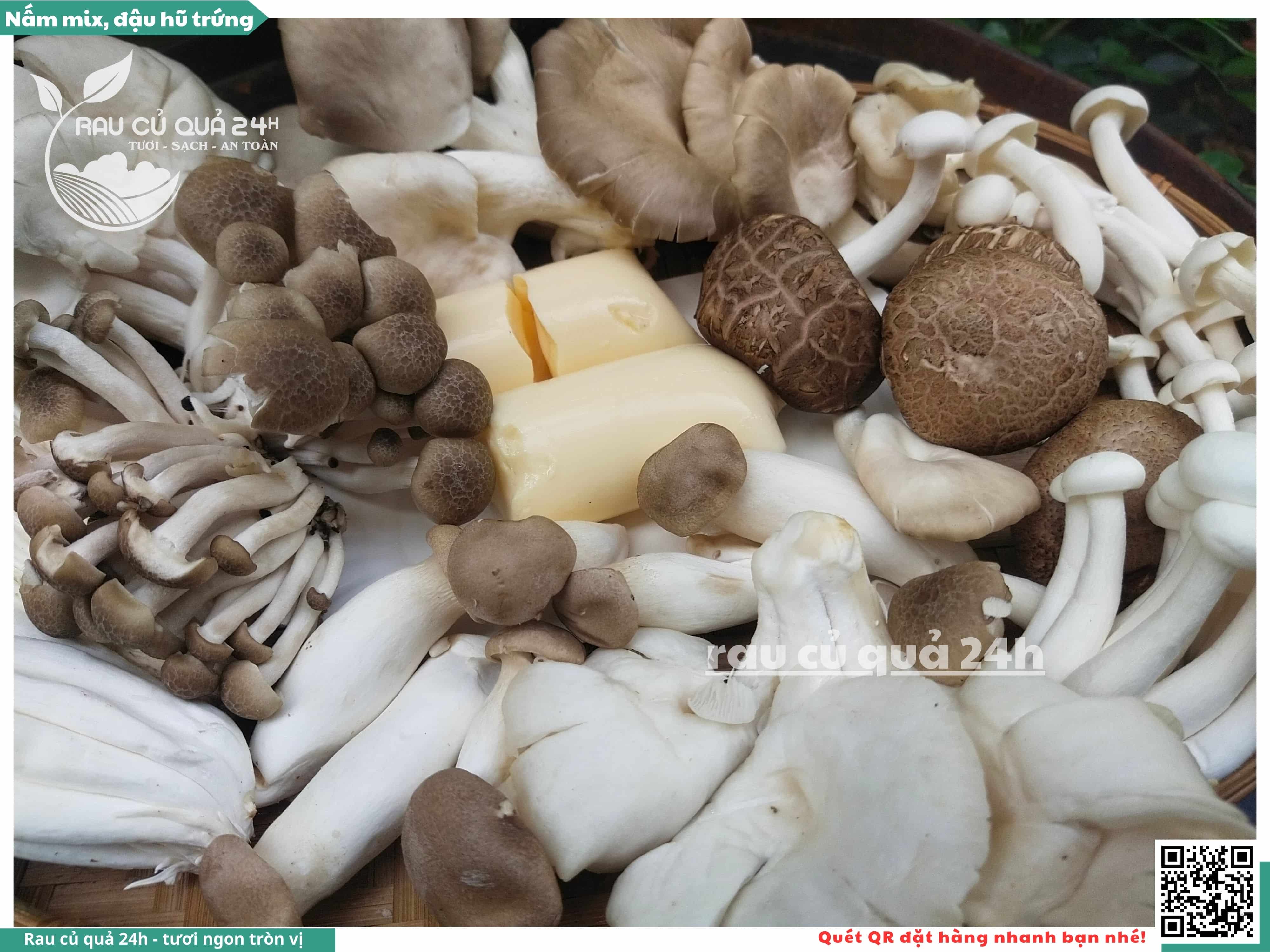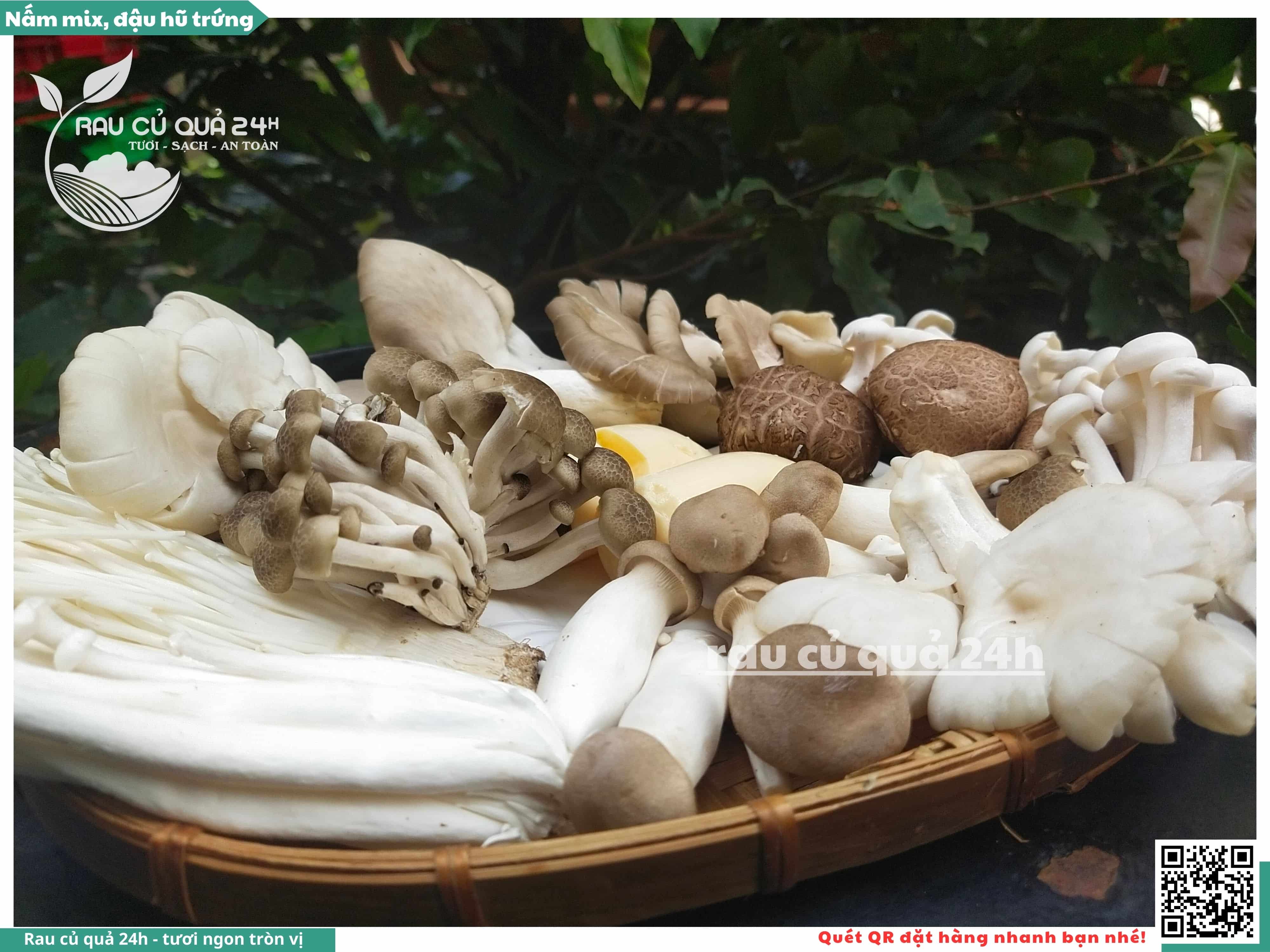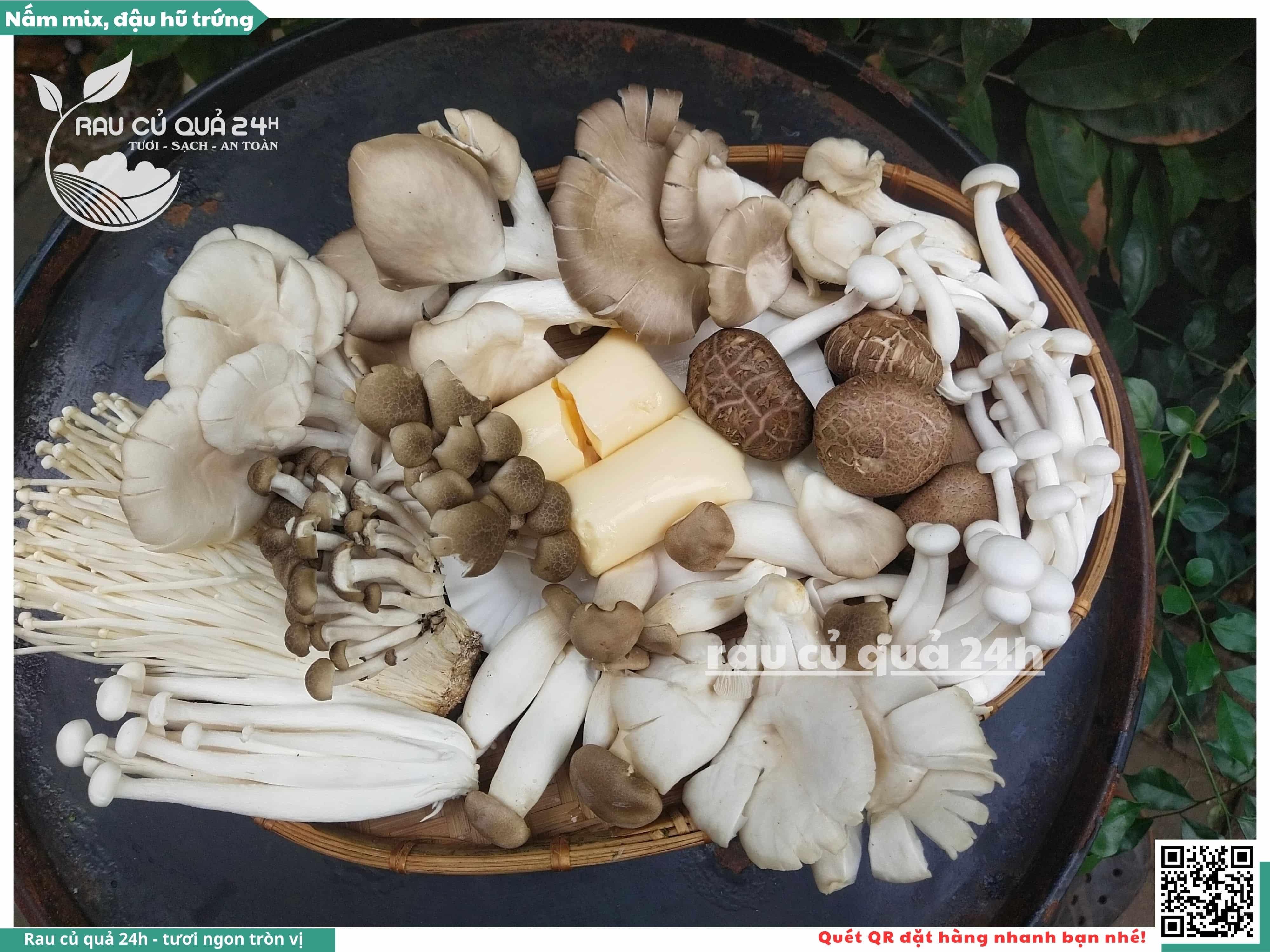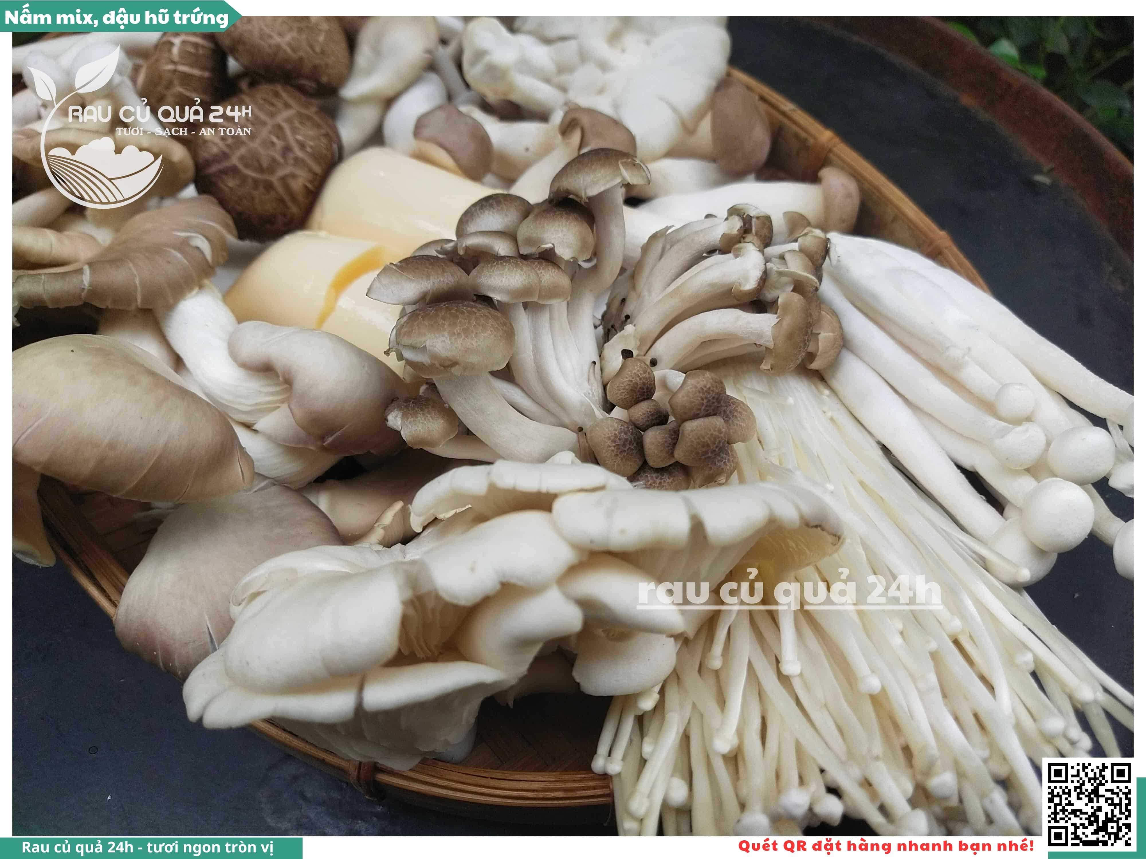 Bao gồm các loại nấm như nấm kim châm, nấm hương, nấm bào ngư, nấm đùi gà, nấm sò.