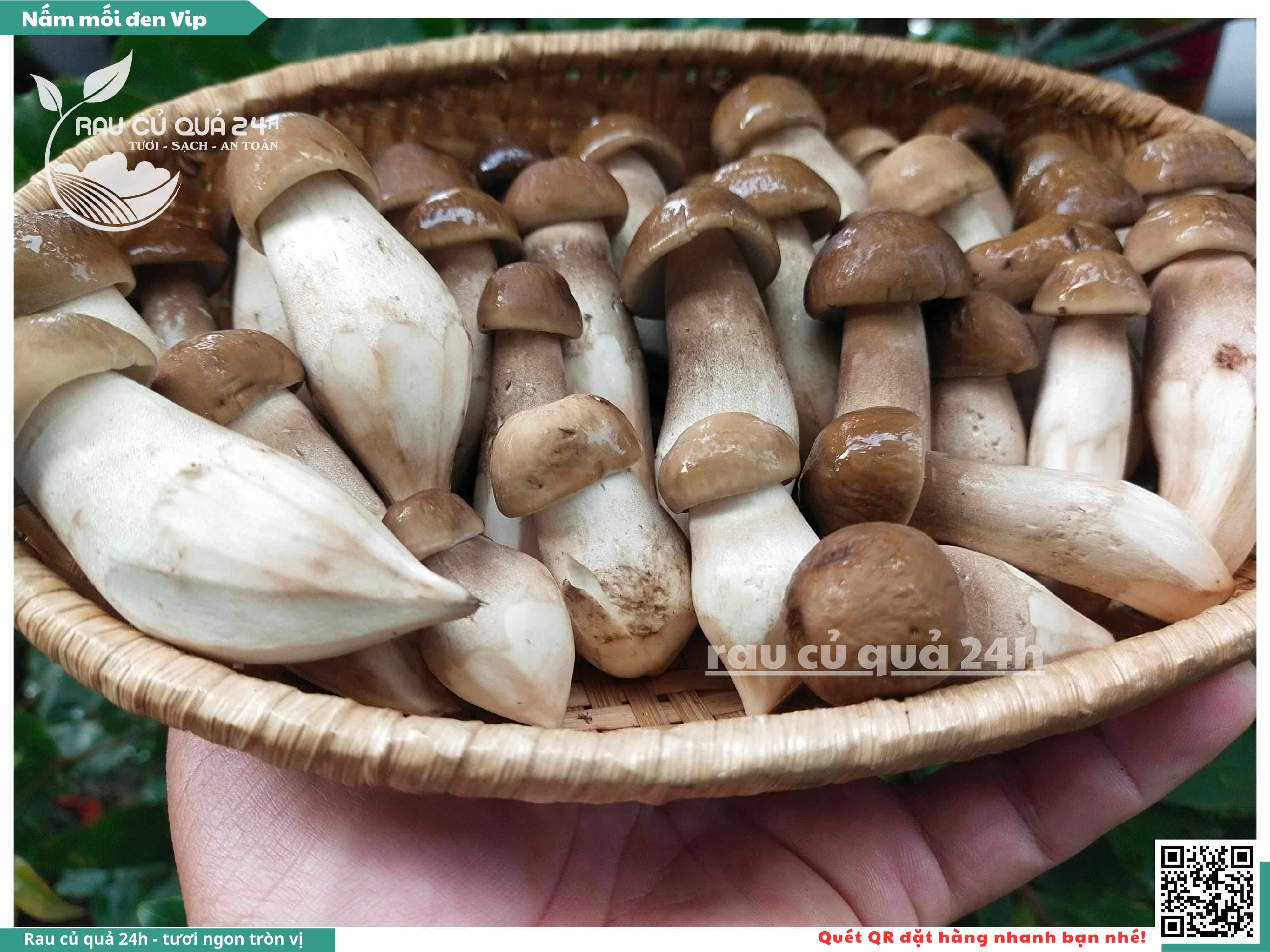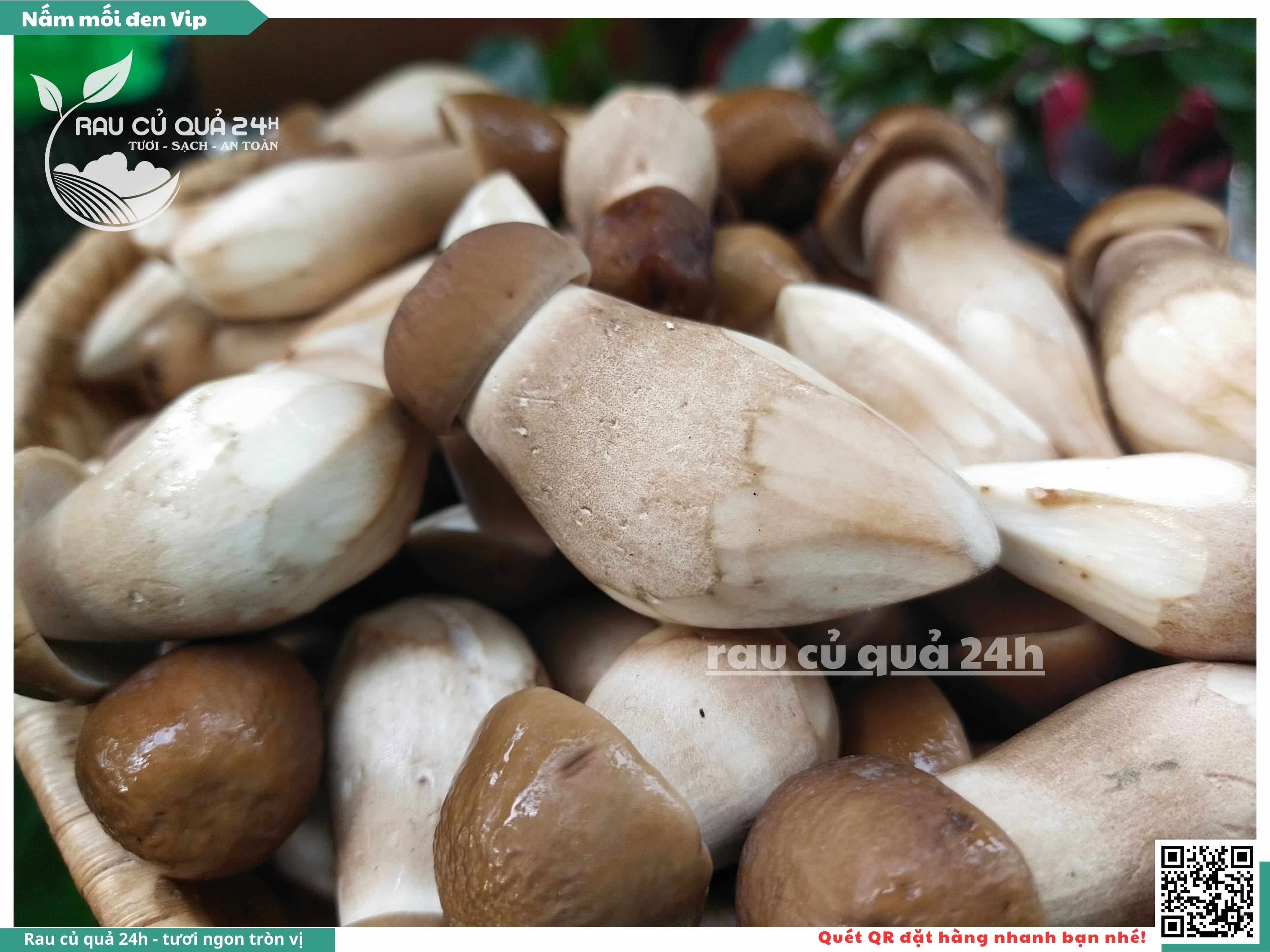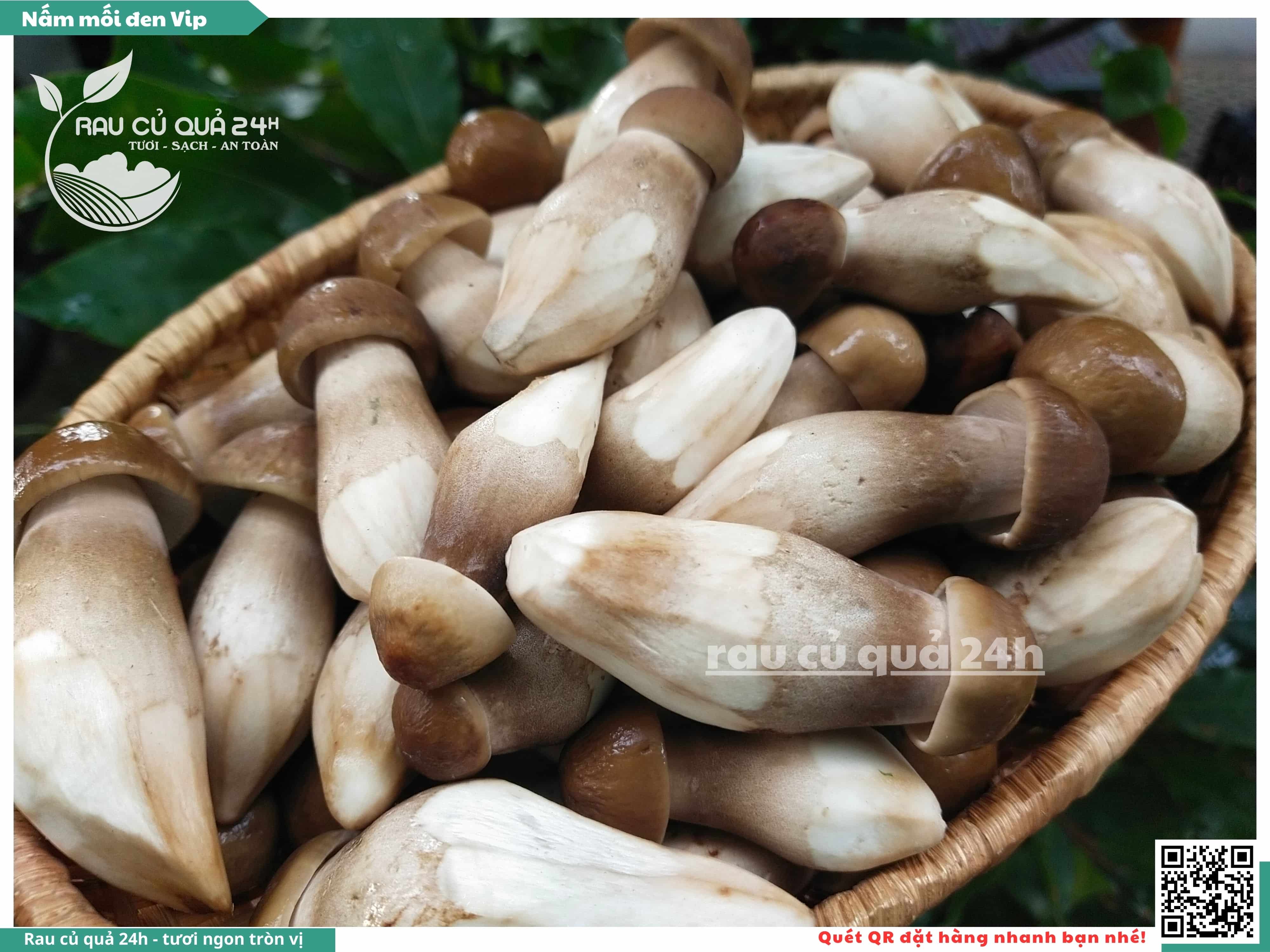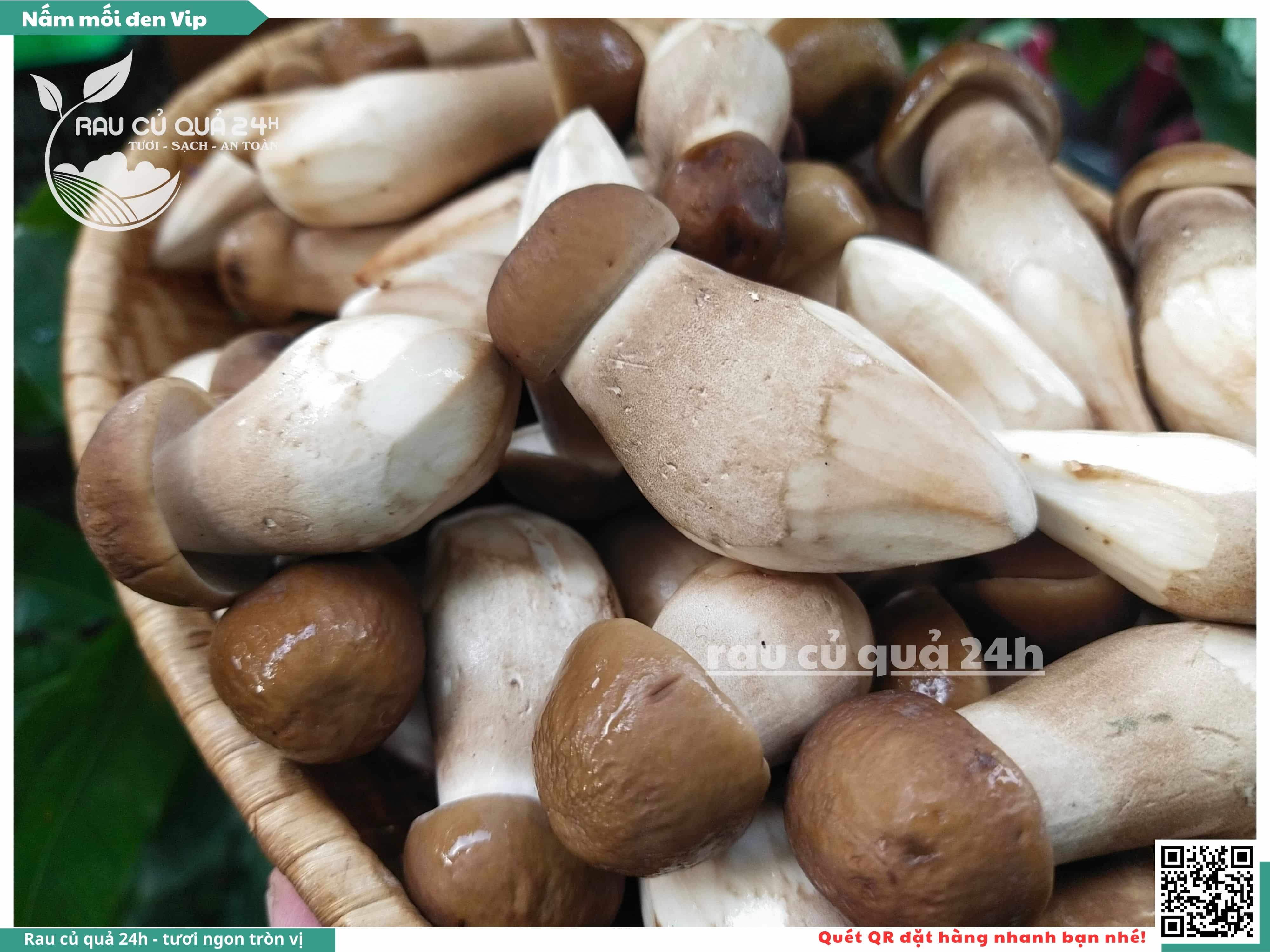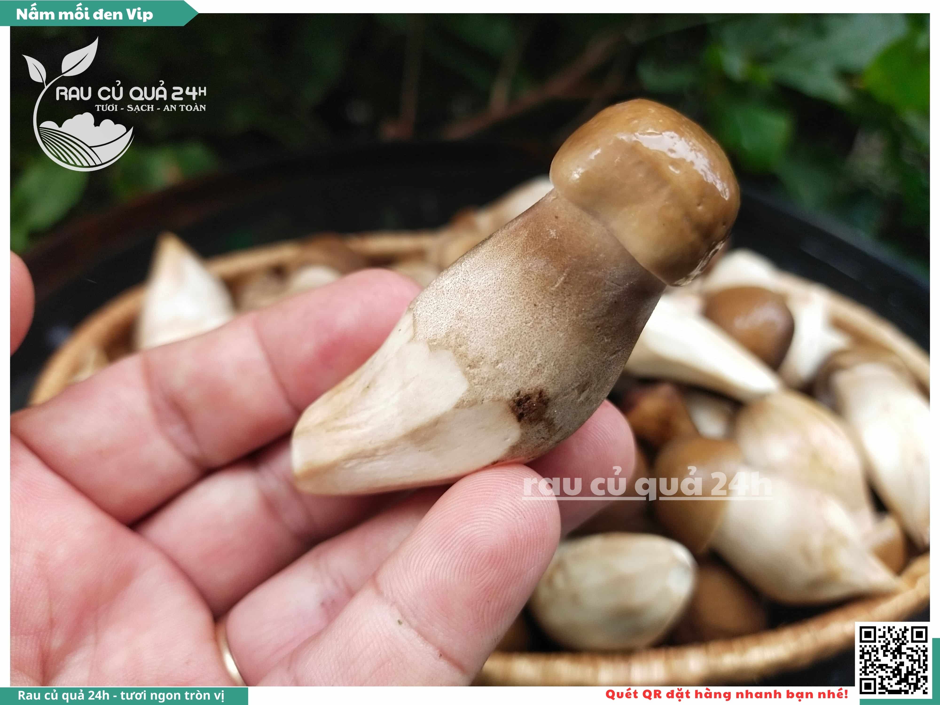 Nấm mối đen có hình dạng giống như những chiếc ô, với phần mũ nấm màu đen và phần thân nấm màu trắng. Nấm này có vị ngọt, thơm, và có hương vị đặc trưng. Nấm mối đen thường được sử dụng trong các món xào, súp, và salad.