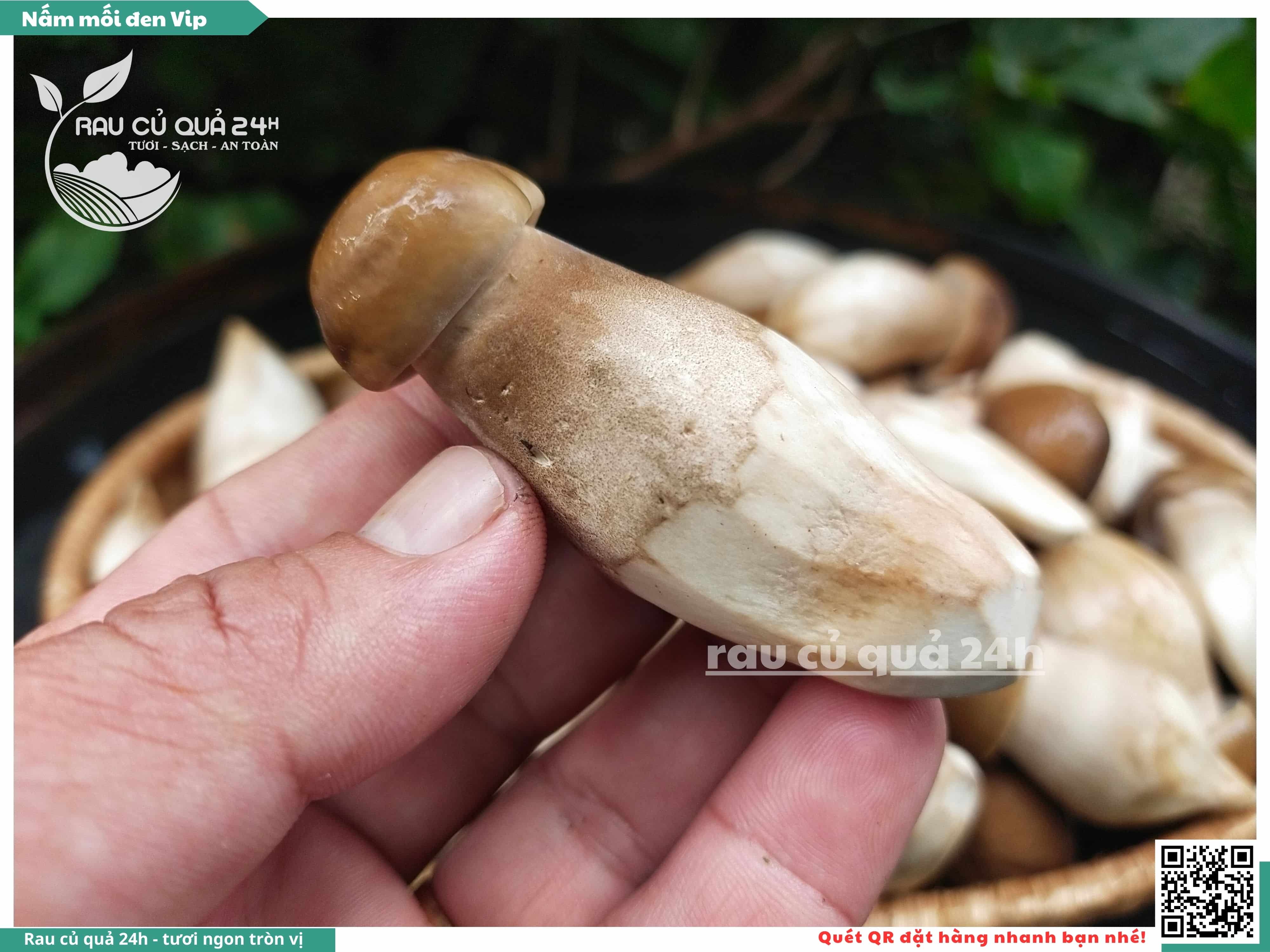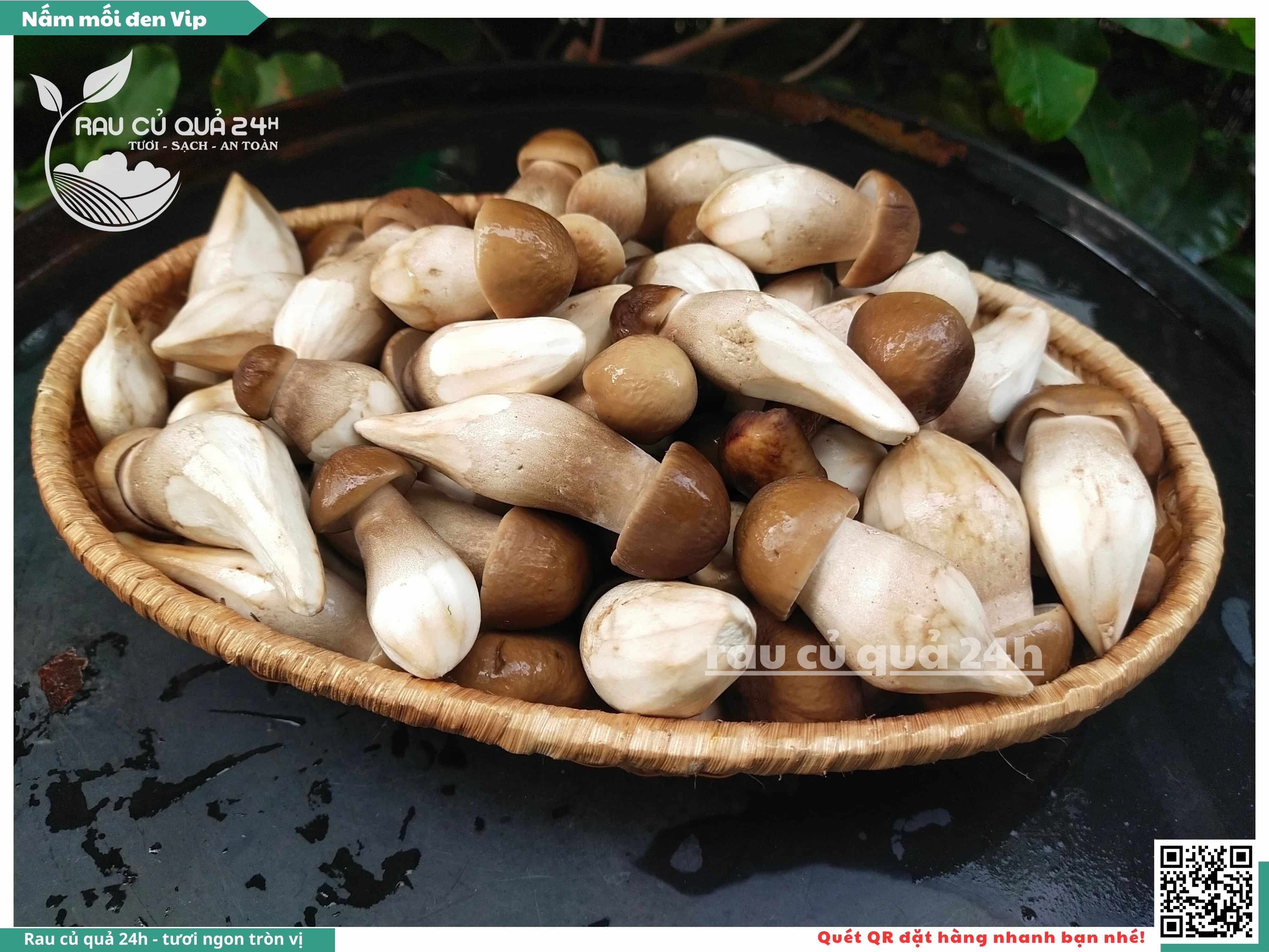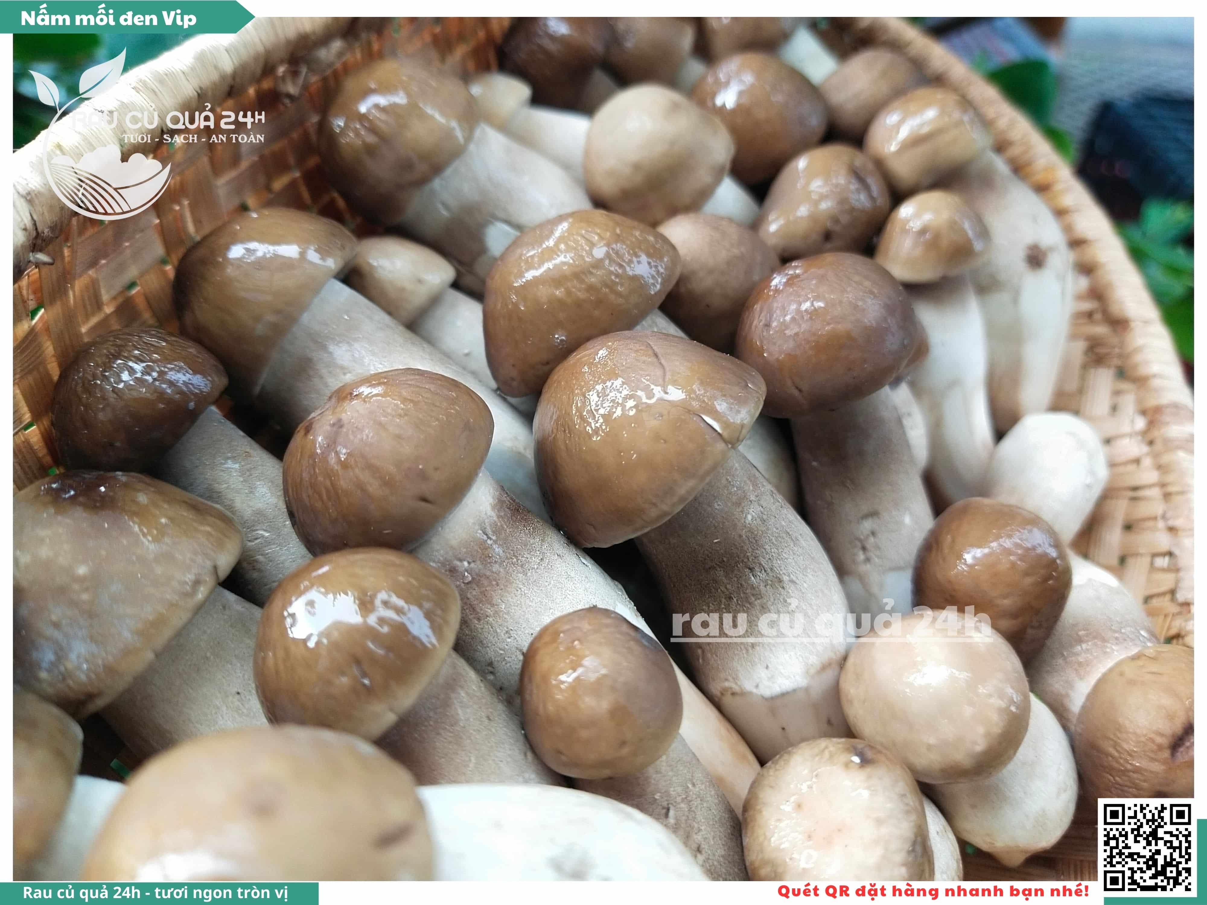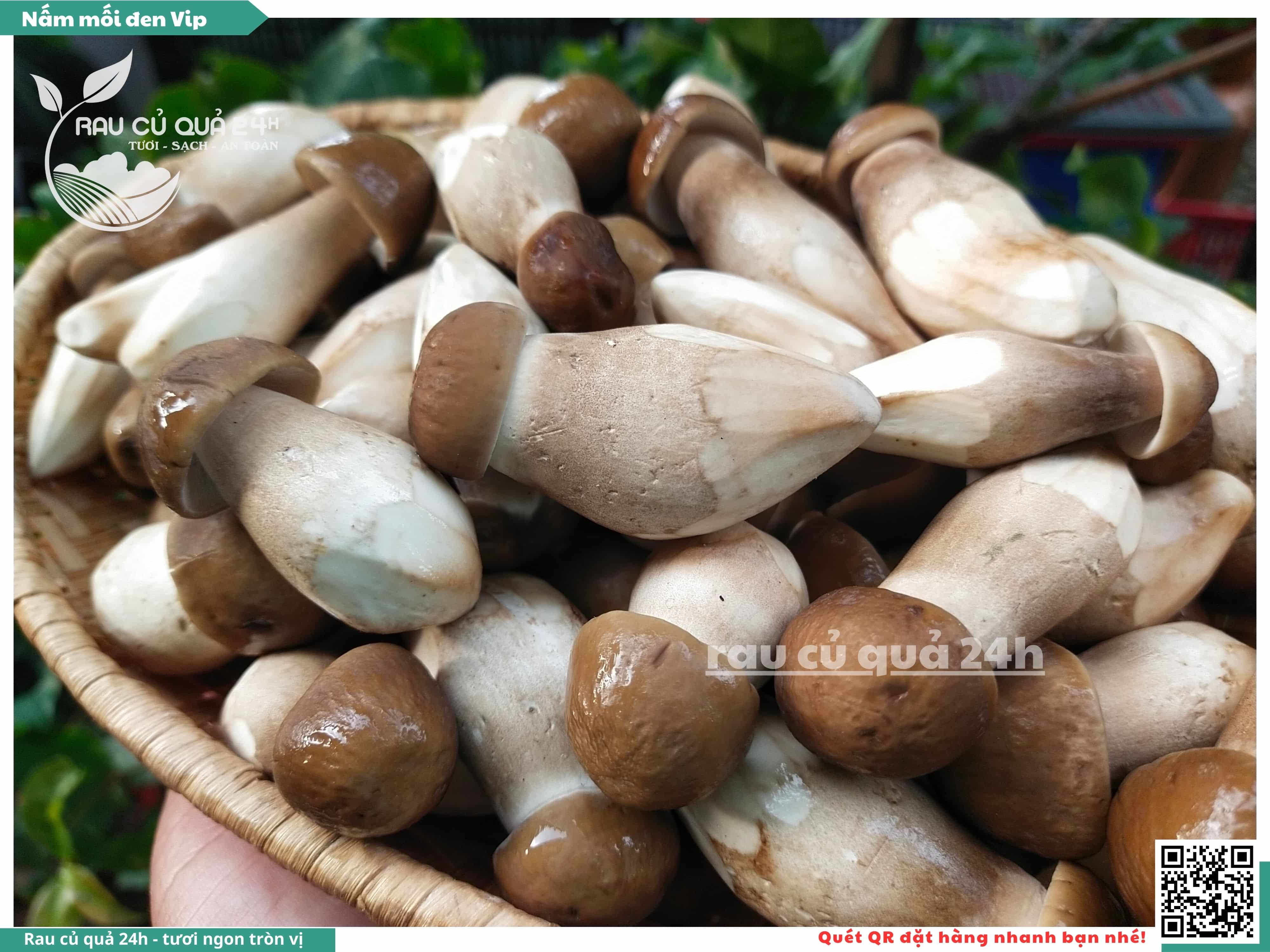 Nấm mối đen có hình dạng giống như những chiếc ô, với phần mũ nấm màu đen và phần thân nấm màu trắng. Nấm này có vị ngọt, thơm, và có hương vị đặc trưng. Nấm mối đen thường được sử dụng trong các món xào, súp, và salad.