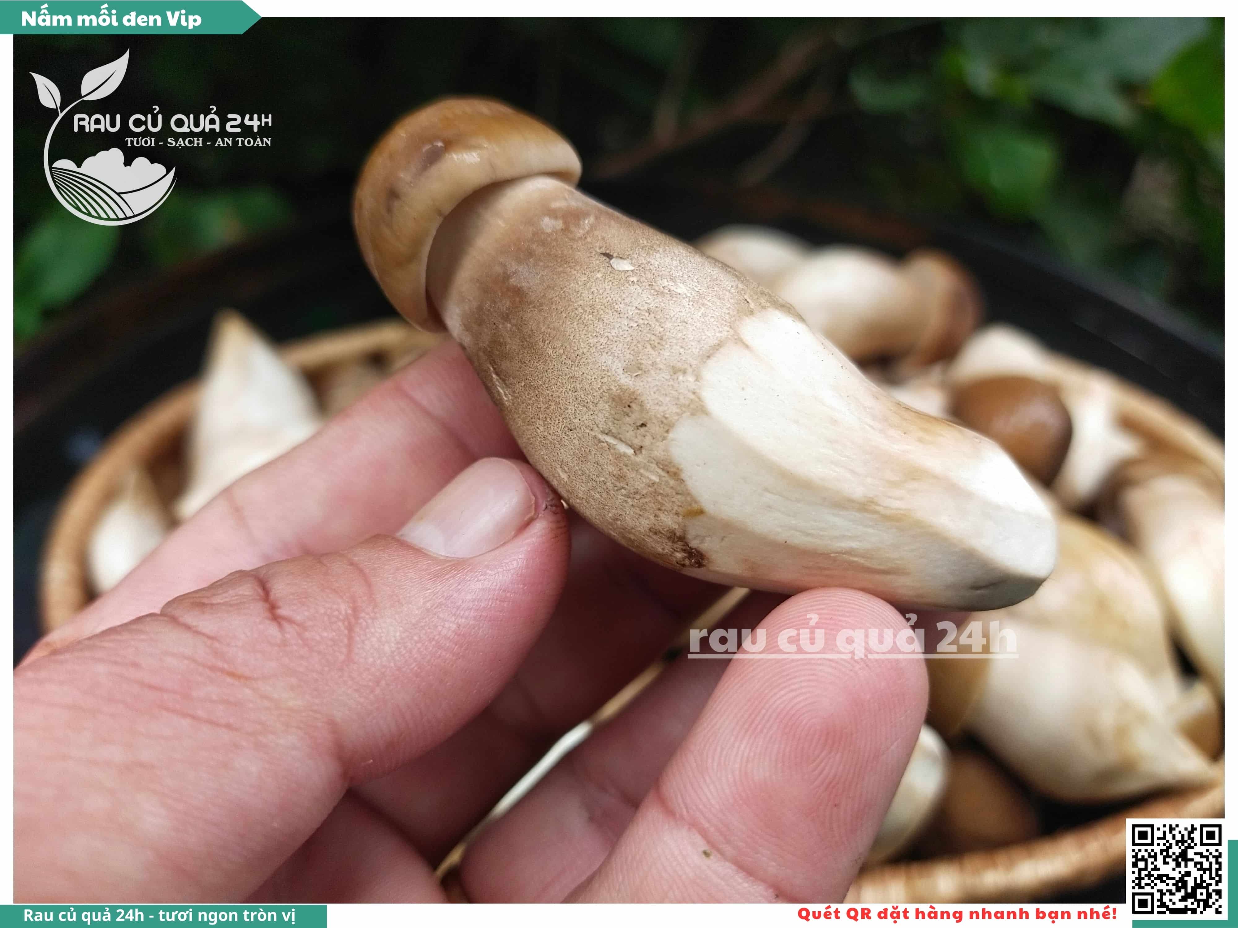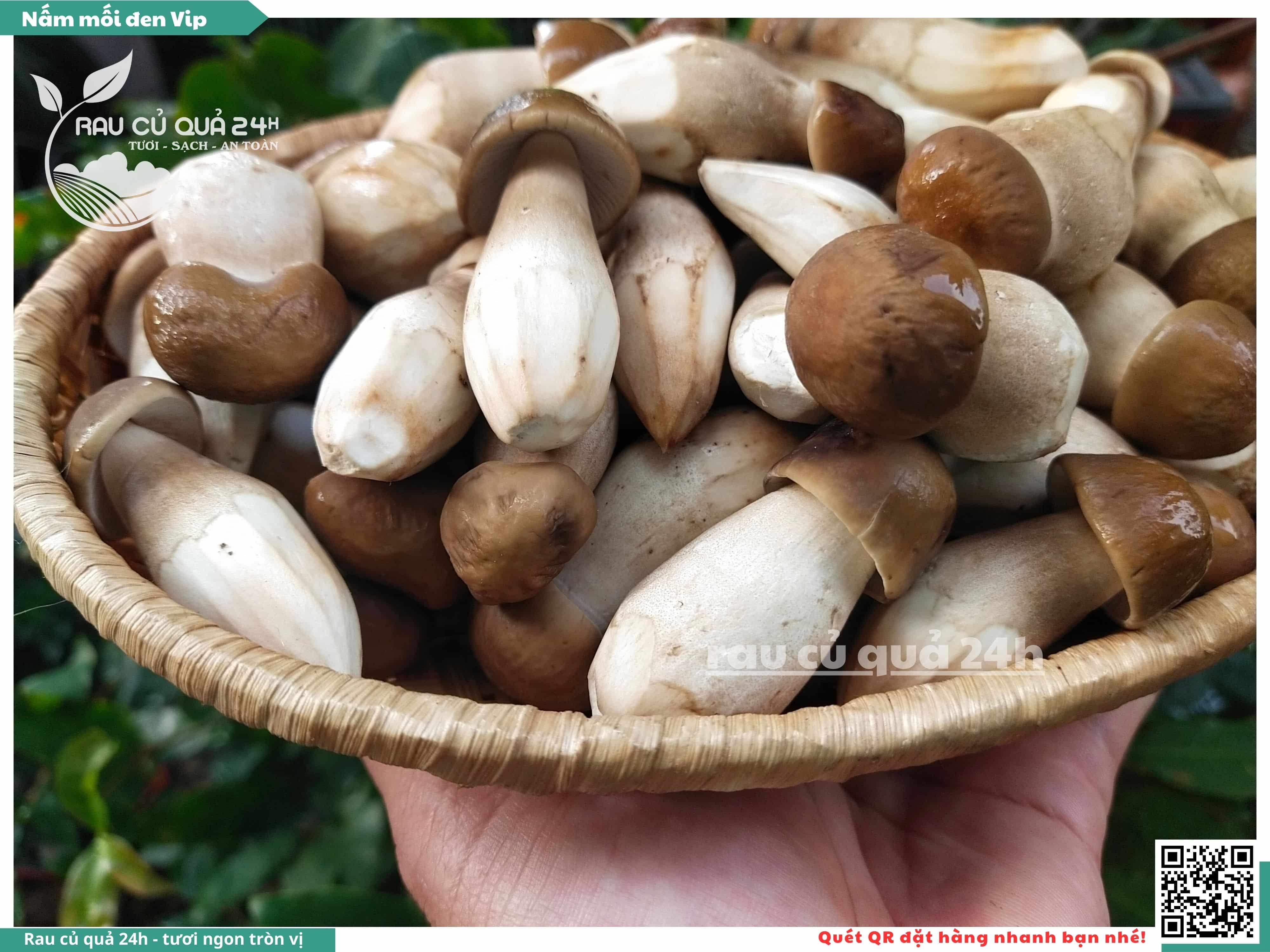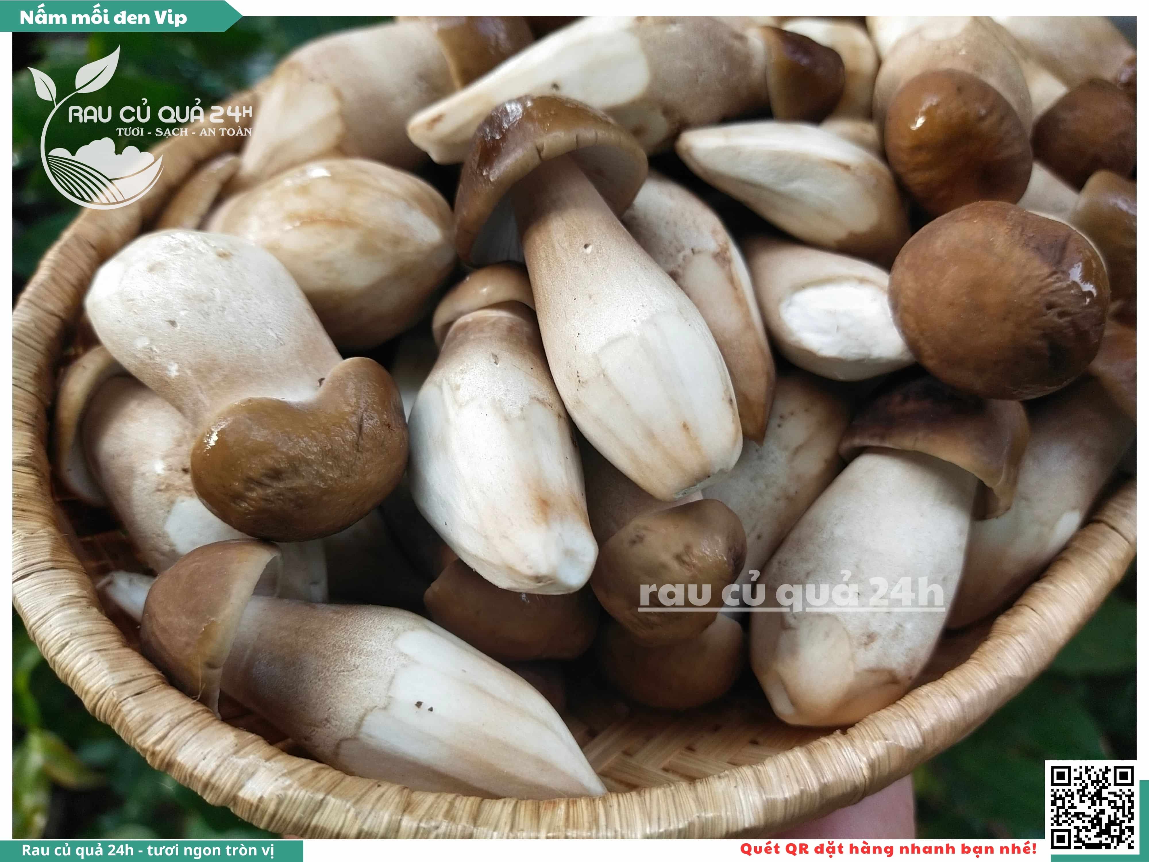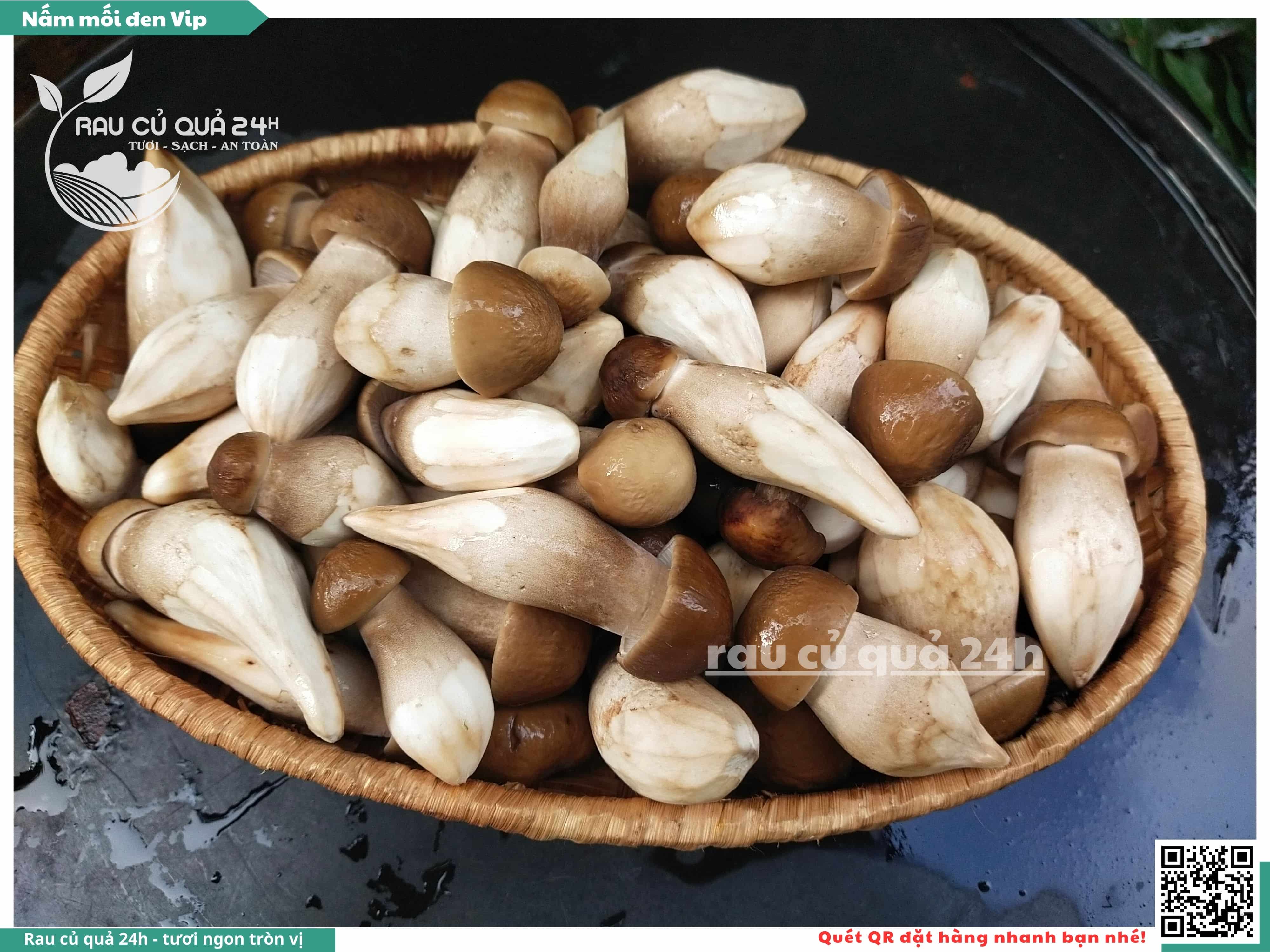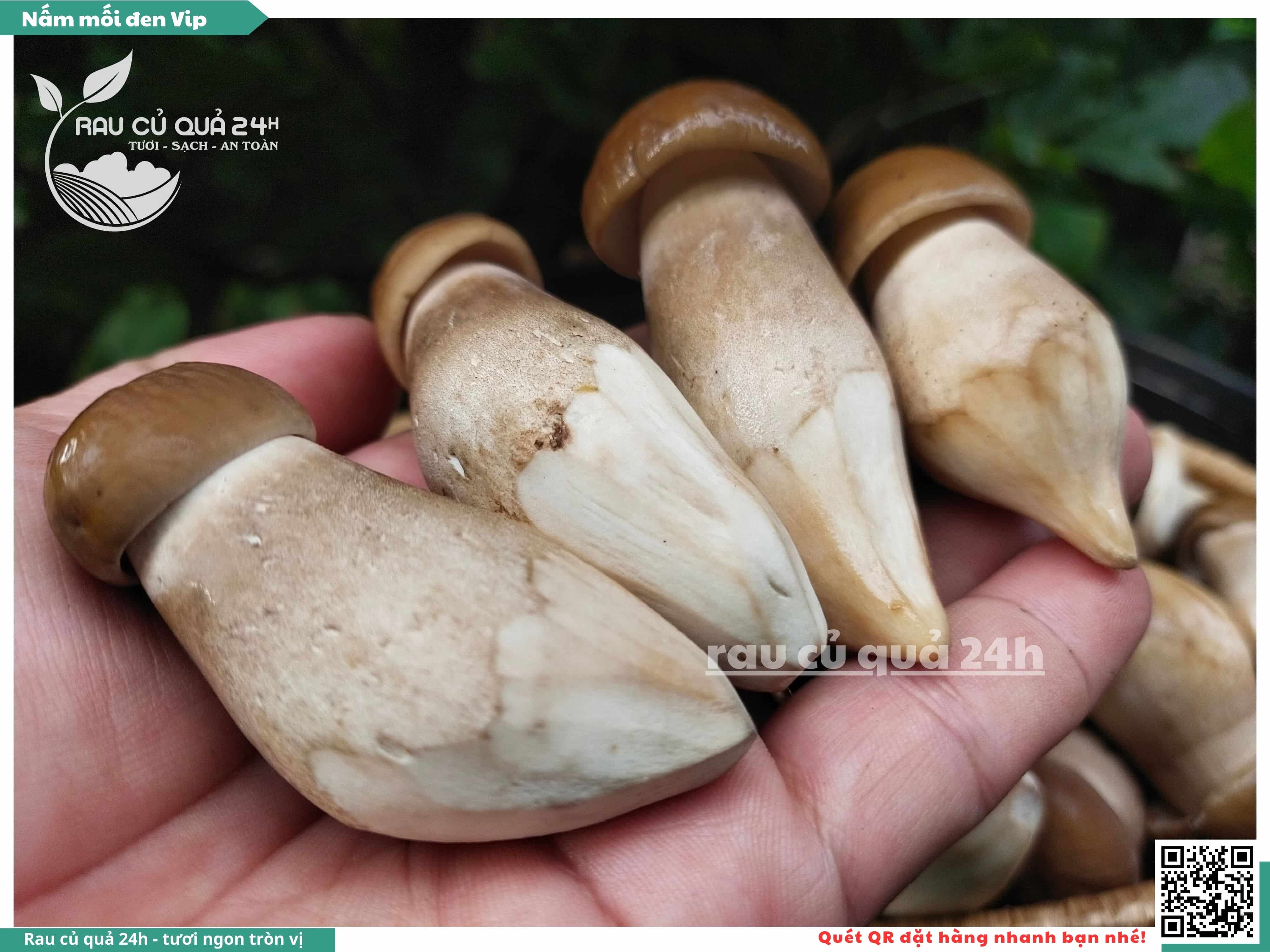 Nấm mối đen có hình dạng giống như những chiếc ô, với phần mũ nấm màu đen và phần thân nấm màu trắng. Nấm này có vị ngọt, thơm, và có hương vị đặc trưng. Nấm mối đen thường được sử dụng trong các món xào, súp, và salad.