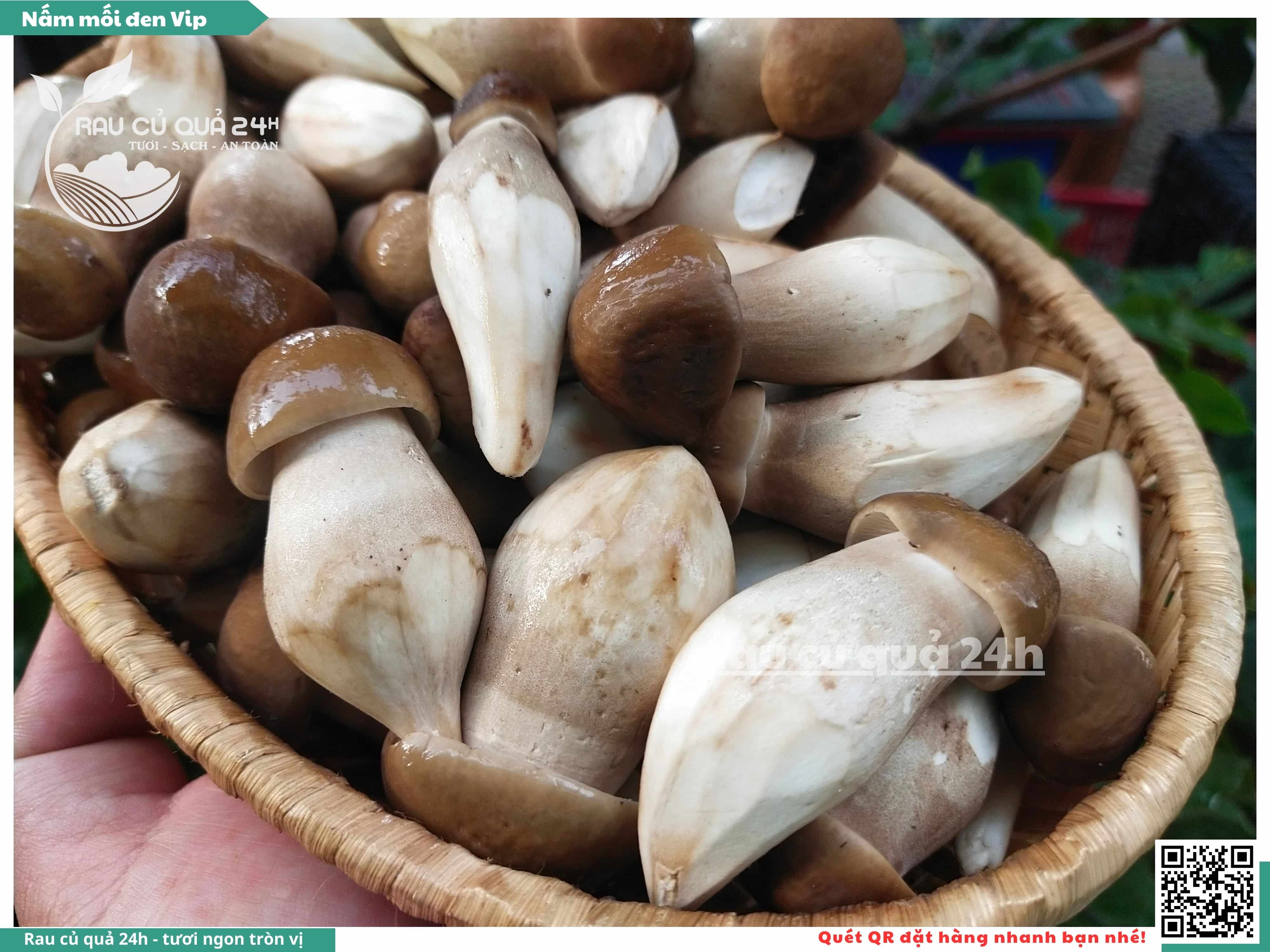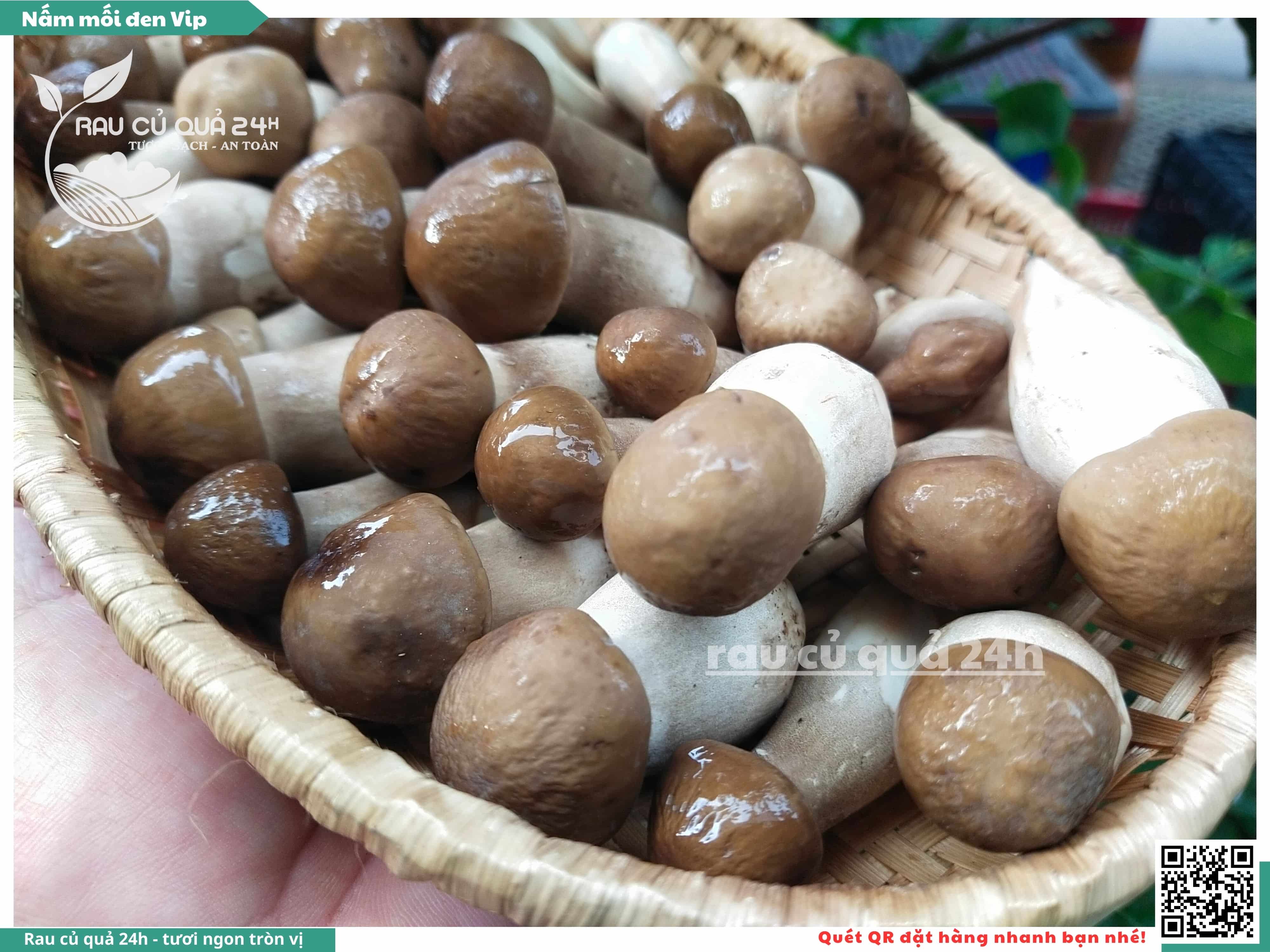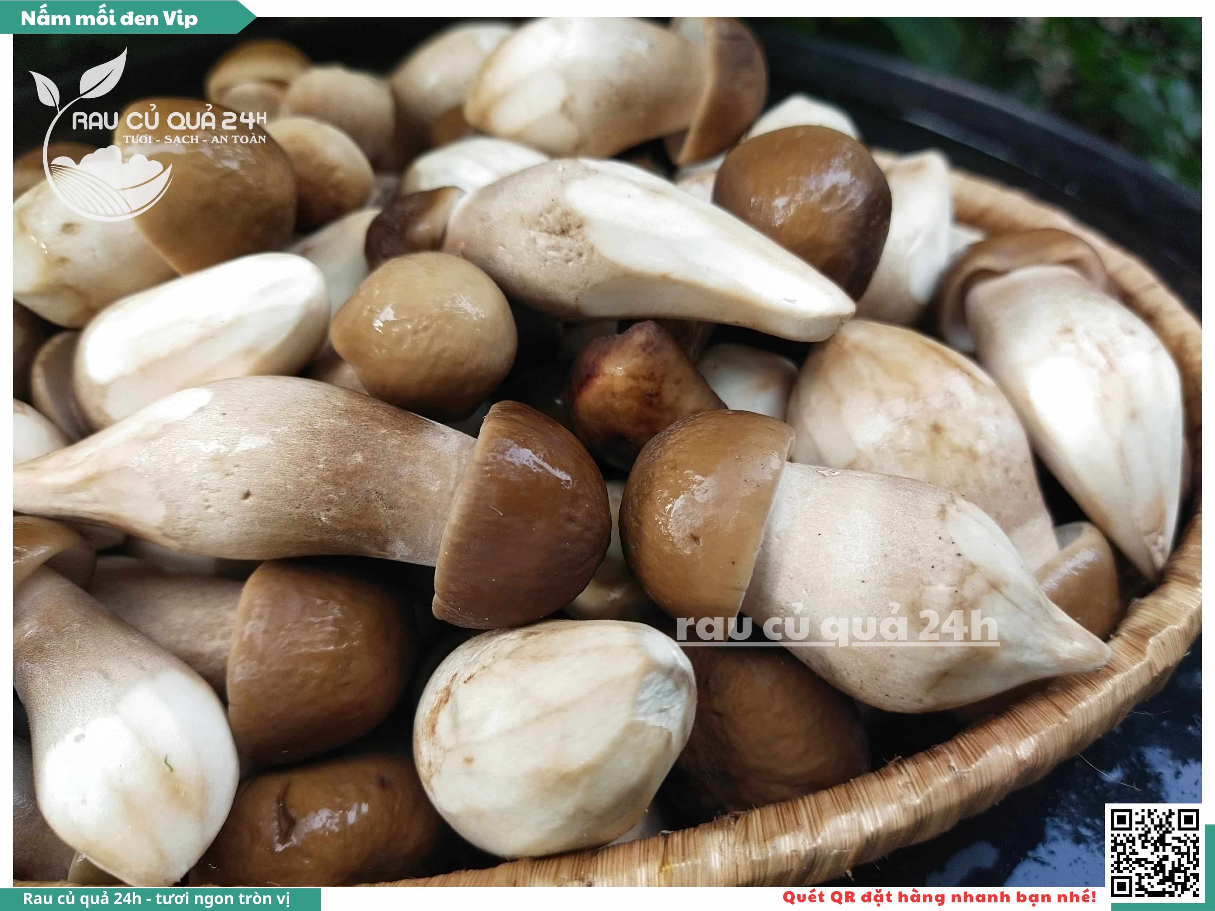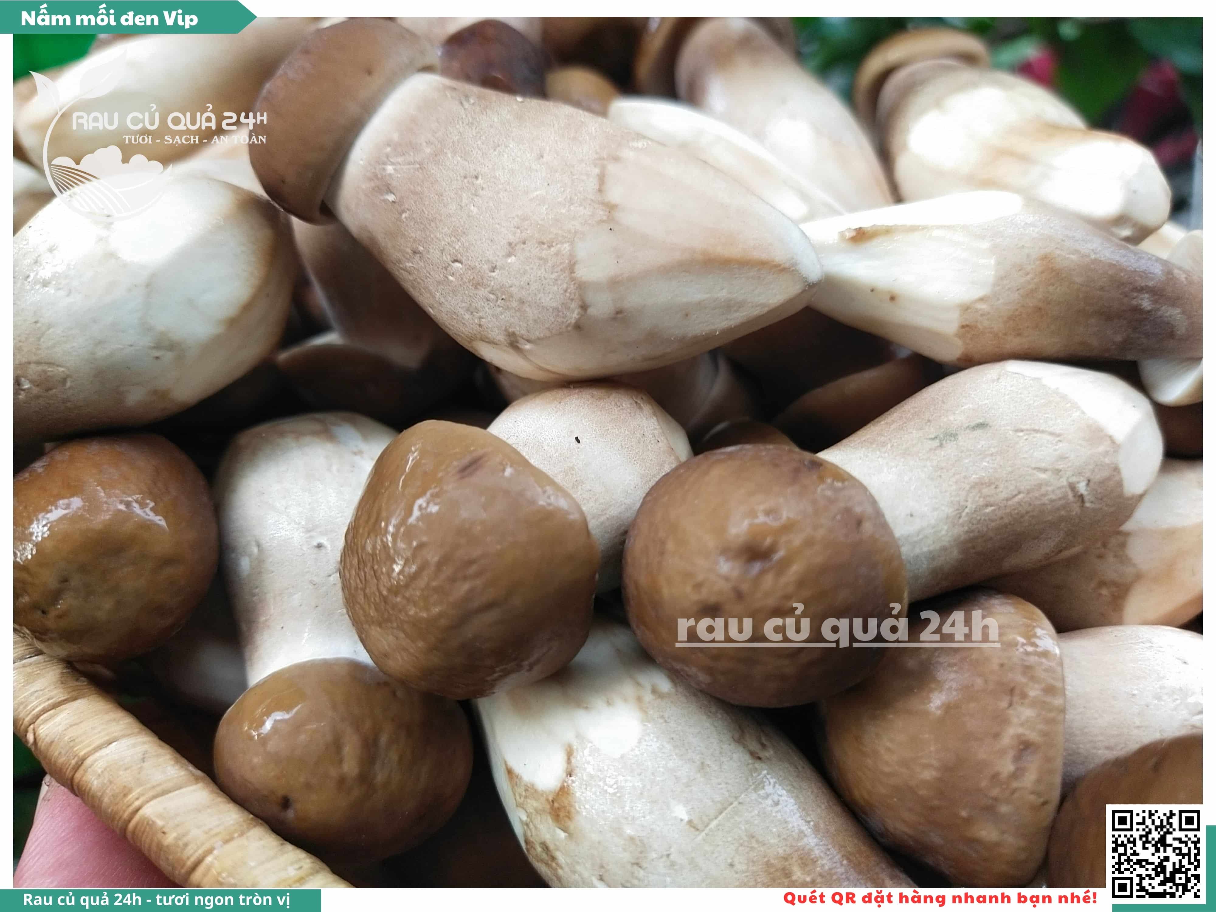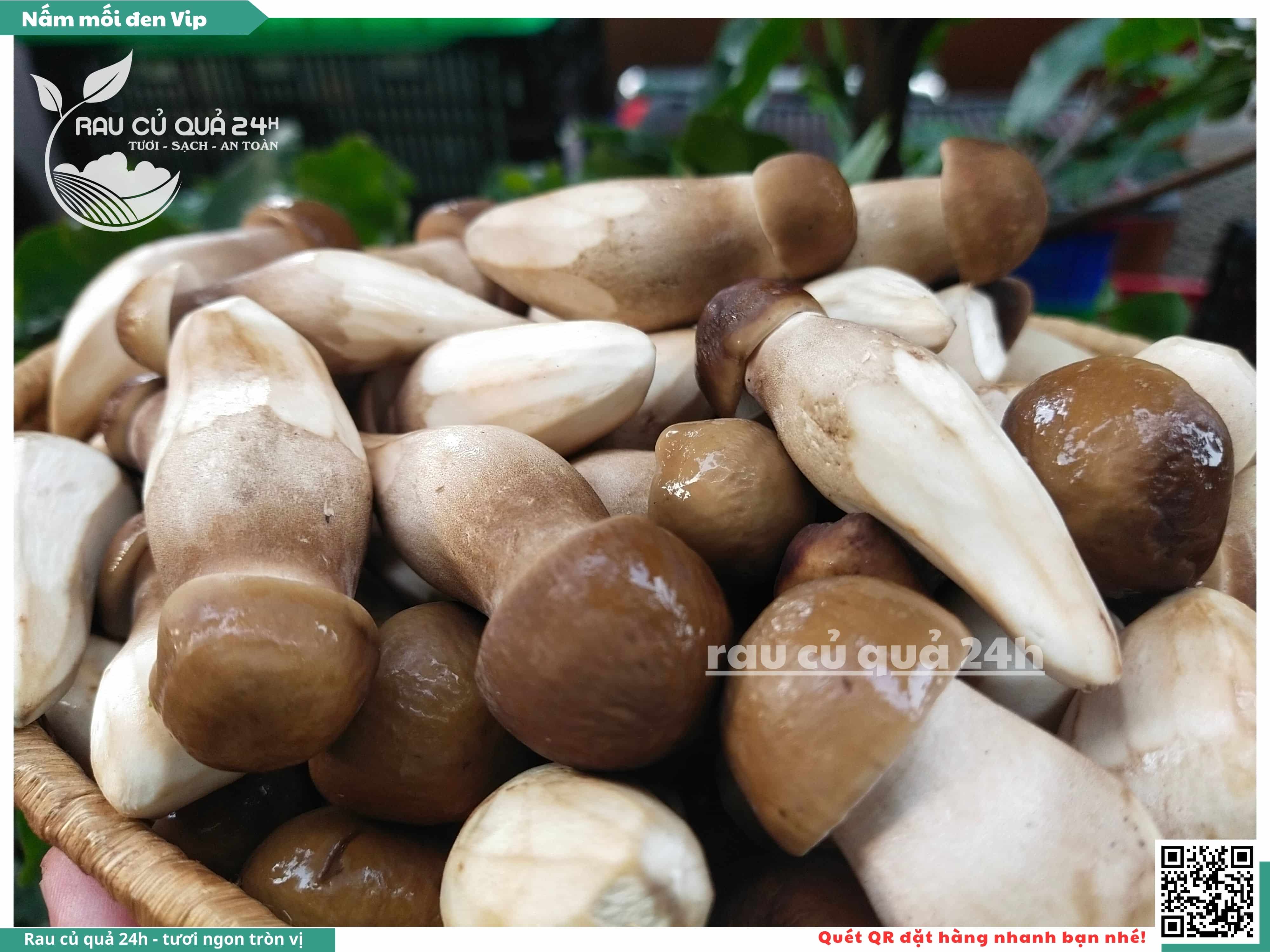 Nấm mối đen có hình dạng giống như những chiếc ô, với phần mũ nấm màu đen và phần thân nấm màu trắng. Nấm này có vị ngọt, thơm, và có hương vị đặc trưng. Nấm mối đen thường được sử dụng trong các món xào, súp, và salad.