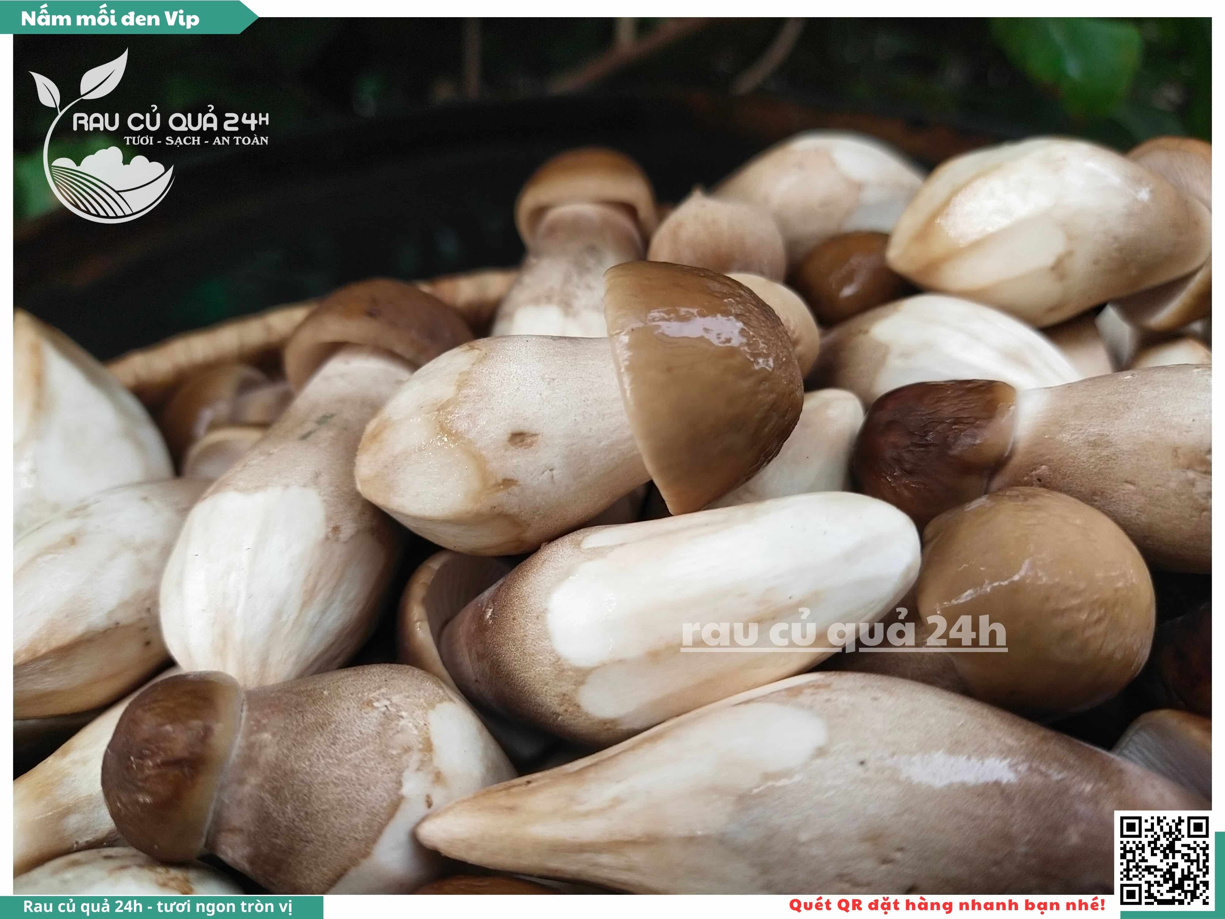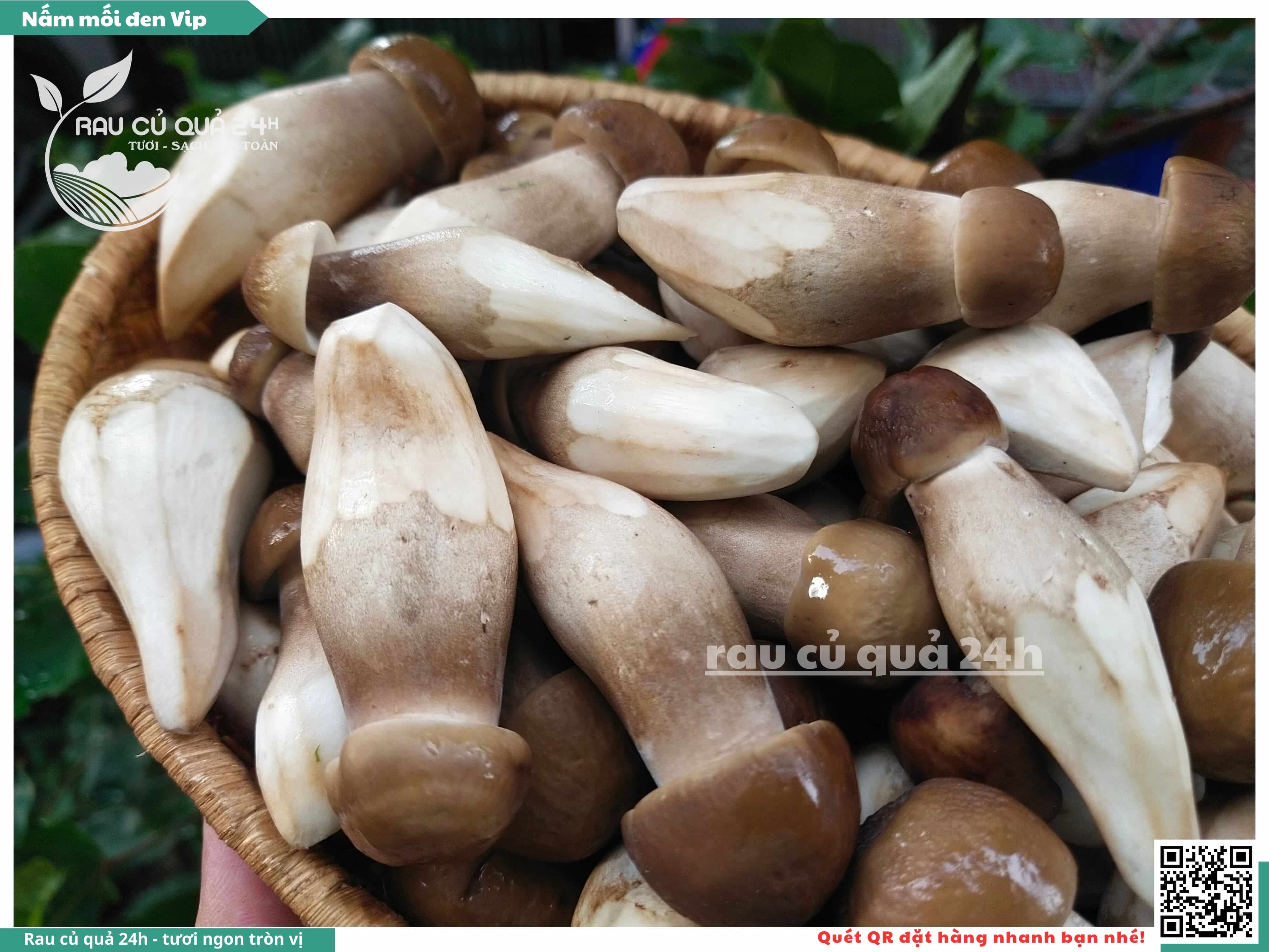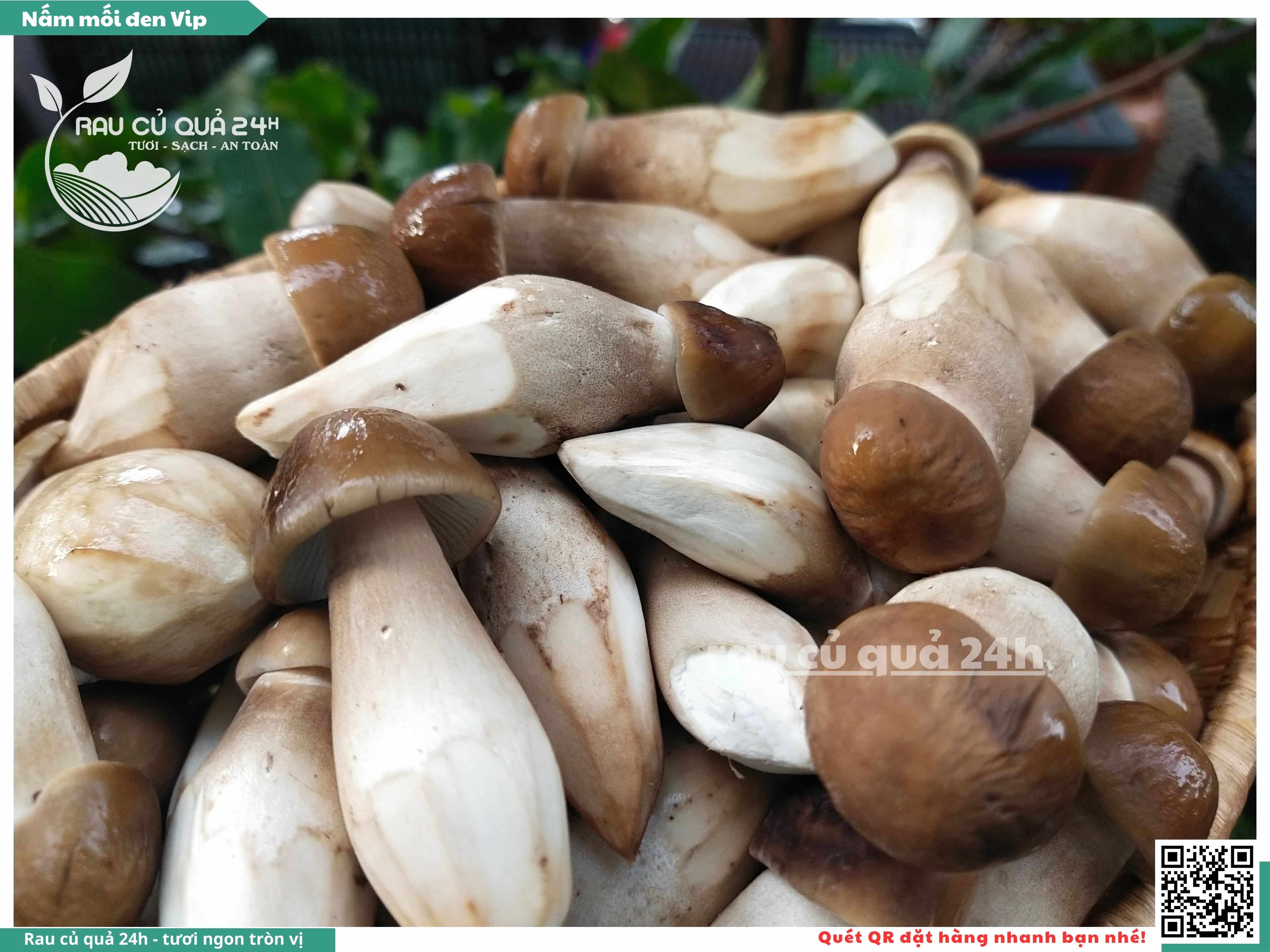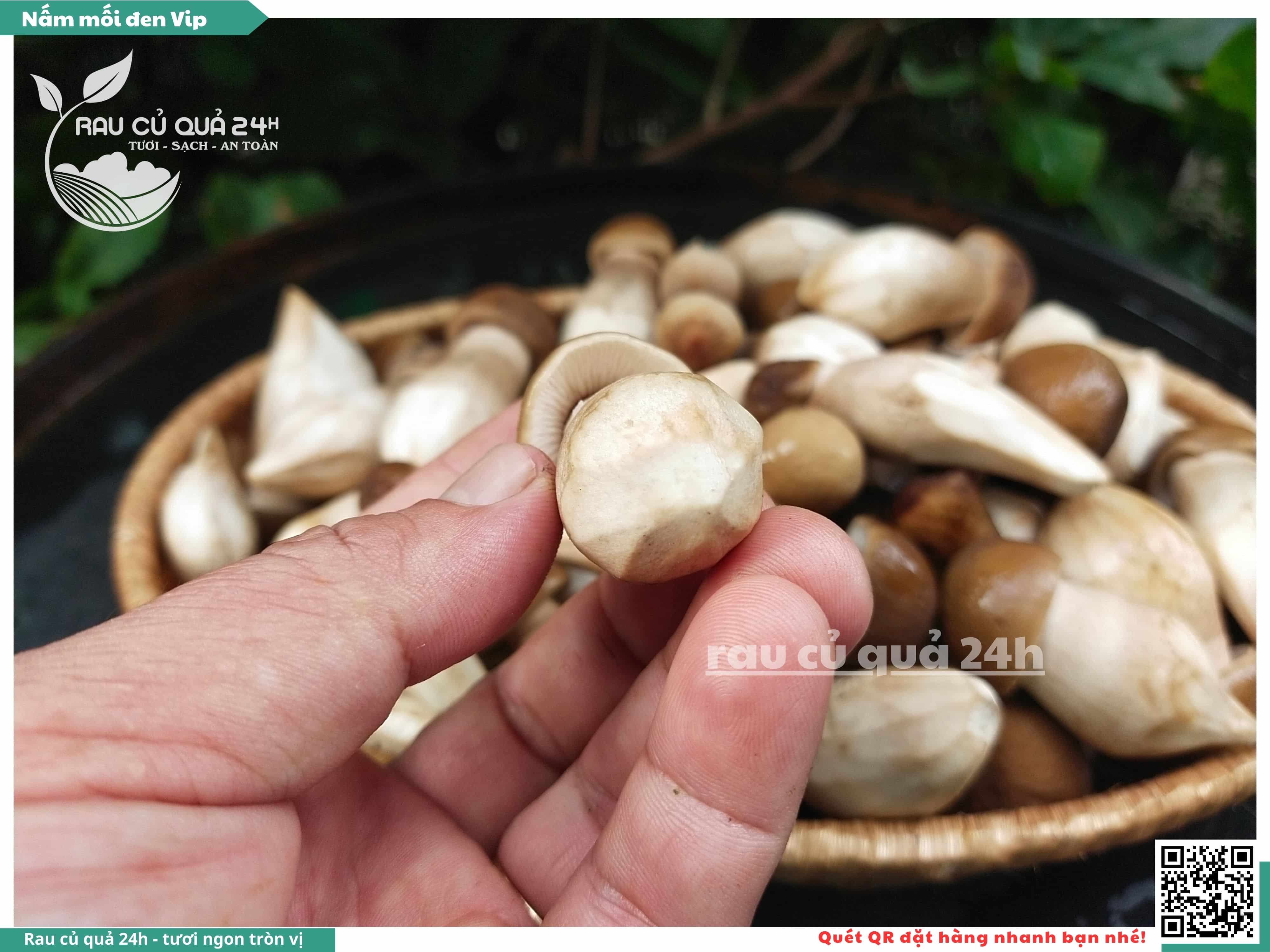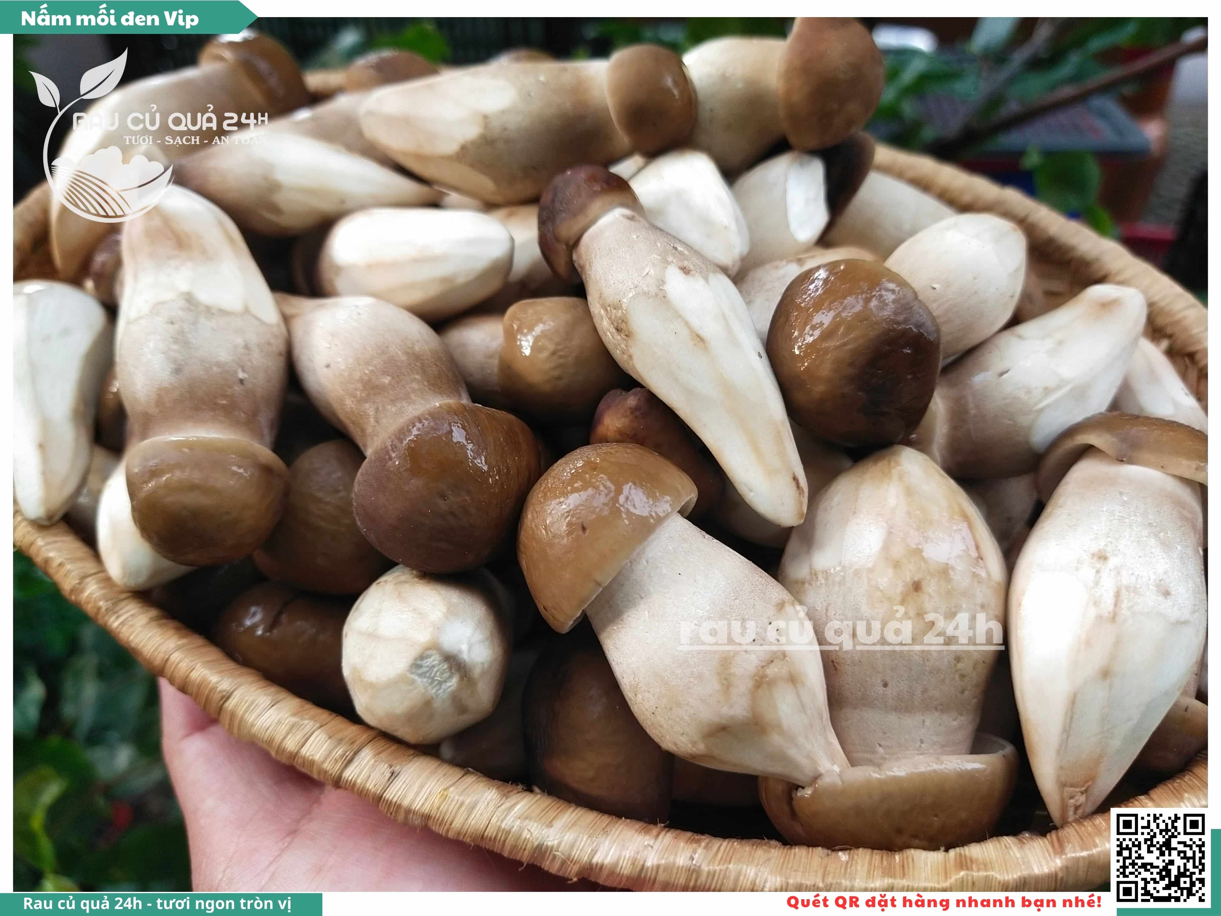 Nấm mối đen có hình dạng giống như những chiếc ô, với phần mũ nấm màu đen và phần thân nấm màu trắng. Nấm này có vị ngọt, thơm, và có hương vị đặc trưng. Nấm mối đen thường được sử dụng trong các món xào, súp, và salad.