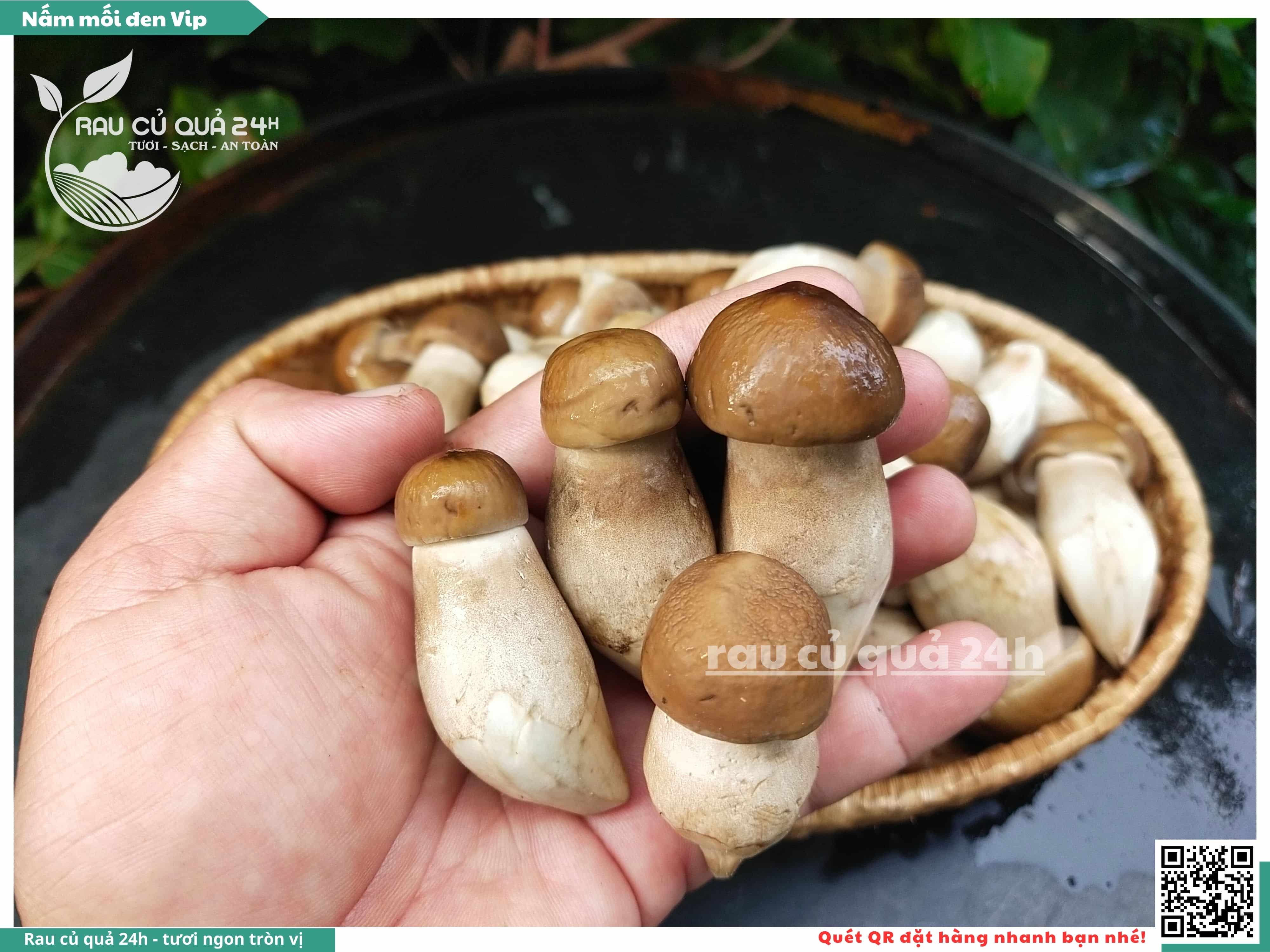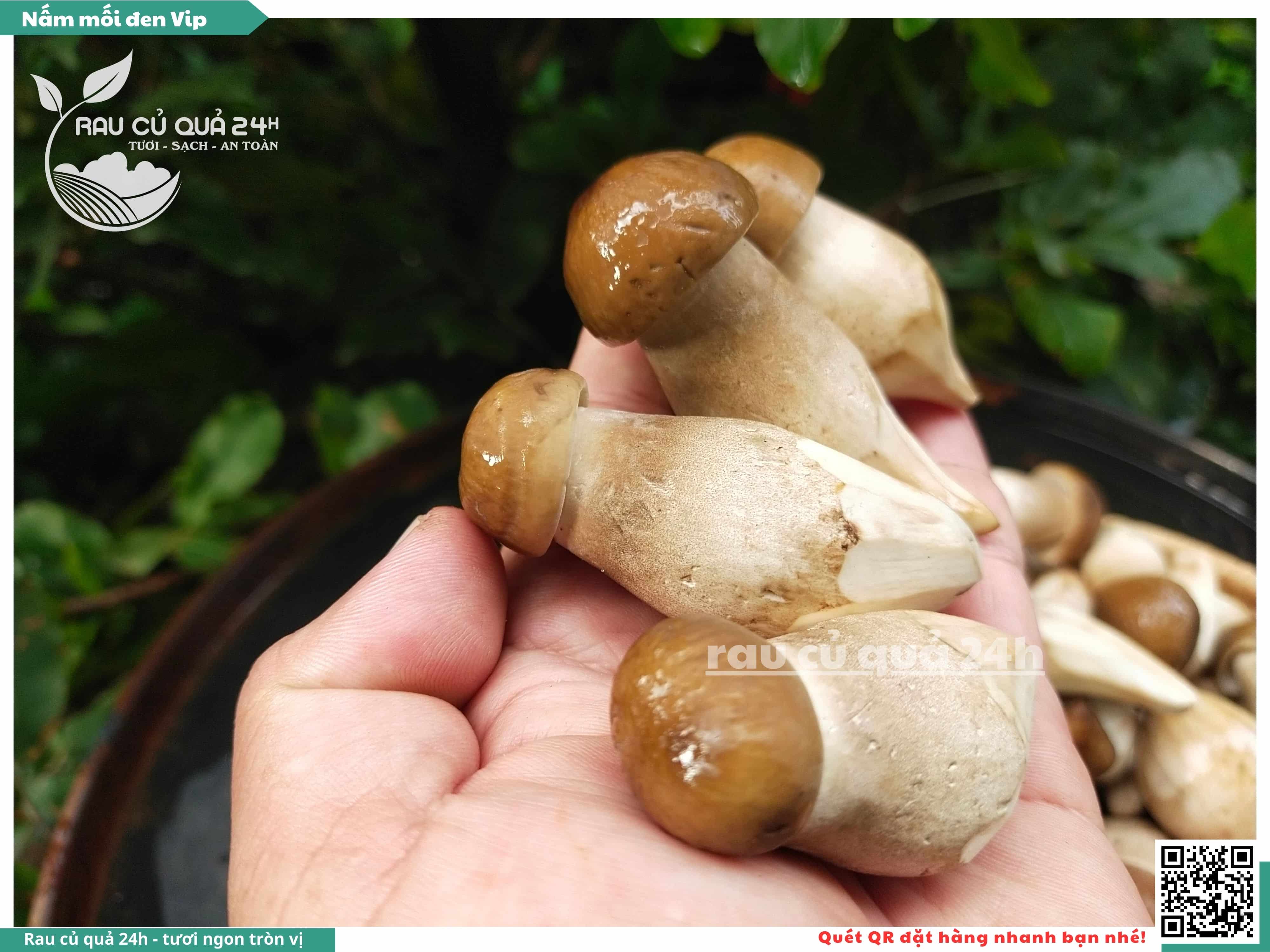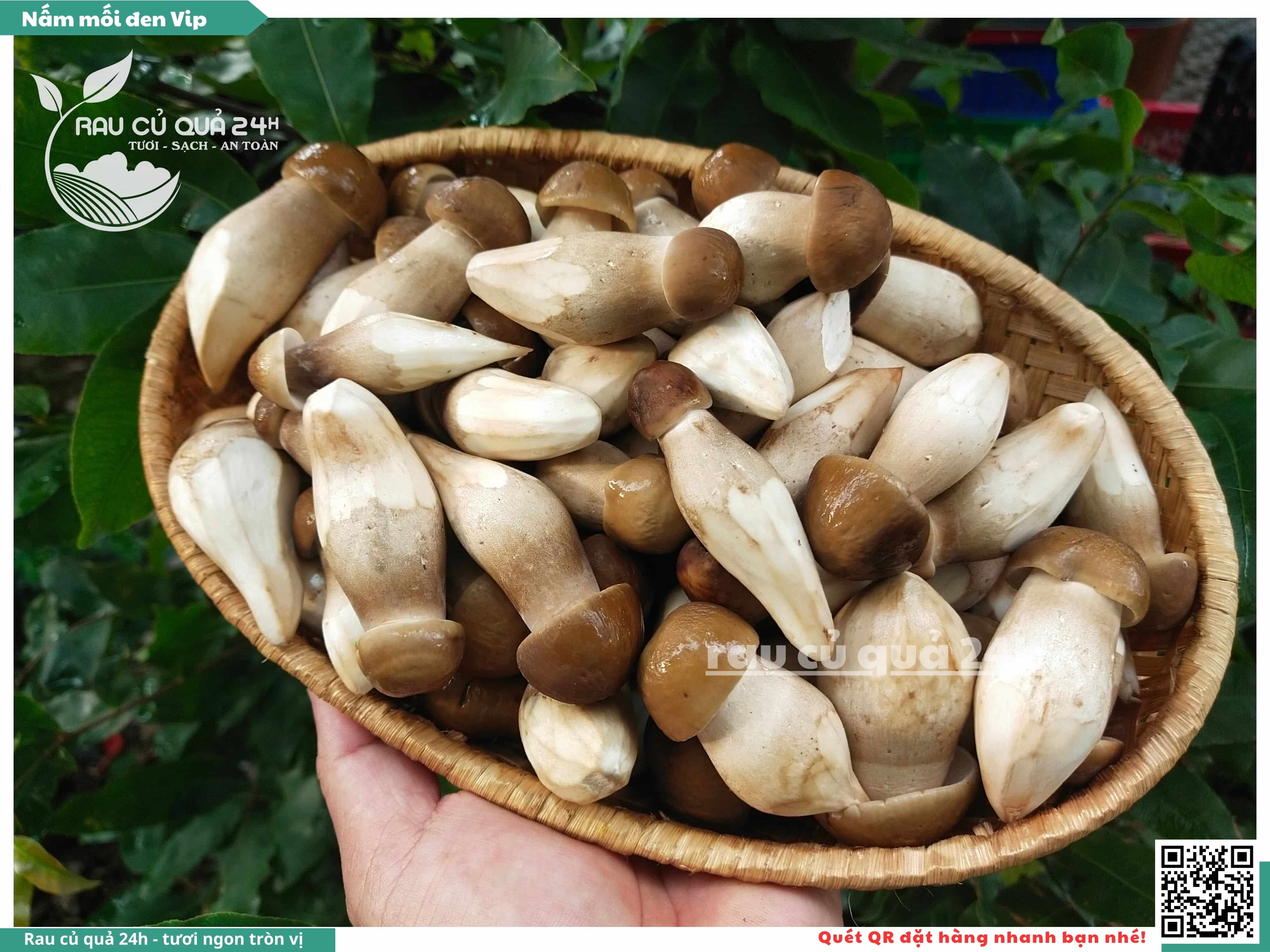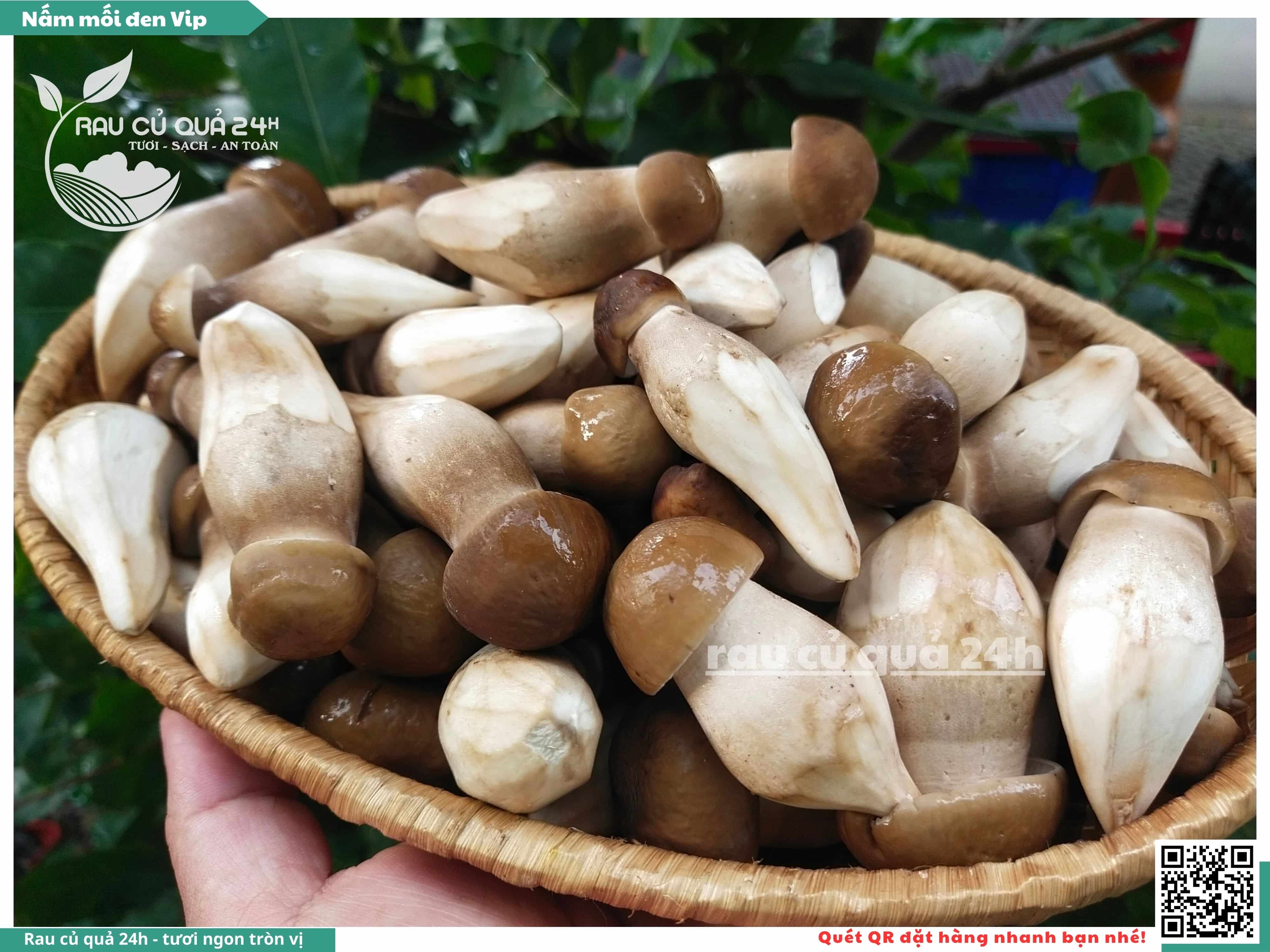Nấm mối đen có hình dạng giống như những chiếc ô, với phần mũ nấm màu đen và phần thân nấm màu trắng. Nấm này có vị ngọt, thơm, và có hương vị đặc trưng. Nấm mối đen thường được sử dụng trong các món xào, súp, và salad.