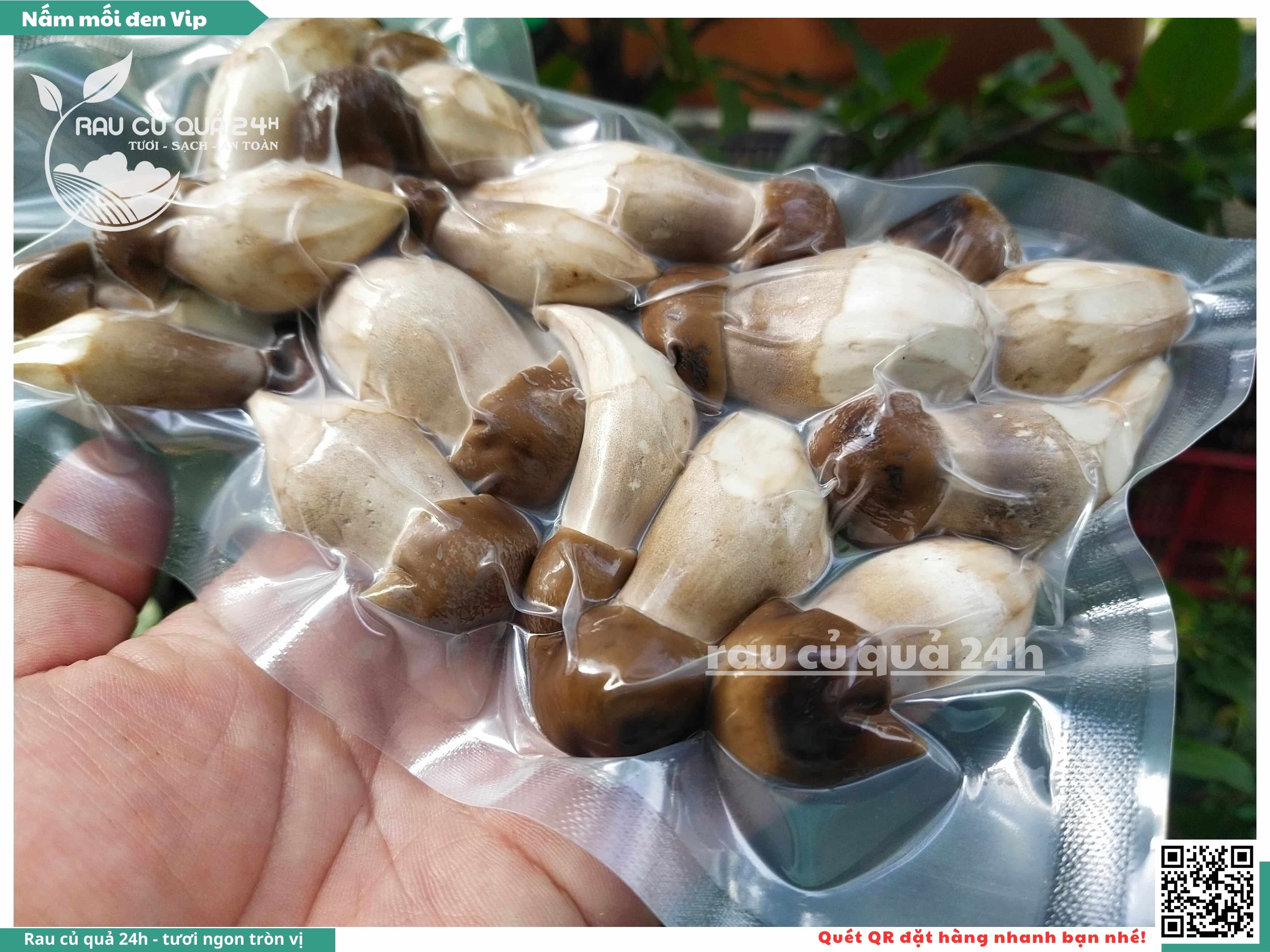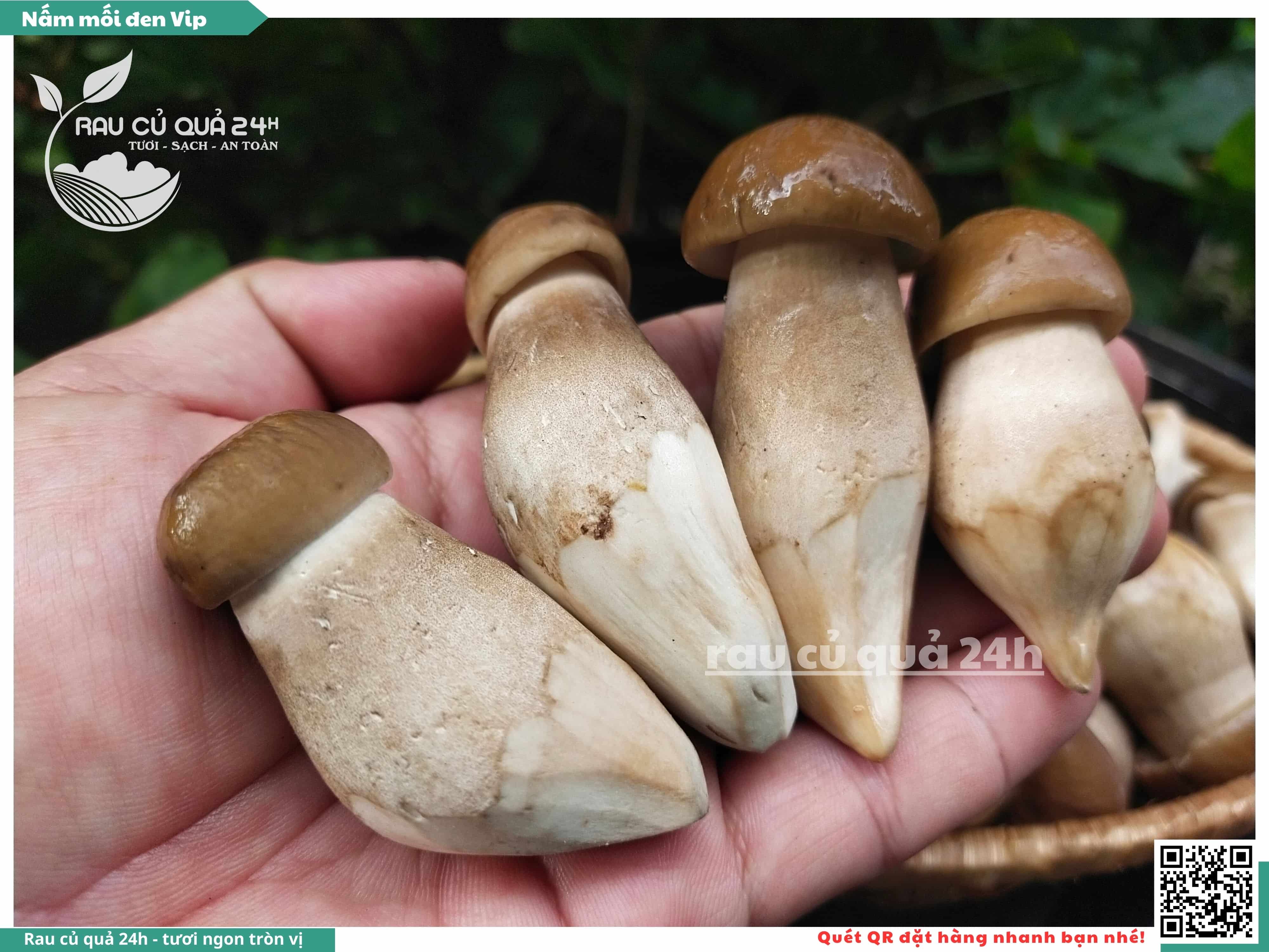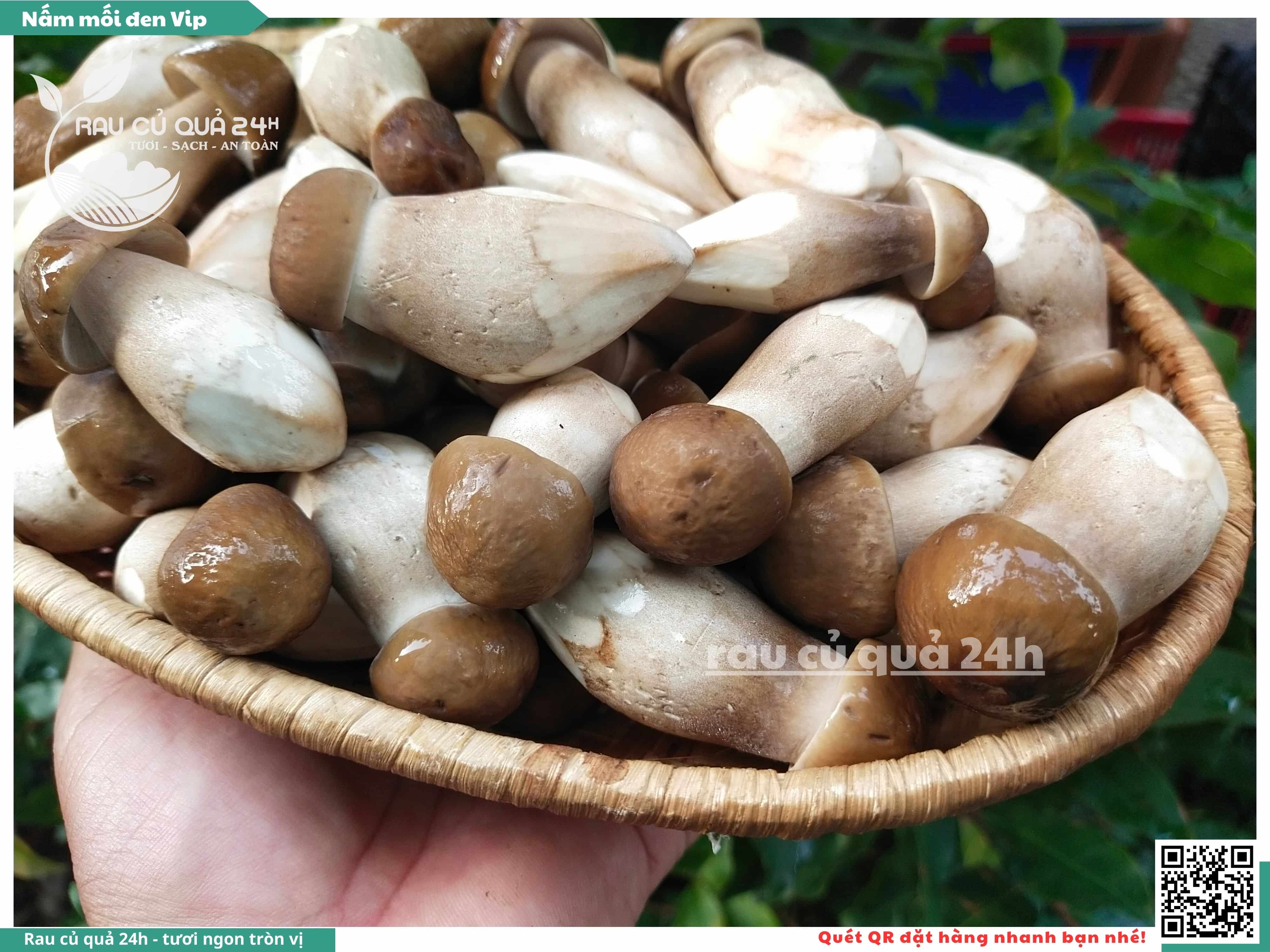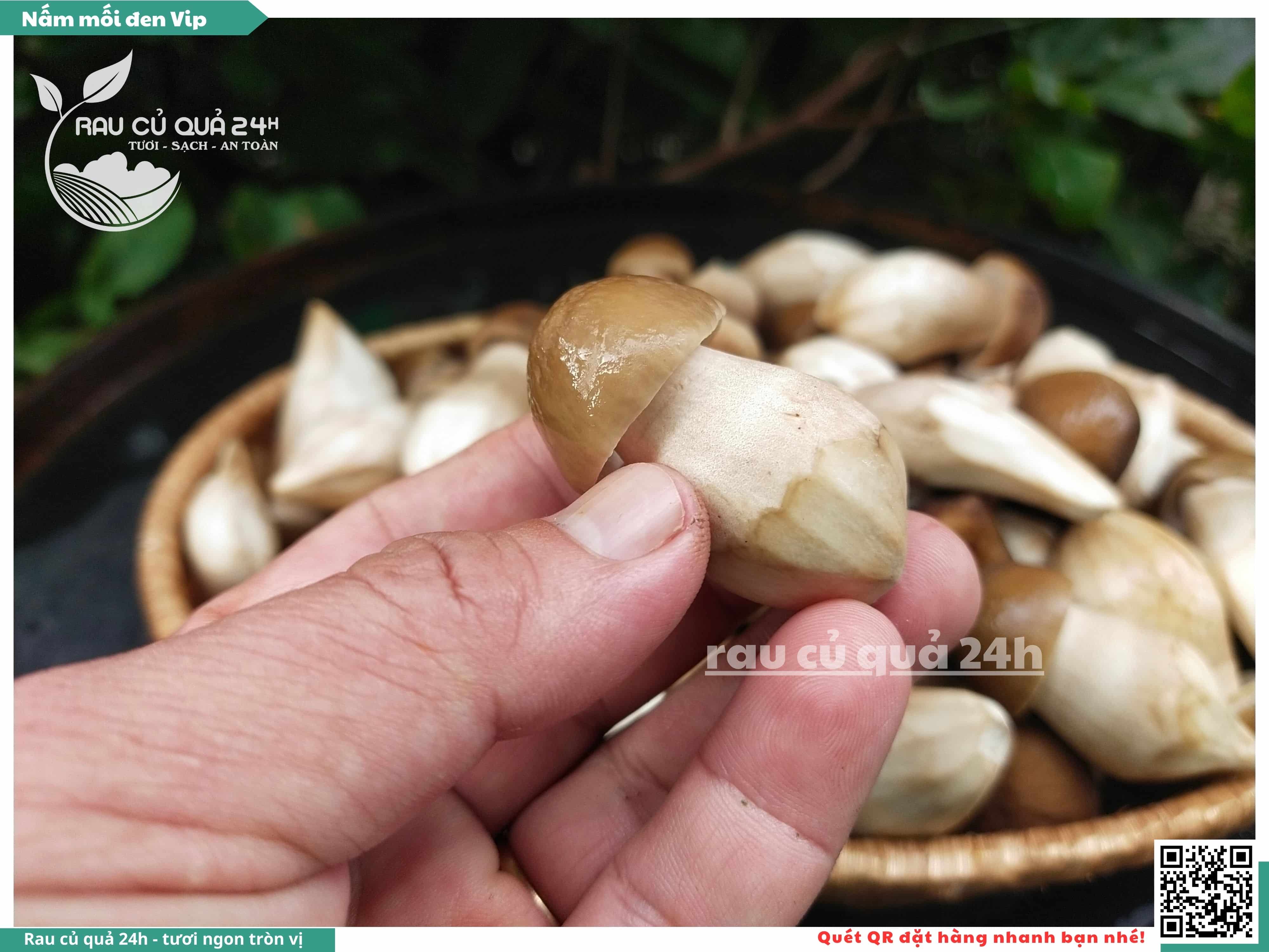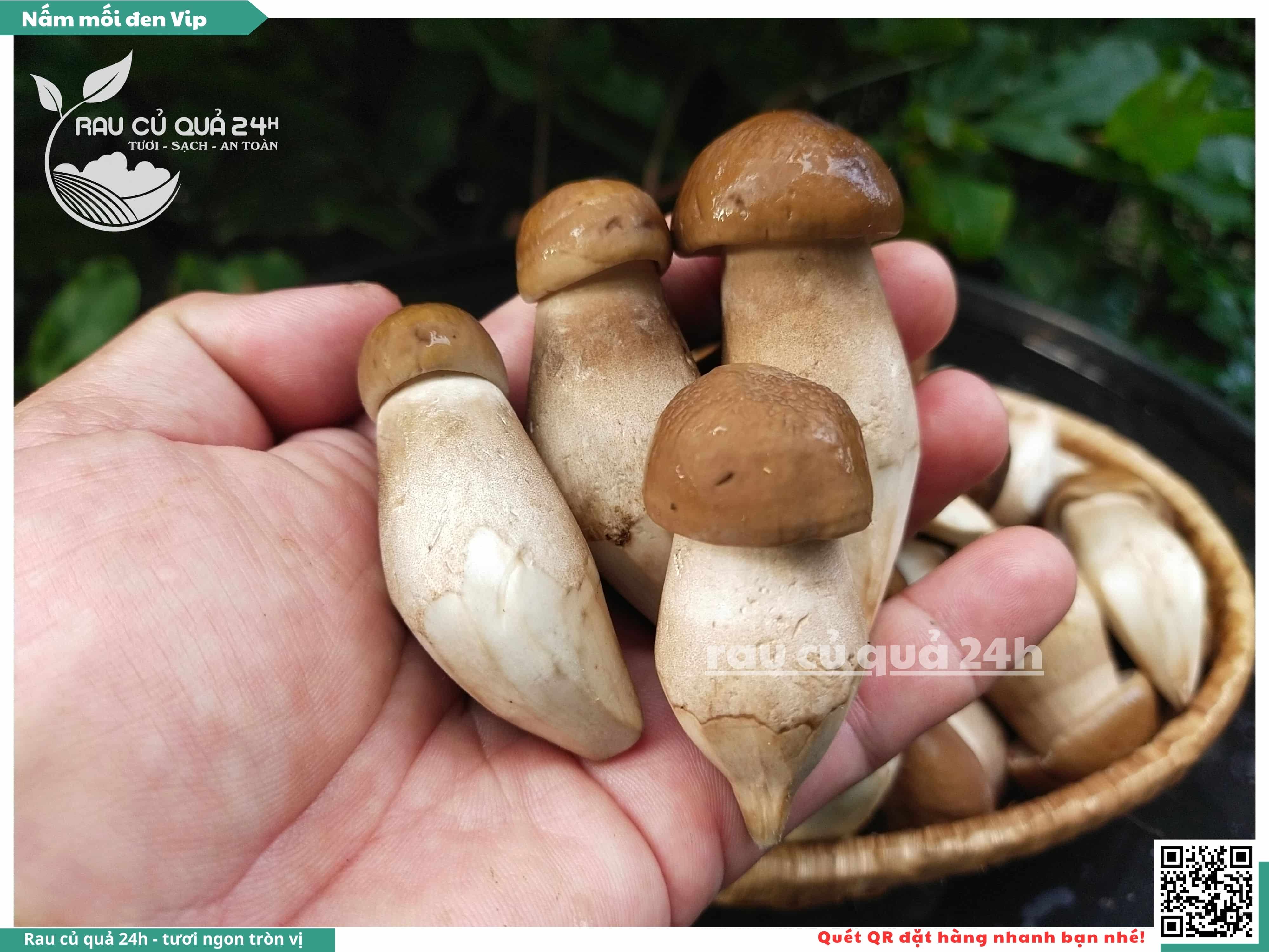 Nấm mối đen có hình dạng giống như những chiếc ô, với phần mũ nấm màu đen và phần thân nấm màu trắng. Nấm này có vị ngọt, thơm, và có hương vị đặc trưng. Nấm mối đen thường được sử dụng trong các món xào, súp, và salad.