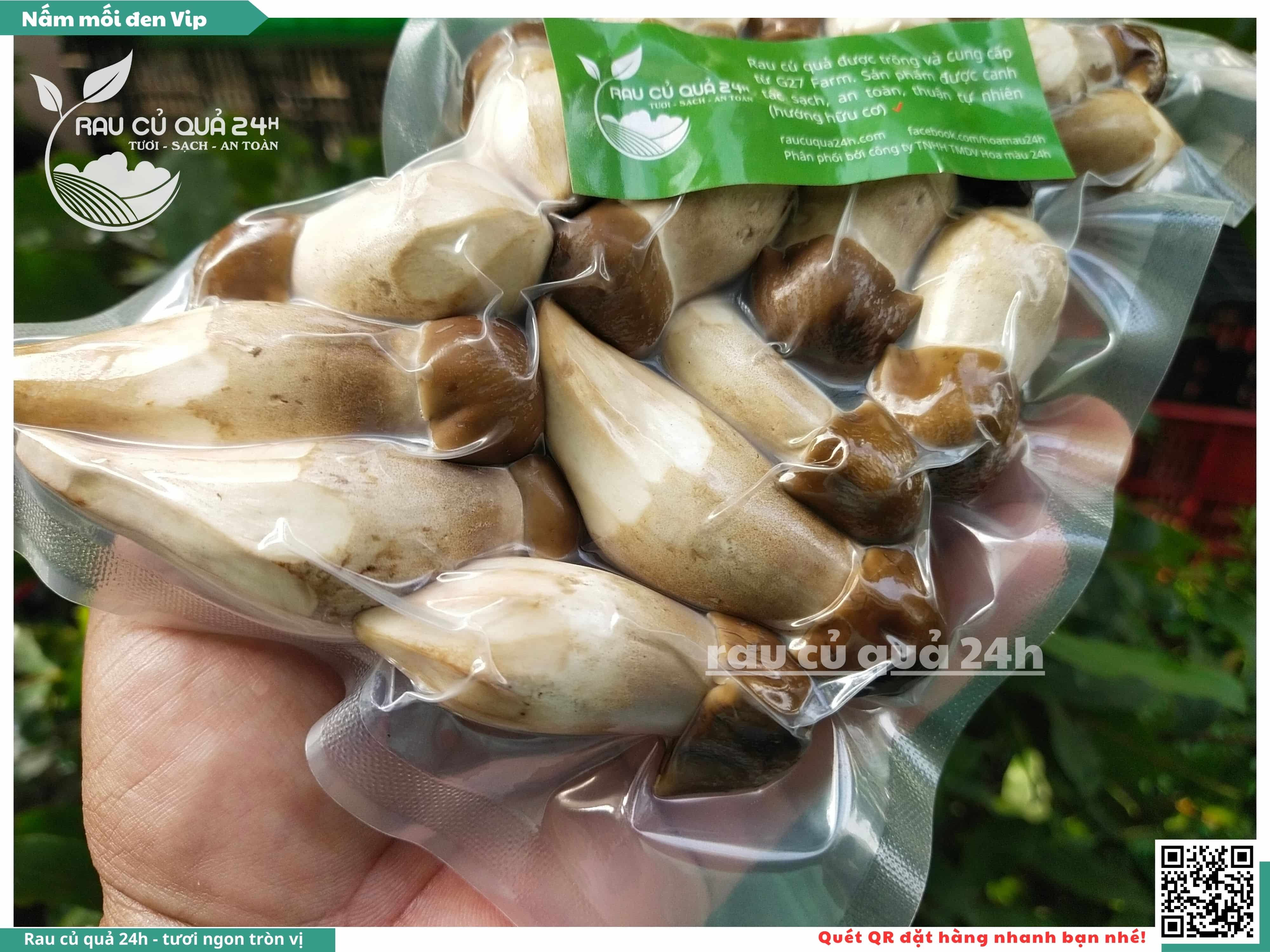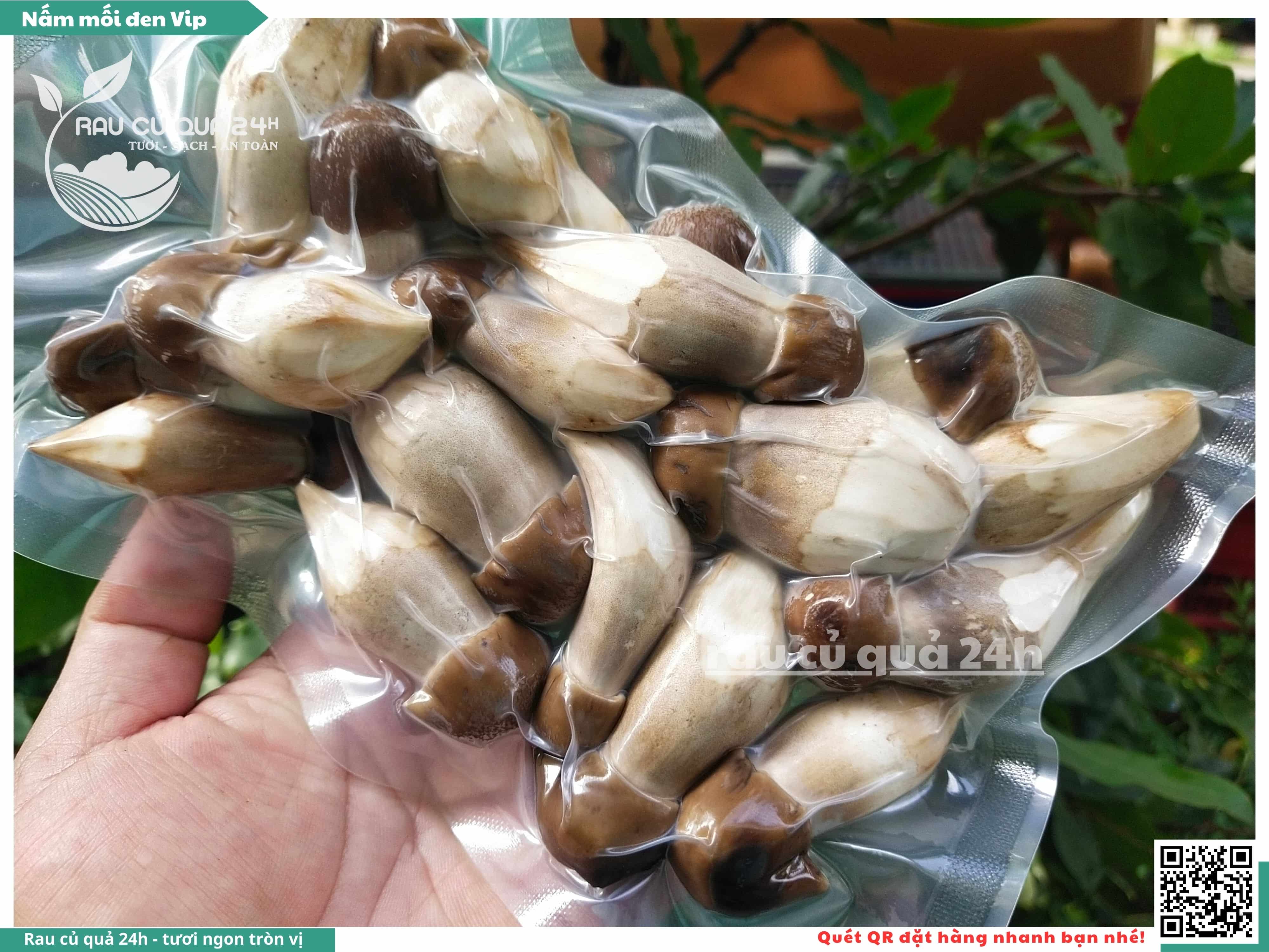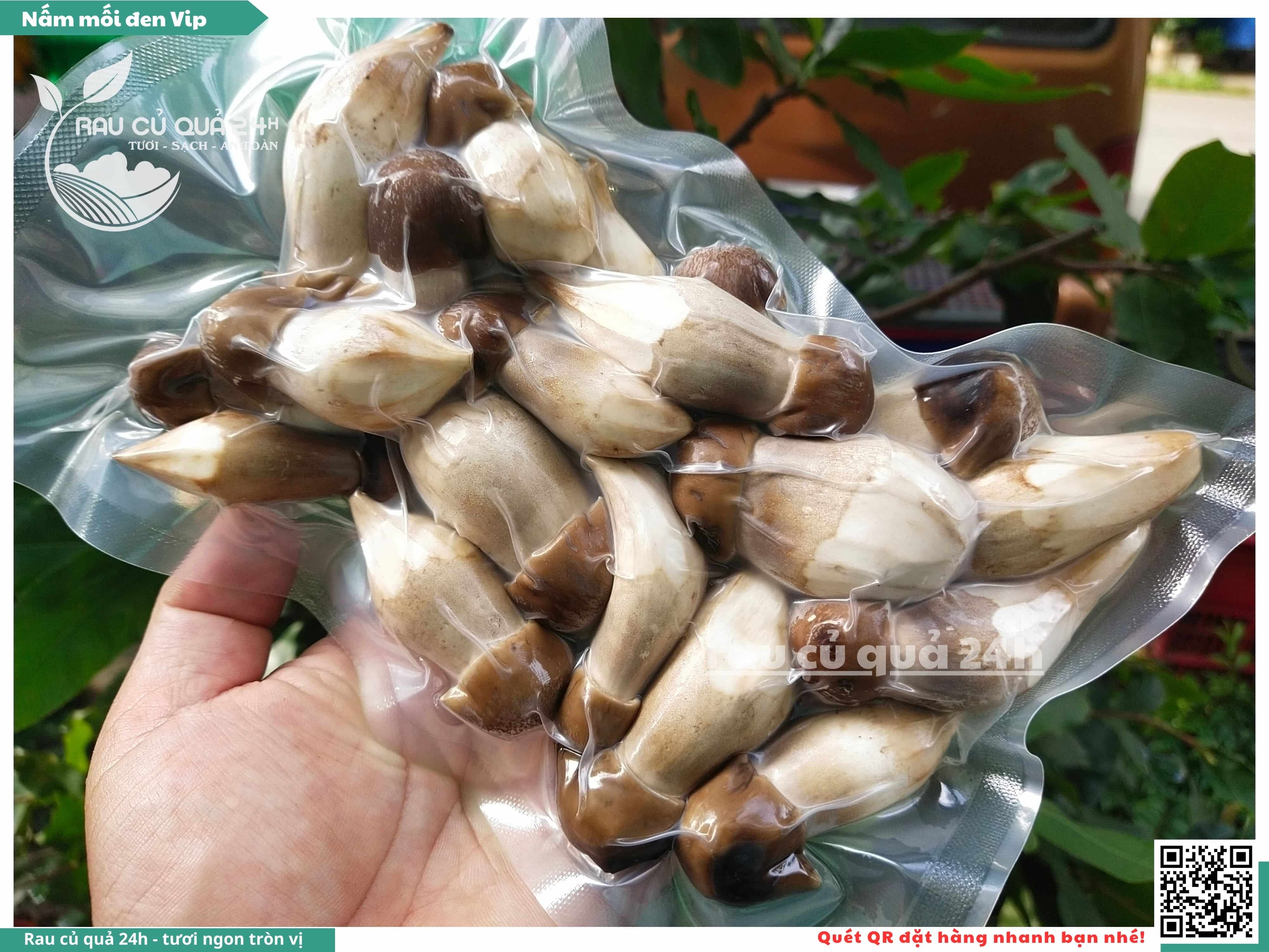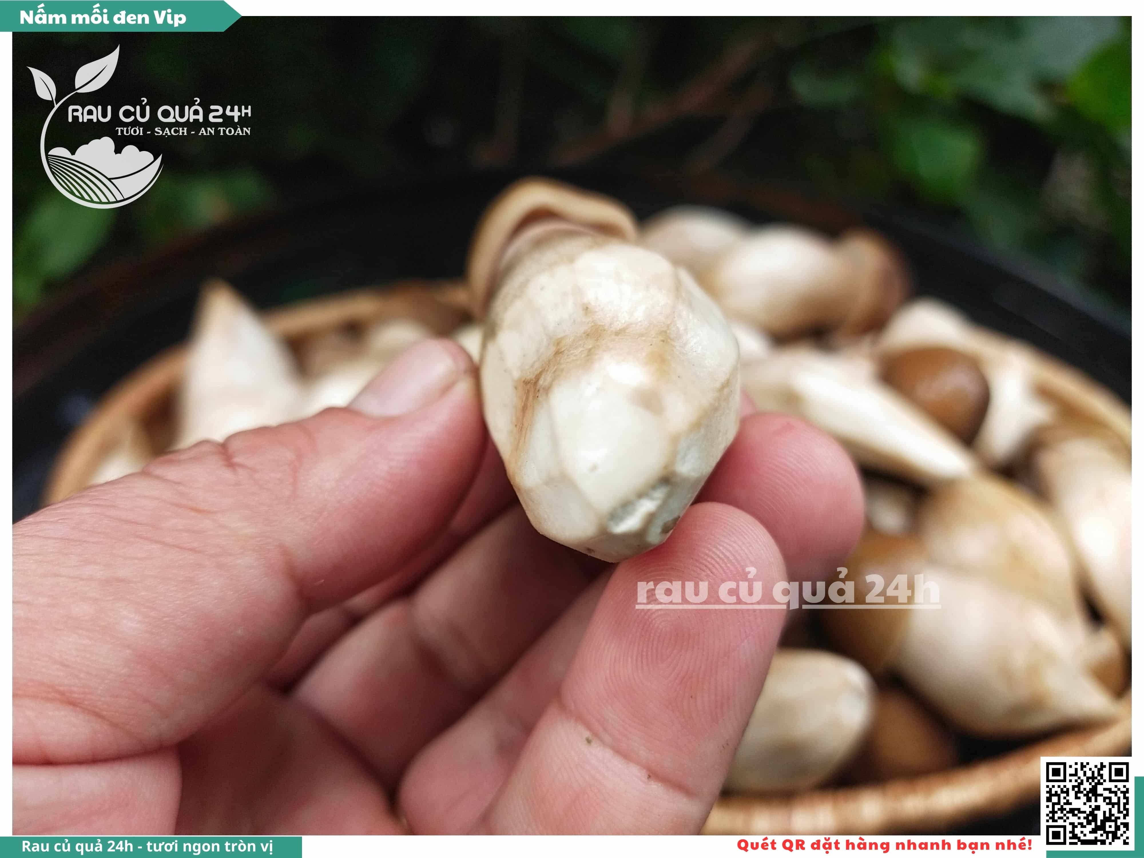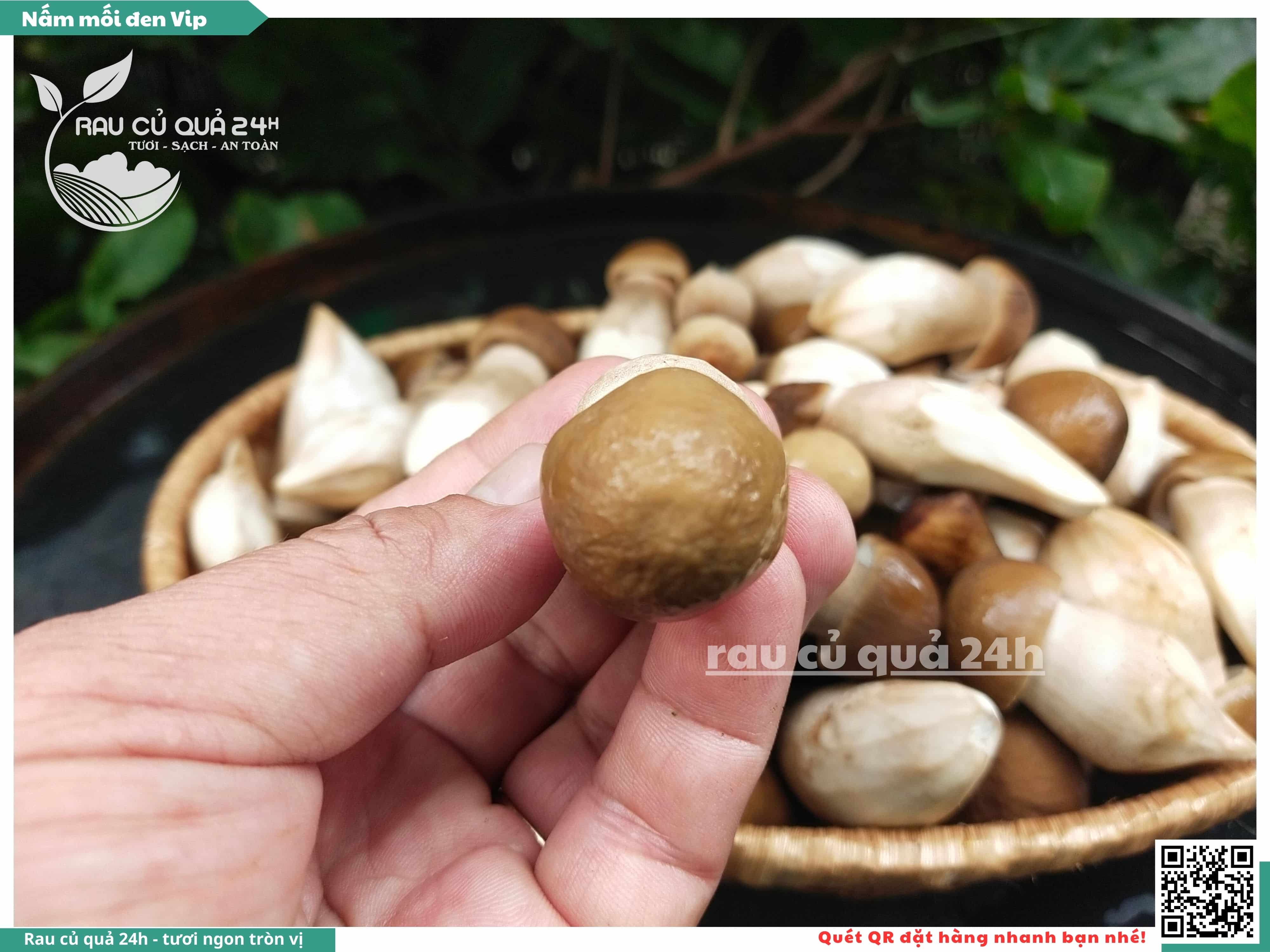 Nấm mối đen có hình dạng giống như những chiếc ô, với phần mũ nấm màu đen và phần thân nấm màu trắng. Nấm này có vị ngọt, thơm, và có hương vị đặc trưng. Nấm mối đen thường được sử dụng trong các món xào, súp, và salad.